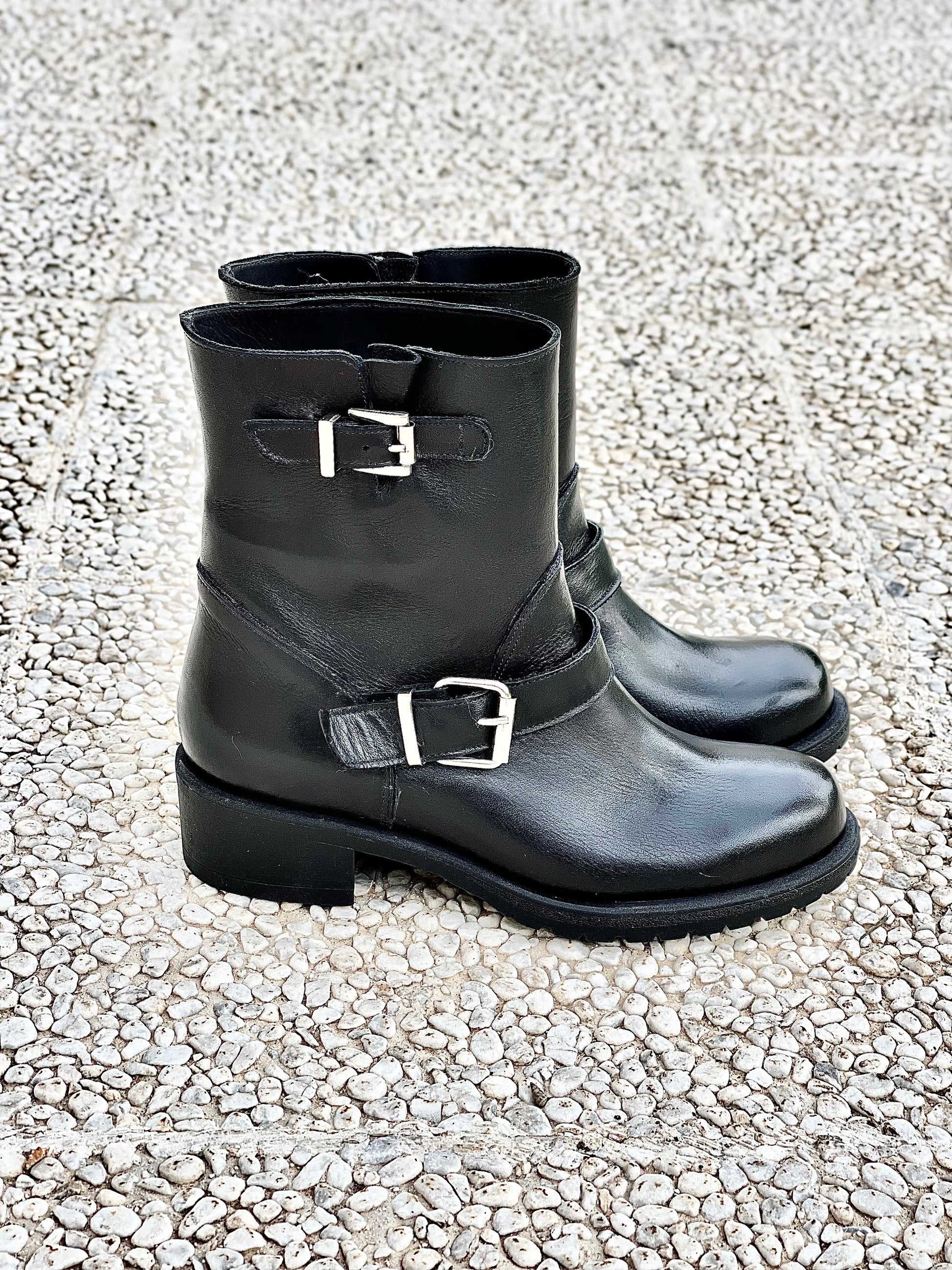 Biker-Stiefel aus Leder mit 3 cm hohem Absatz.