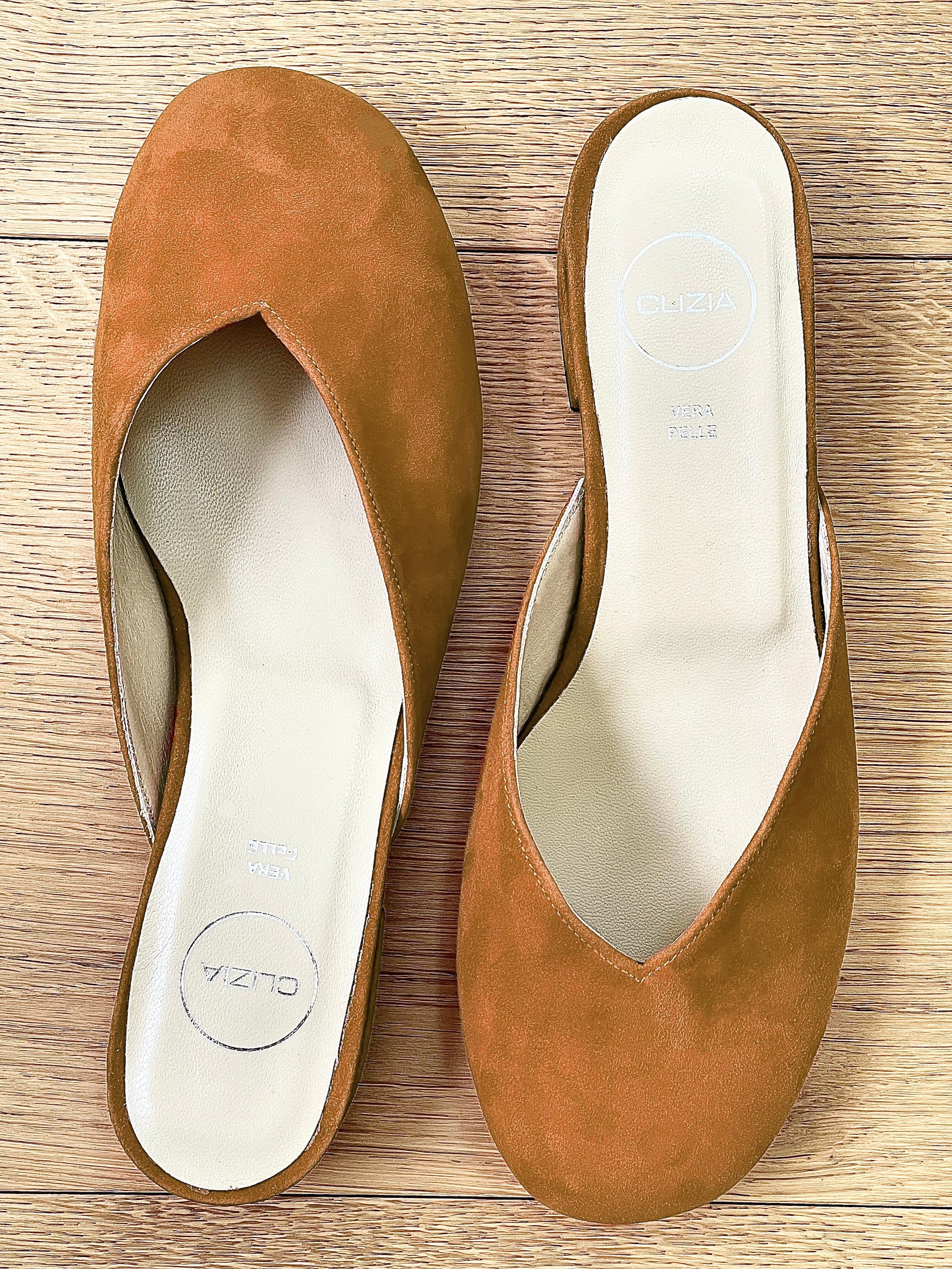 Niedrige Sandalen mit V-Ausschnitt und runder Zehe.