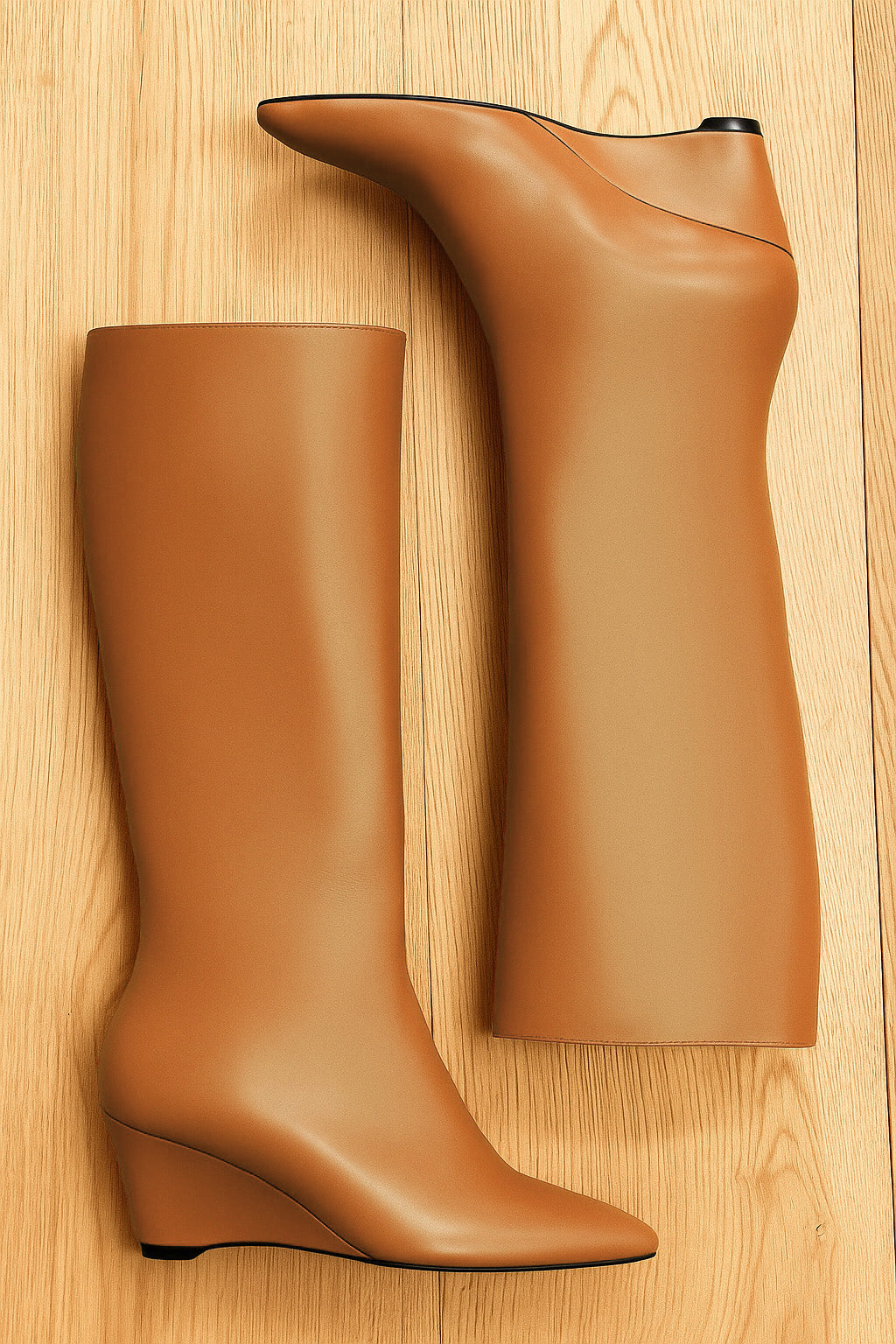 Schlauchförmige Lederstiefel mit Keil hinten 6cm.