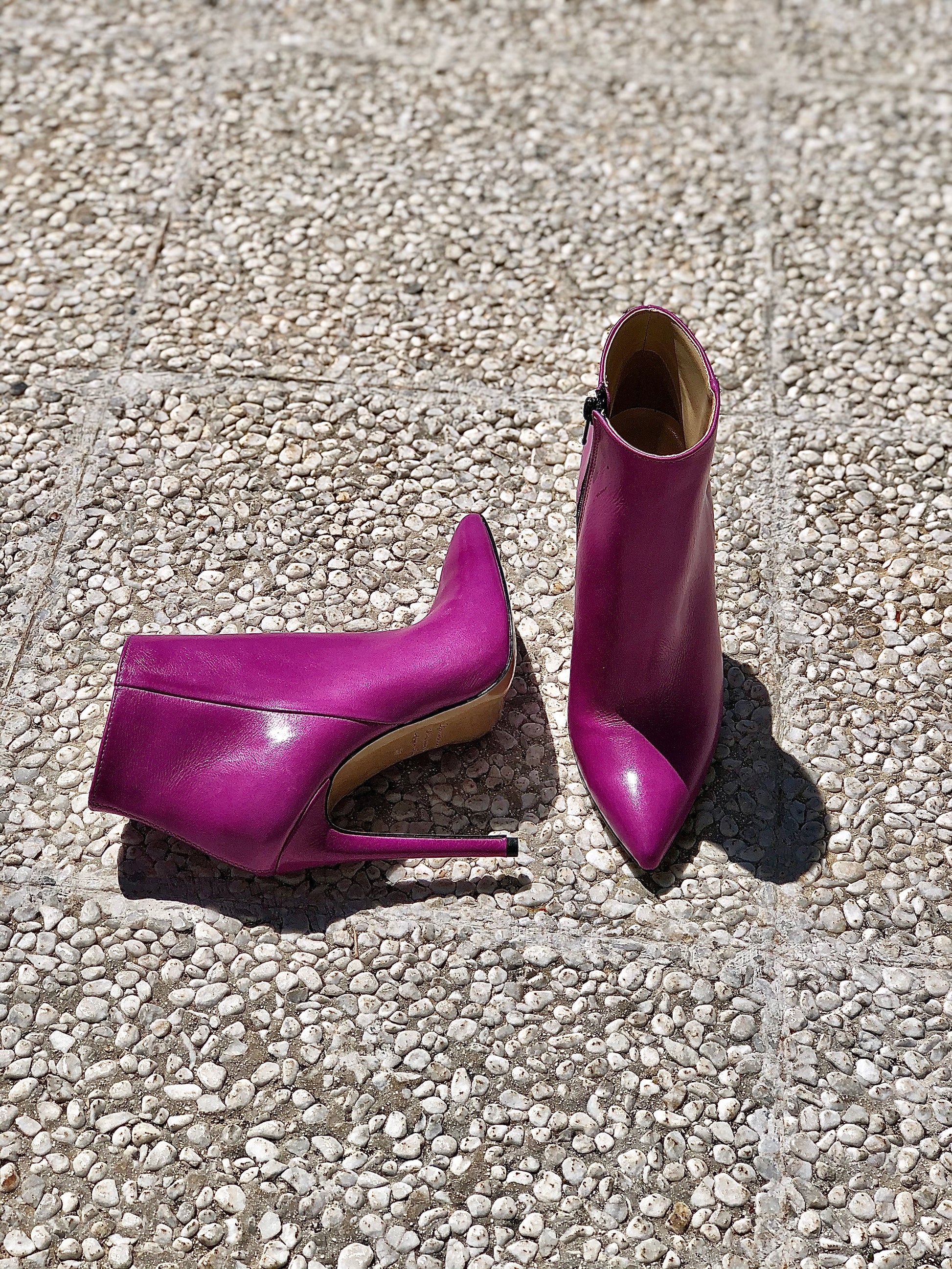 Spitz zulaufende Lederstiefelette mit 10 cm Absatz.