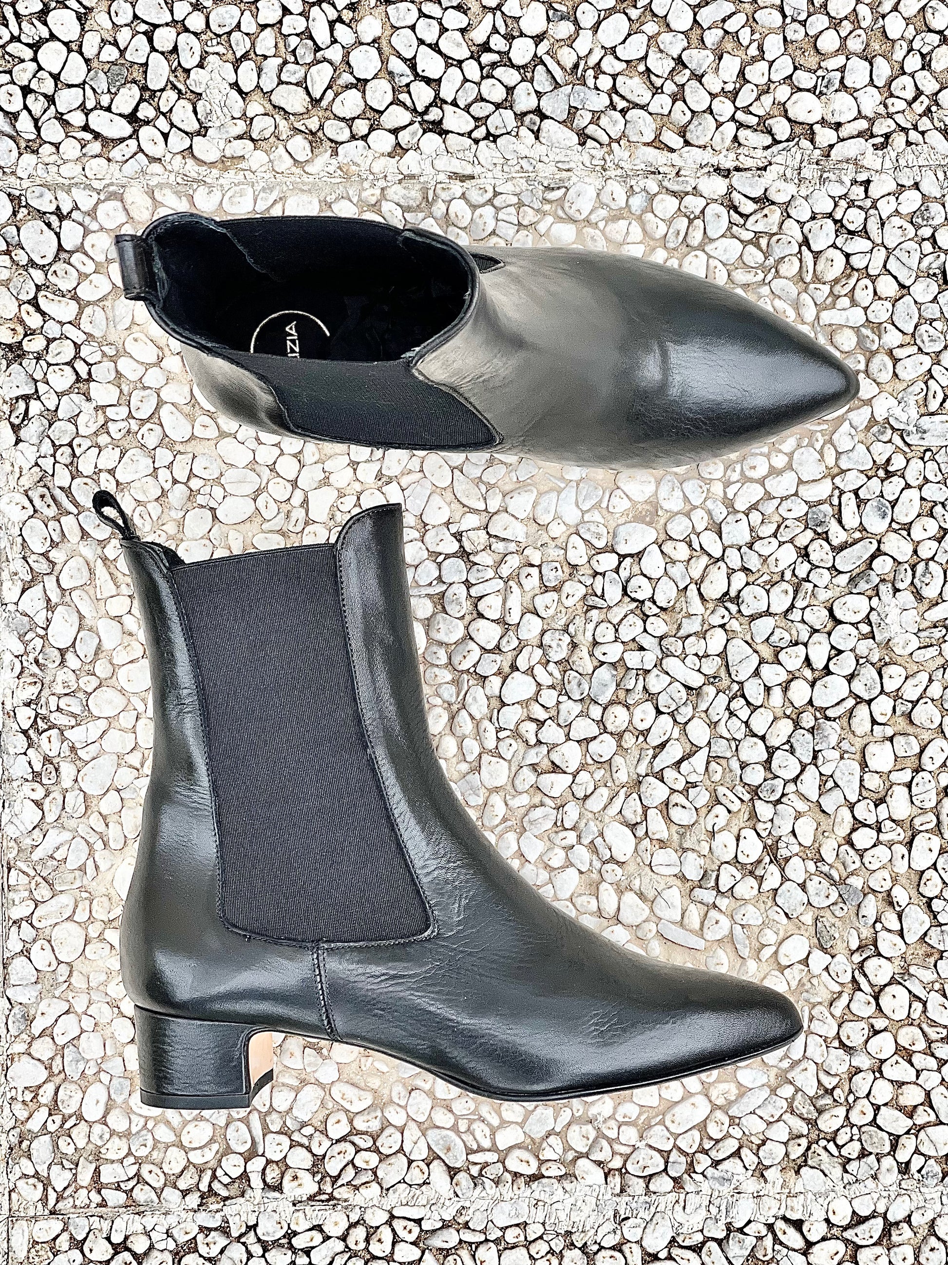 Flacher Chelsea-Stiefel aus Leder mit 35 mm breitem Absatz.