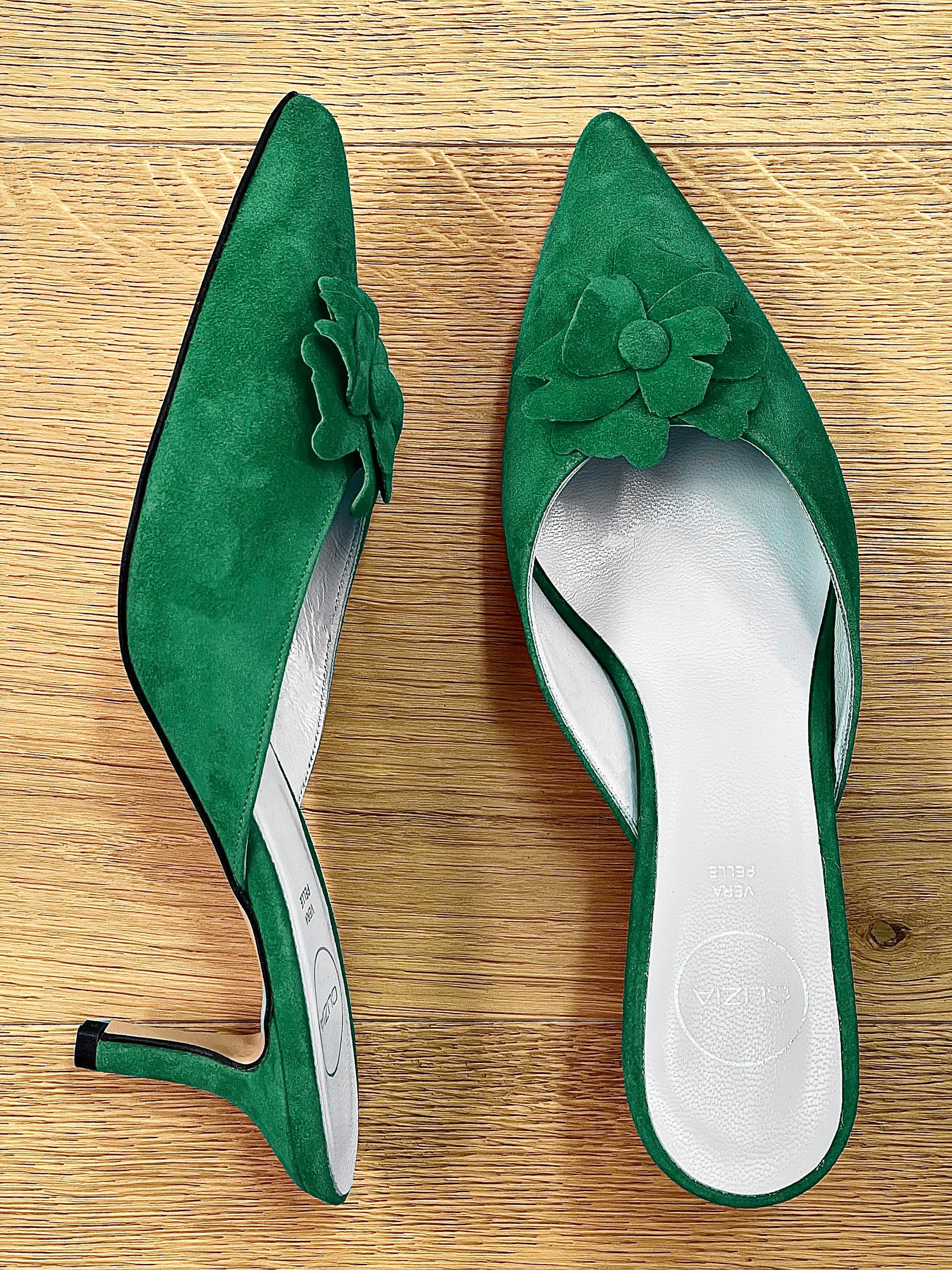 Sabot spitz zulaufend mit Blumenausschnitt.