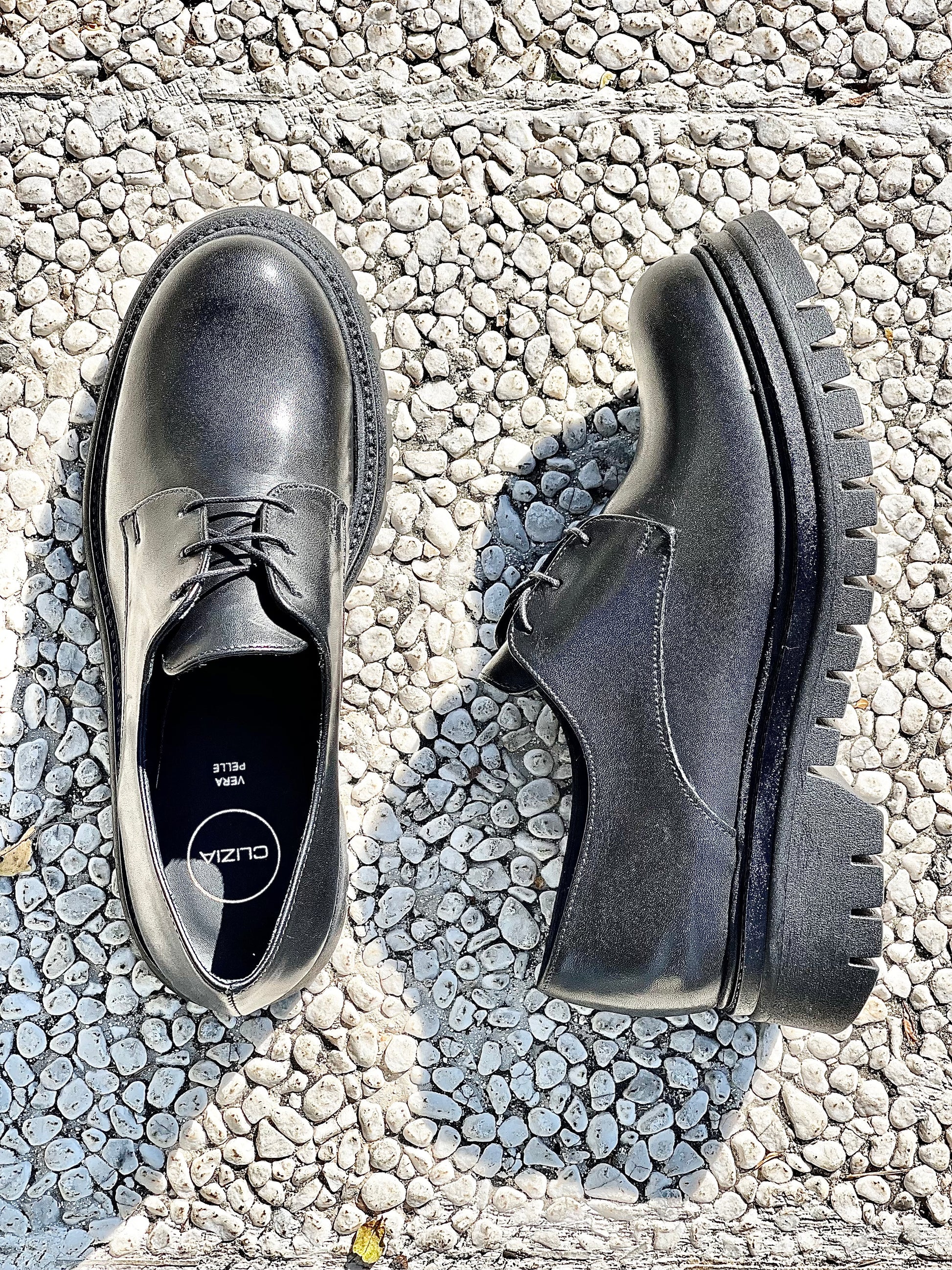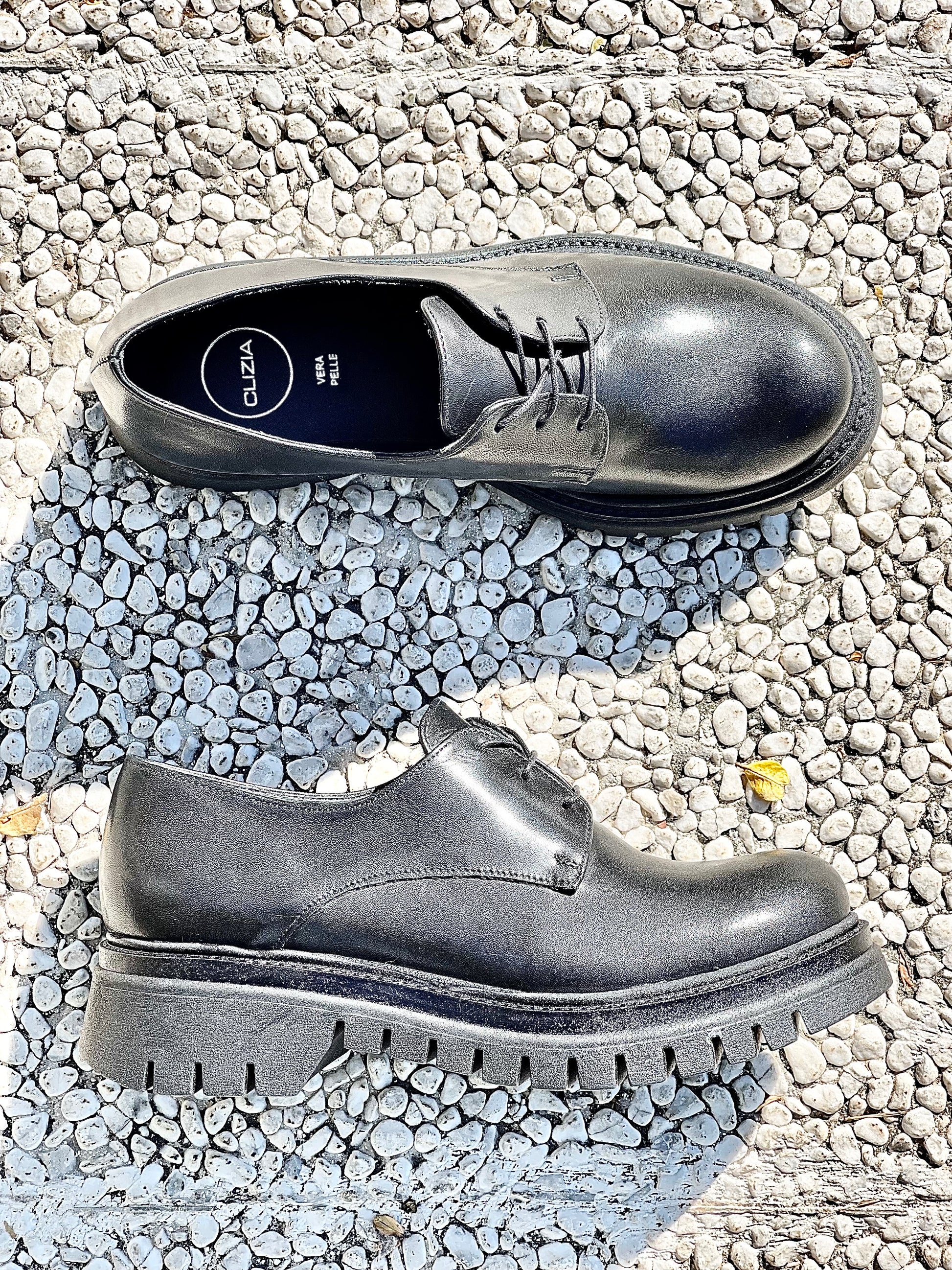 Damenschnürschuh aus Leder mit 3 cm Absatz.