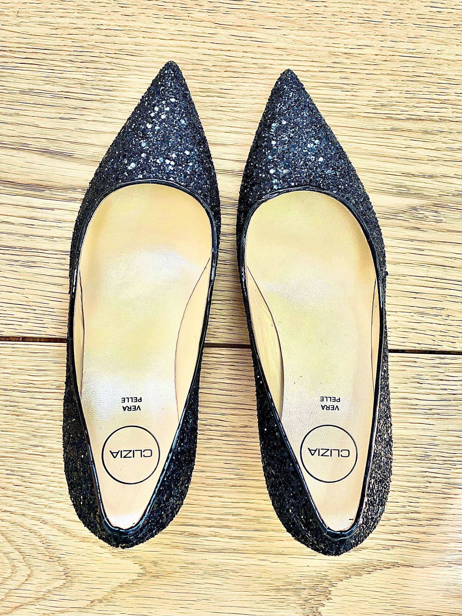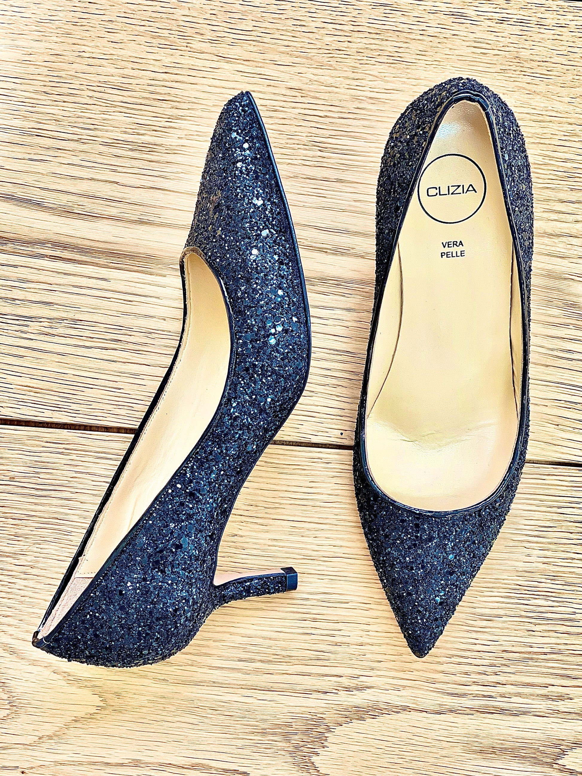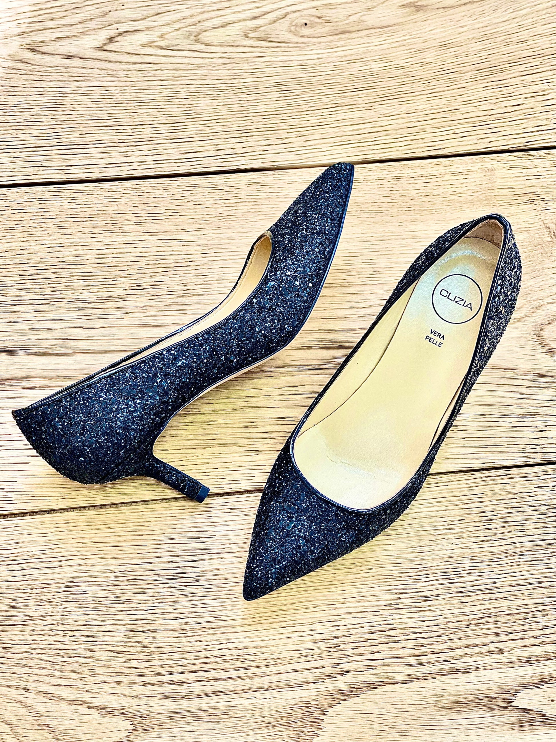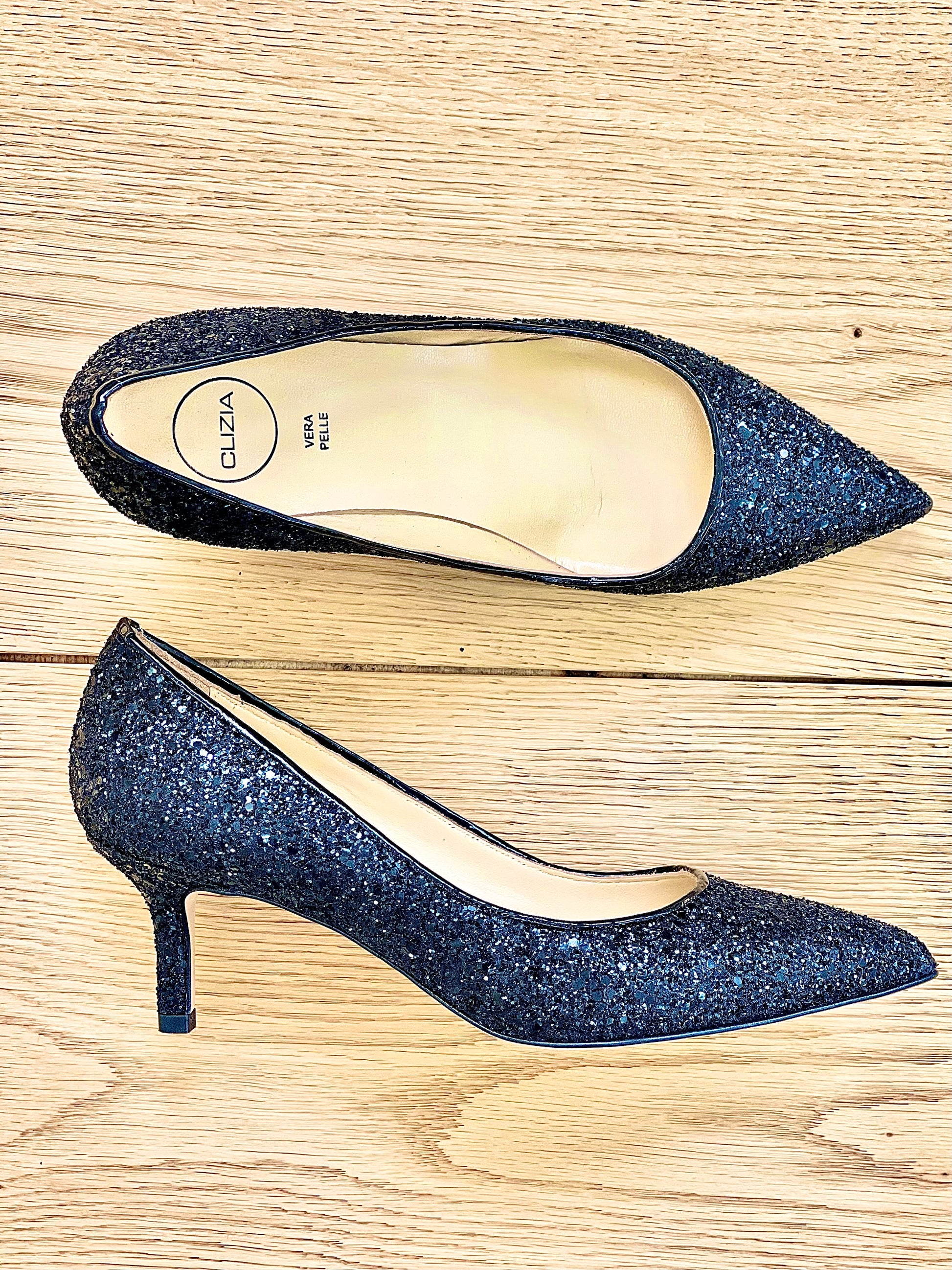 Γόβες με μυτερή μύτη σε γκλίτερ, τακούνι 6 εκ.