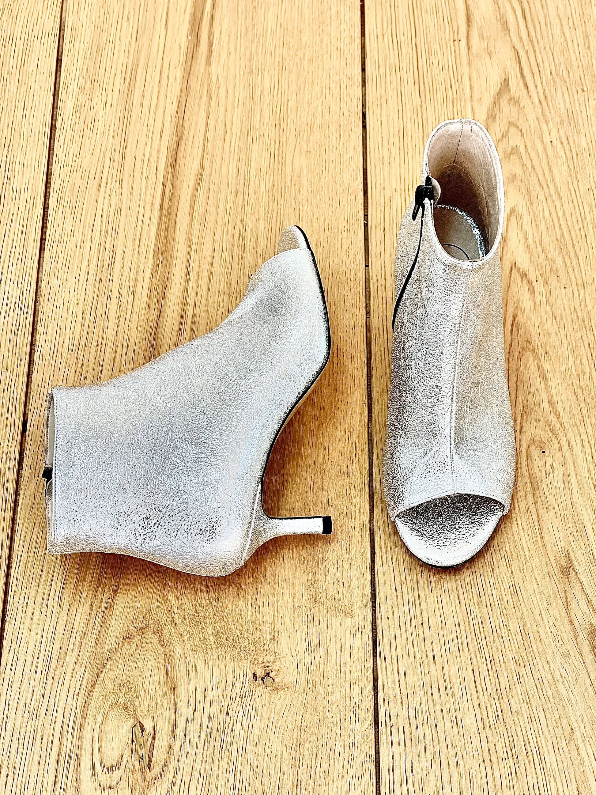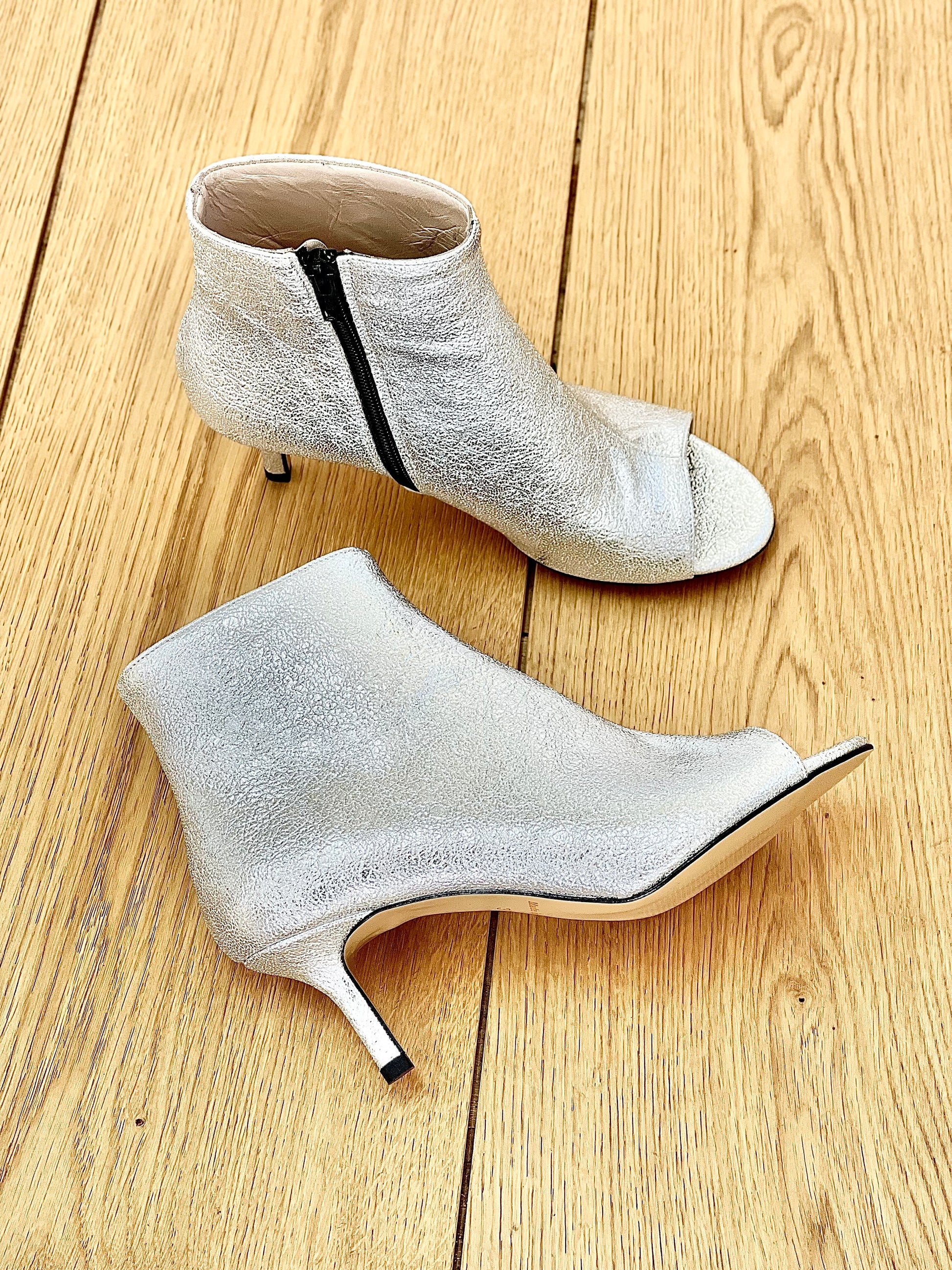 Μποτάκια με ανοιχτή μύτη από λαμινέ με τακούνι 6 εκ.