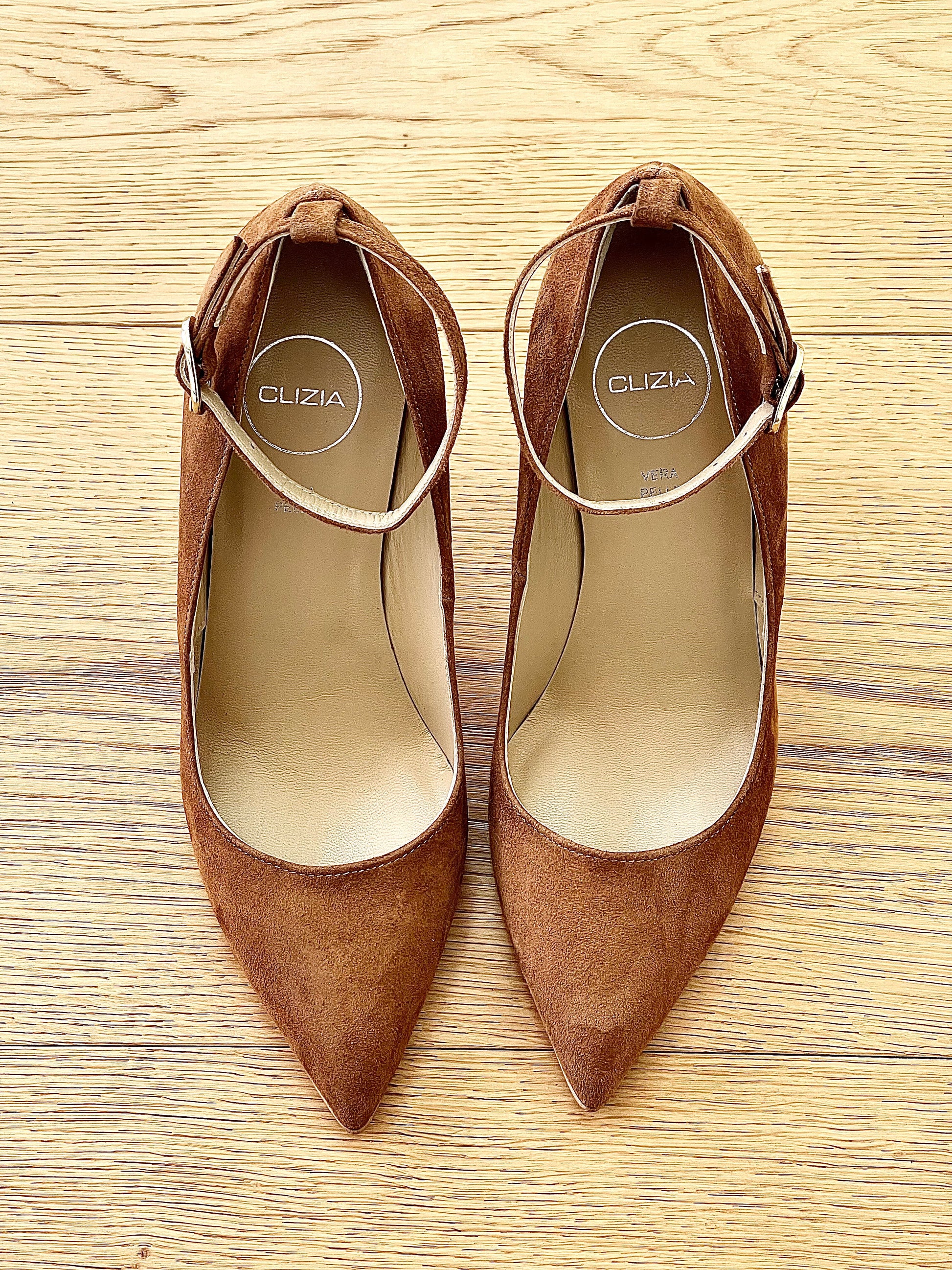 Ψηλά γόβα από σουέτ με λουράκι στον αστράγαλο.