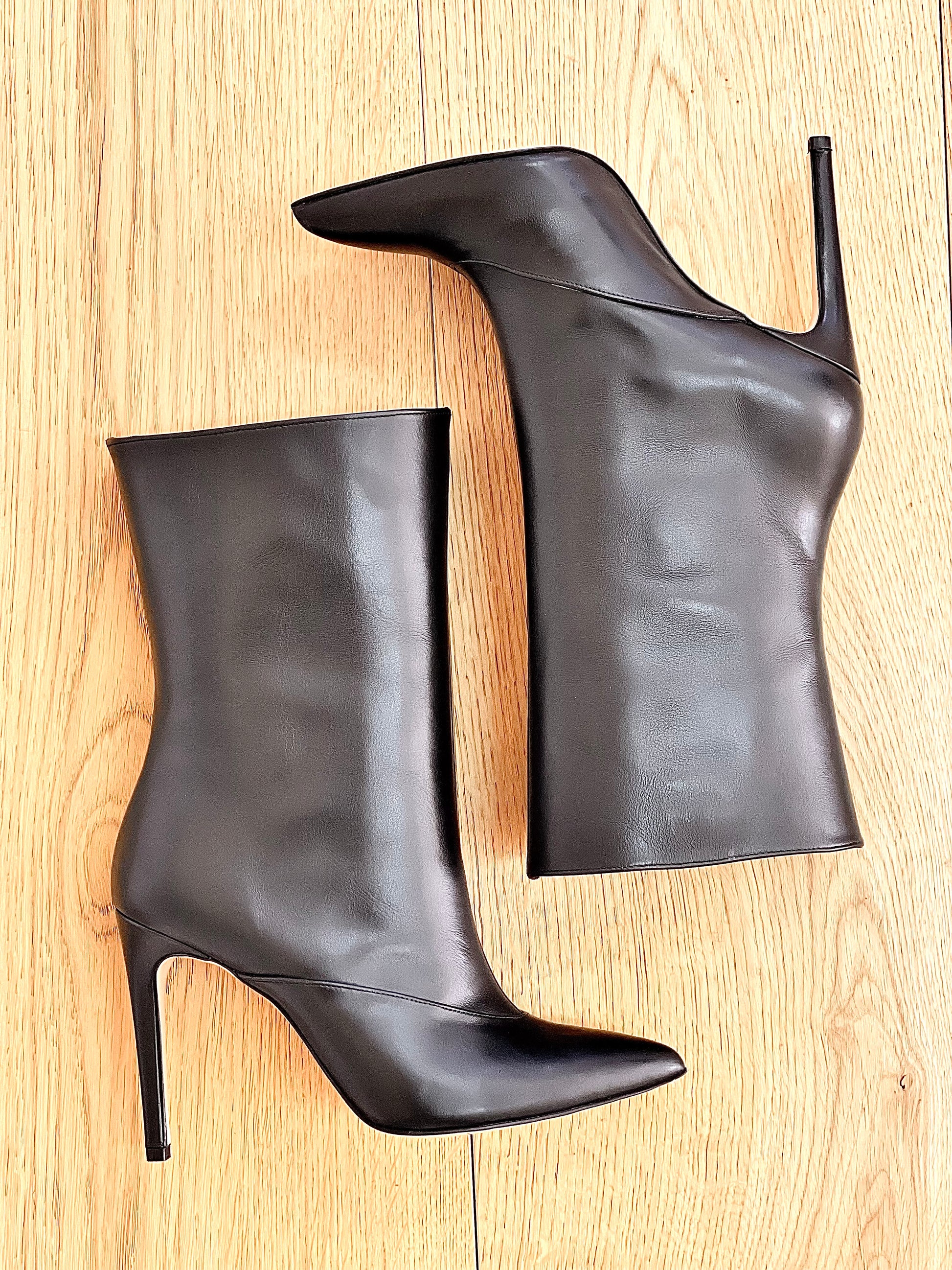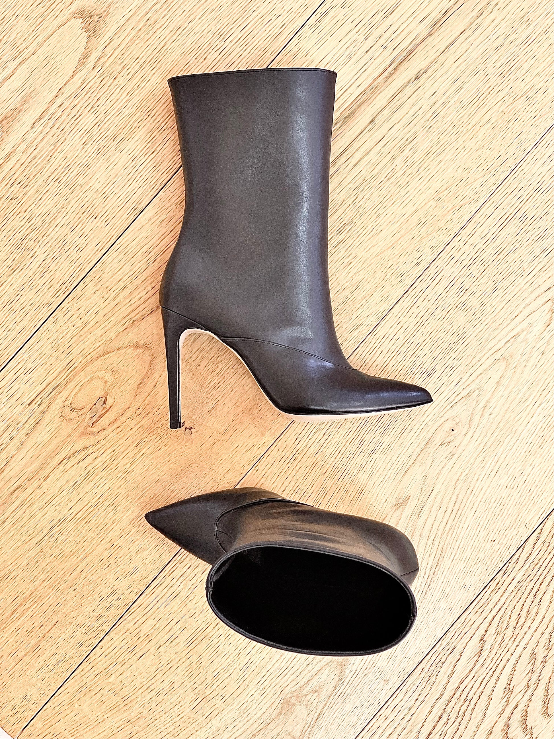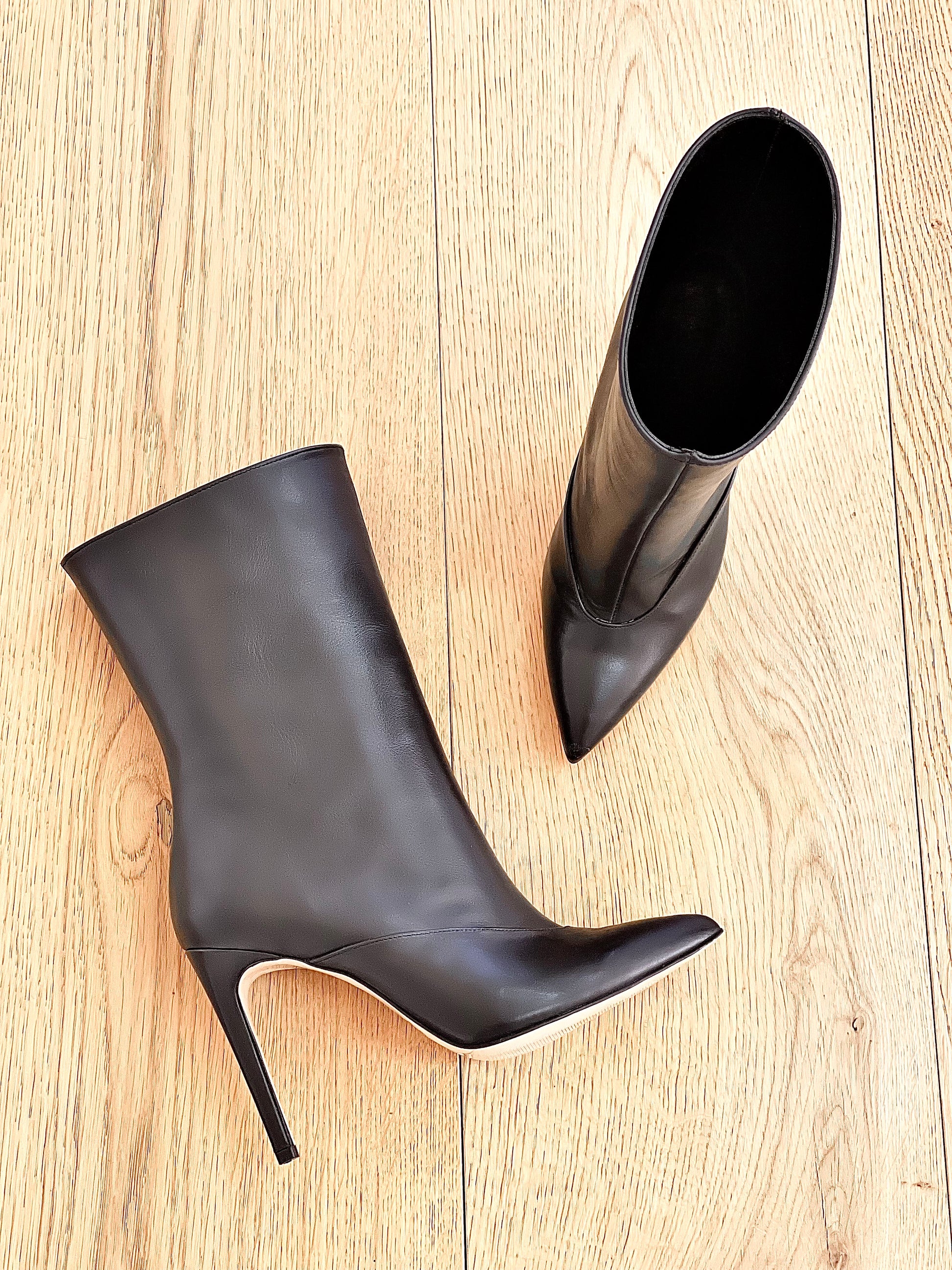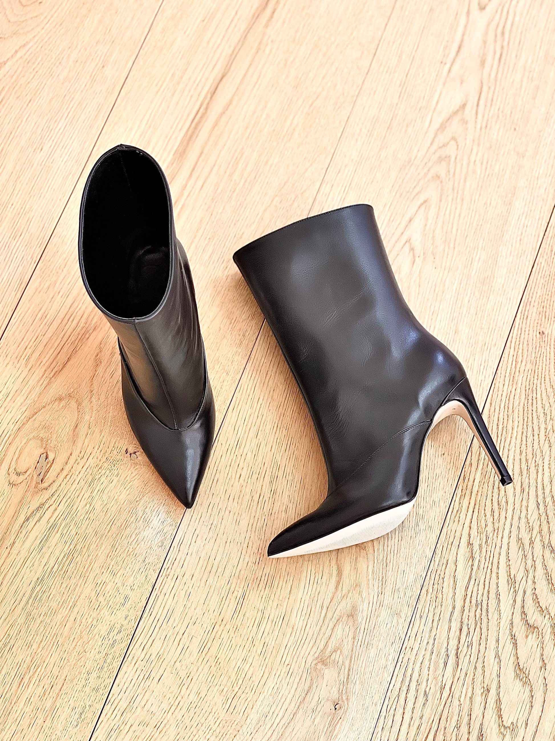 Μποτάκια με ψηλό σωληνωτό τακούνι από δέρμα και μύτη 10 εκατοστά.