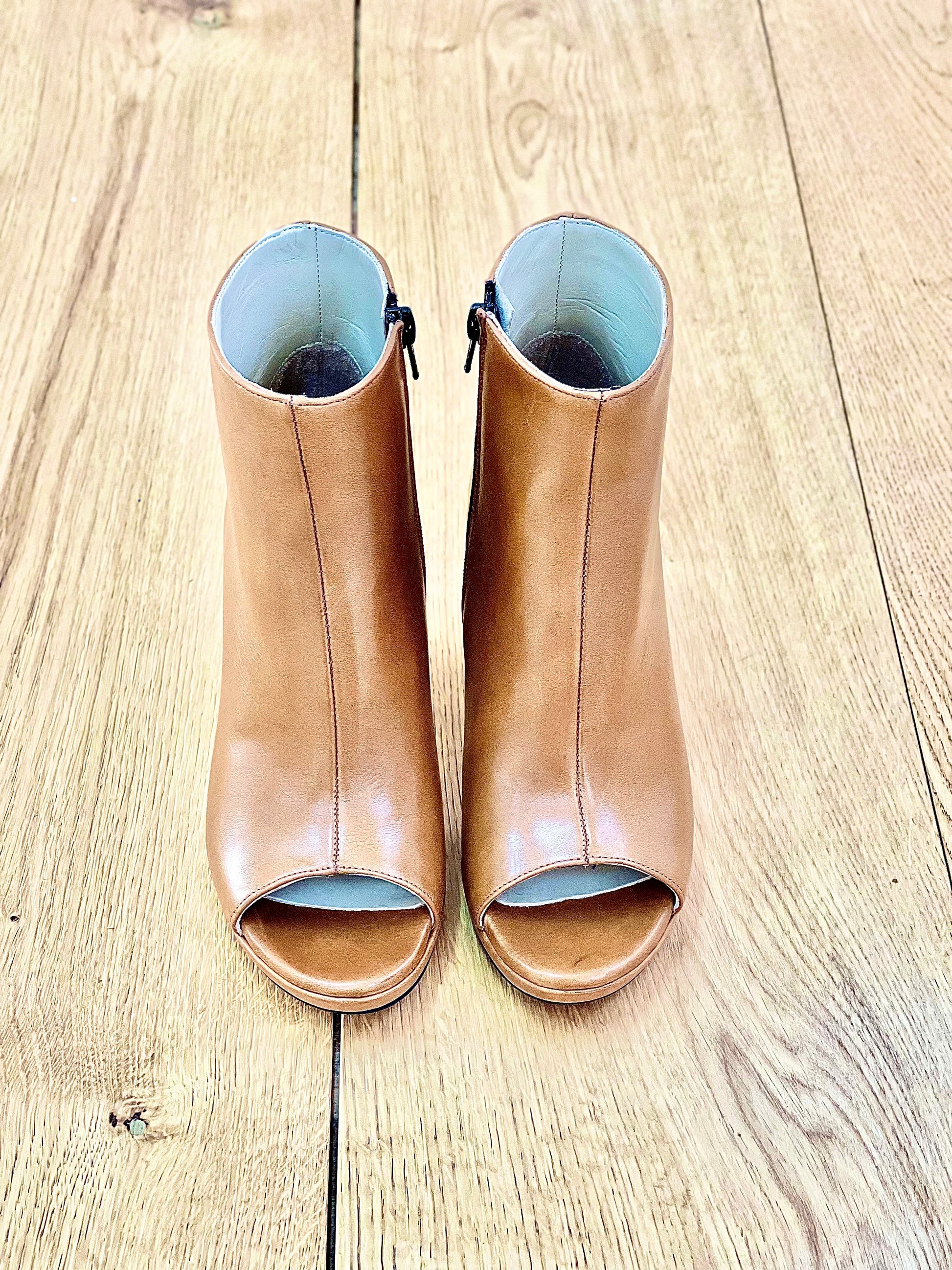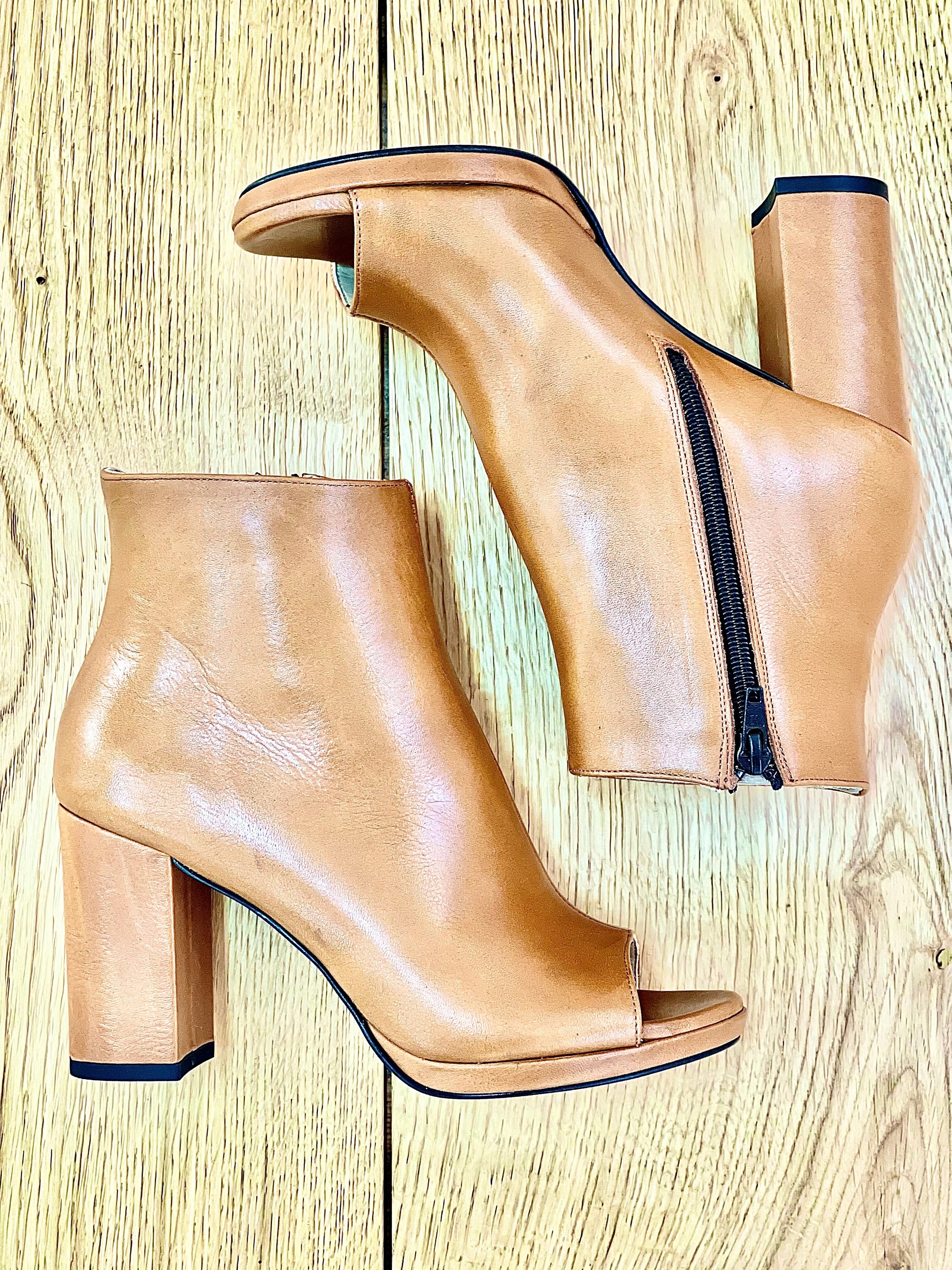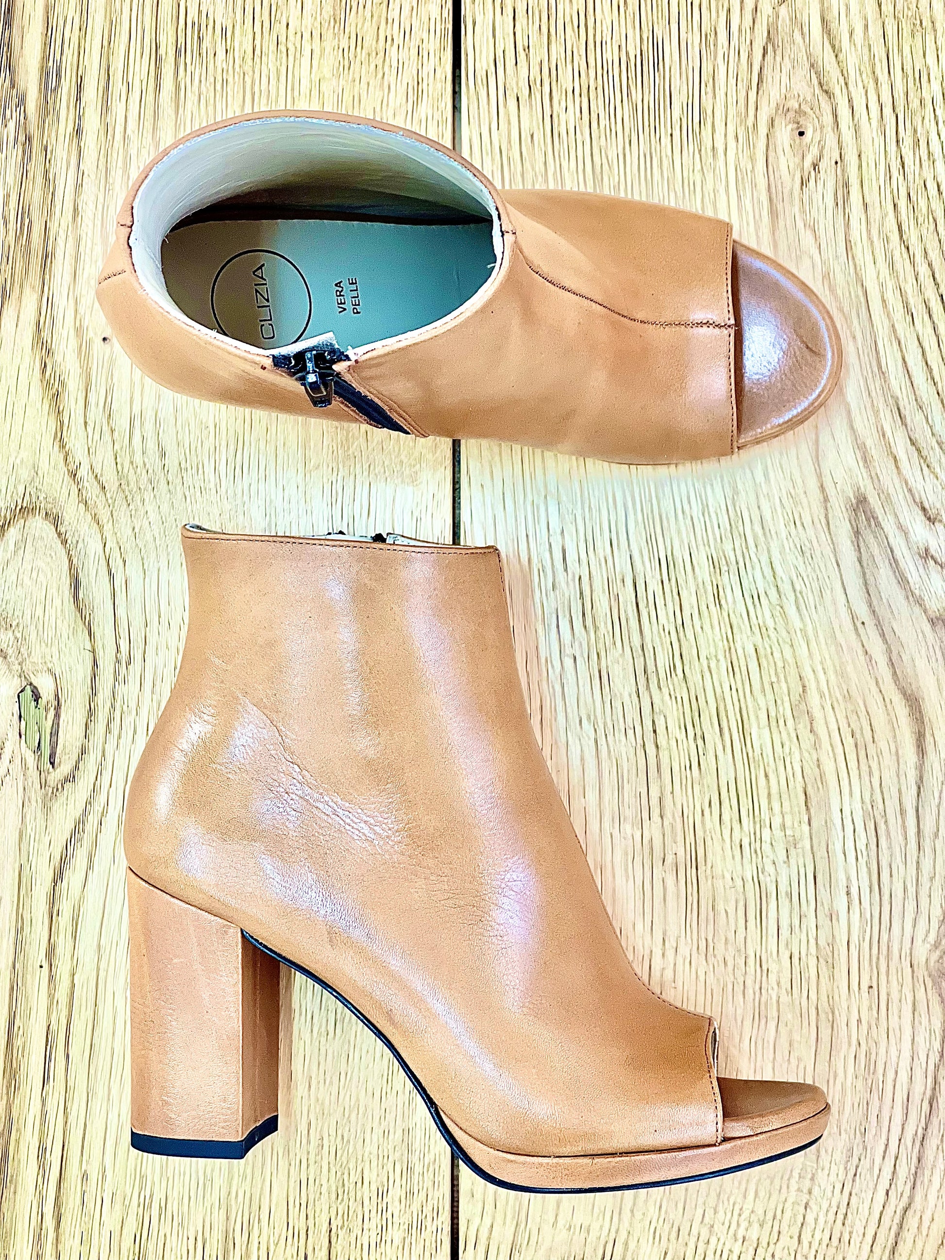 Μποτάκια από δέρμα με φαρδύ τακούνι 9 εκ. και πλατφόρμα 1 εκ.