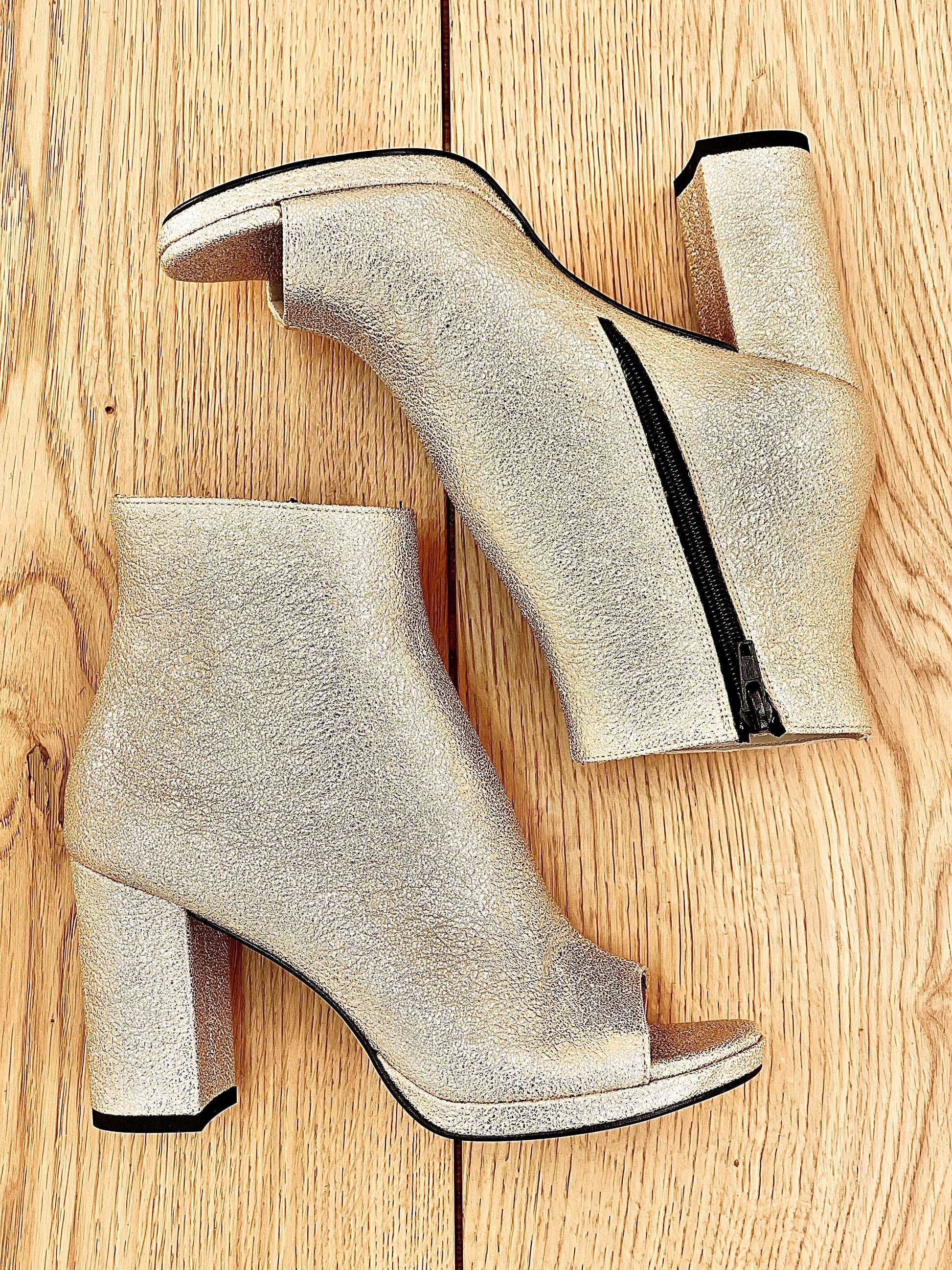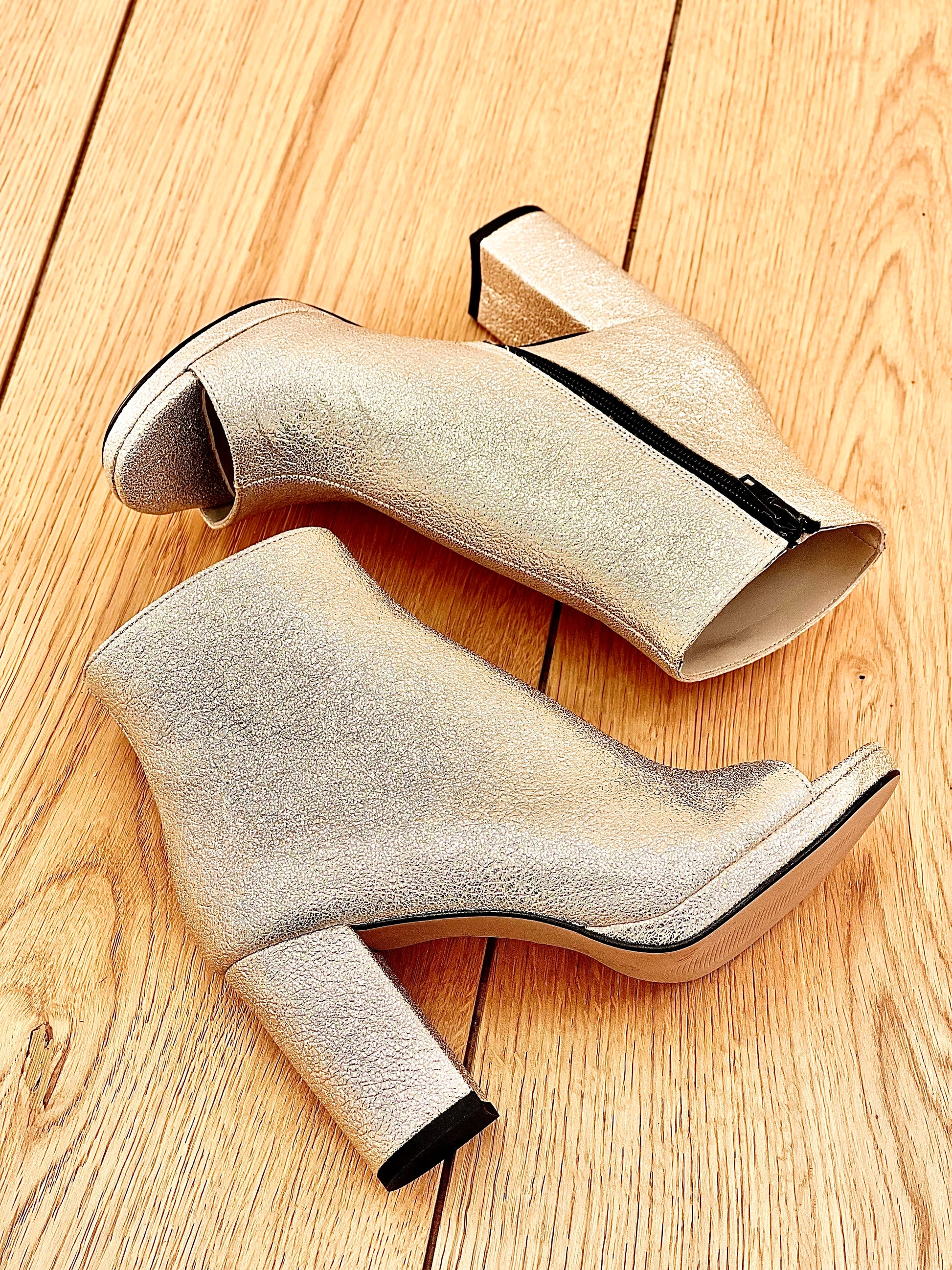 Μποτάκια με ανοιχτή μύτη από λαμινέ, φαρδύ τακούνι 9 εκ. και πλατφόρμα 1 εκ.
