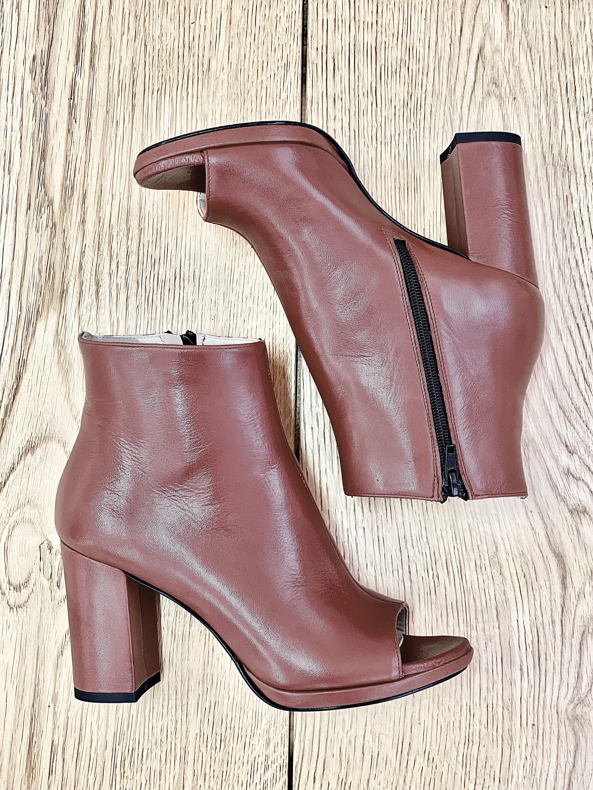 Μποτάκια από δέρμα με πλατφόρμα και φαρδύ τακούνι.