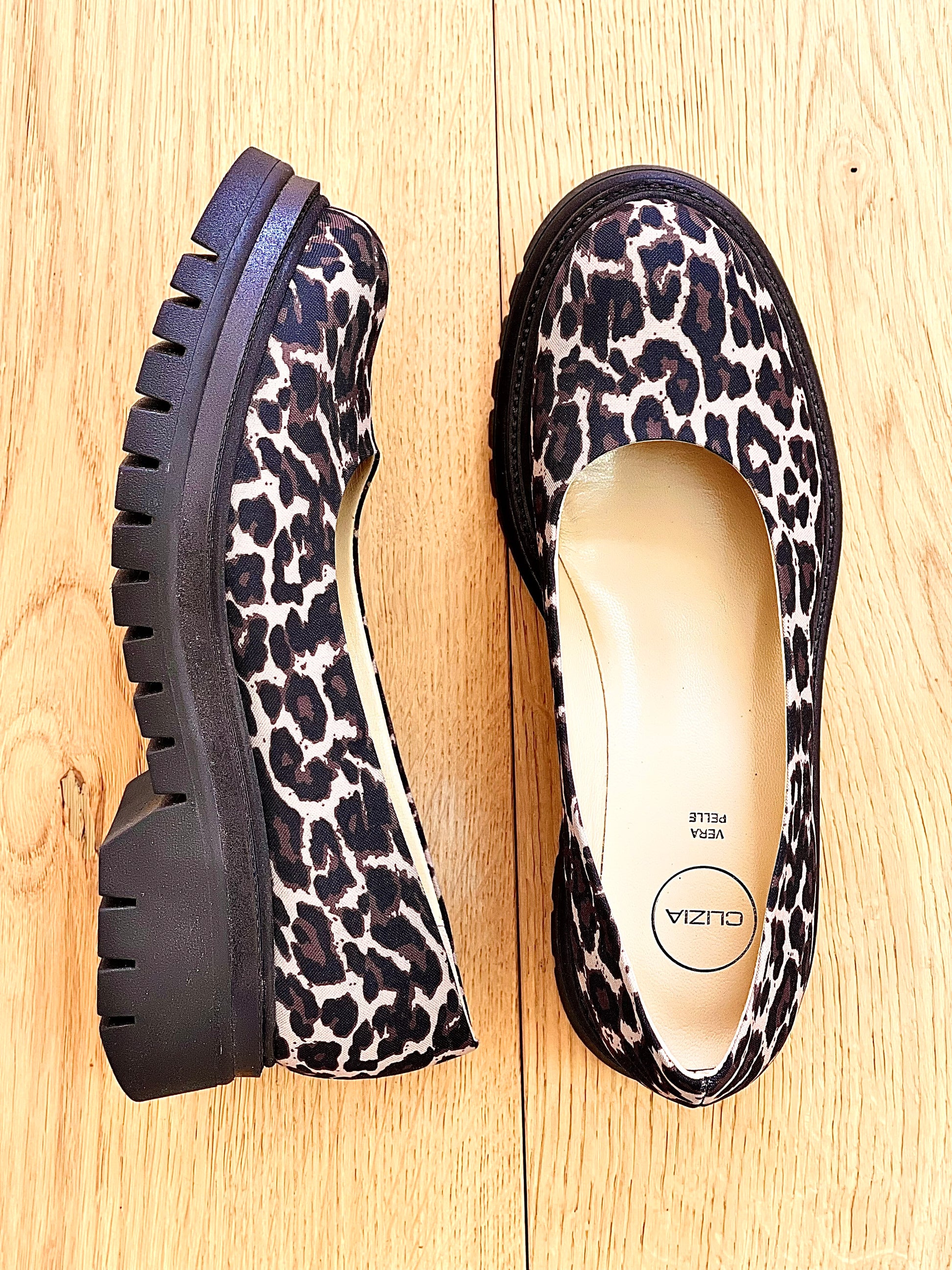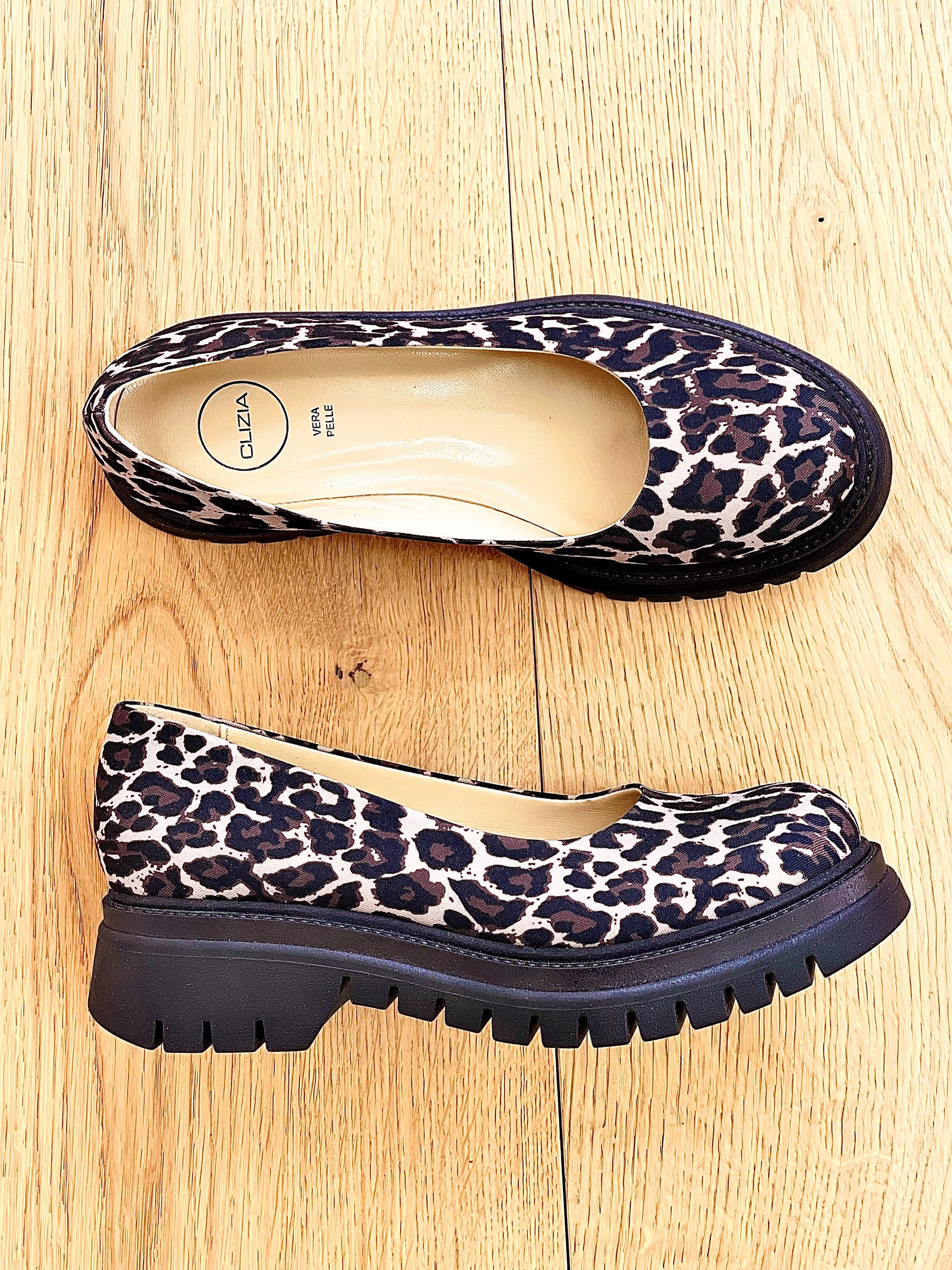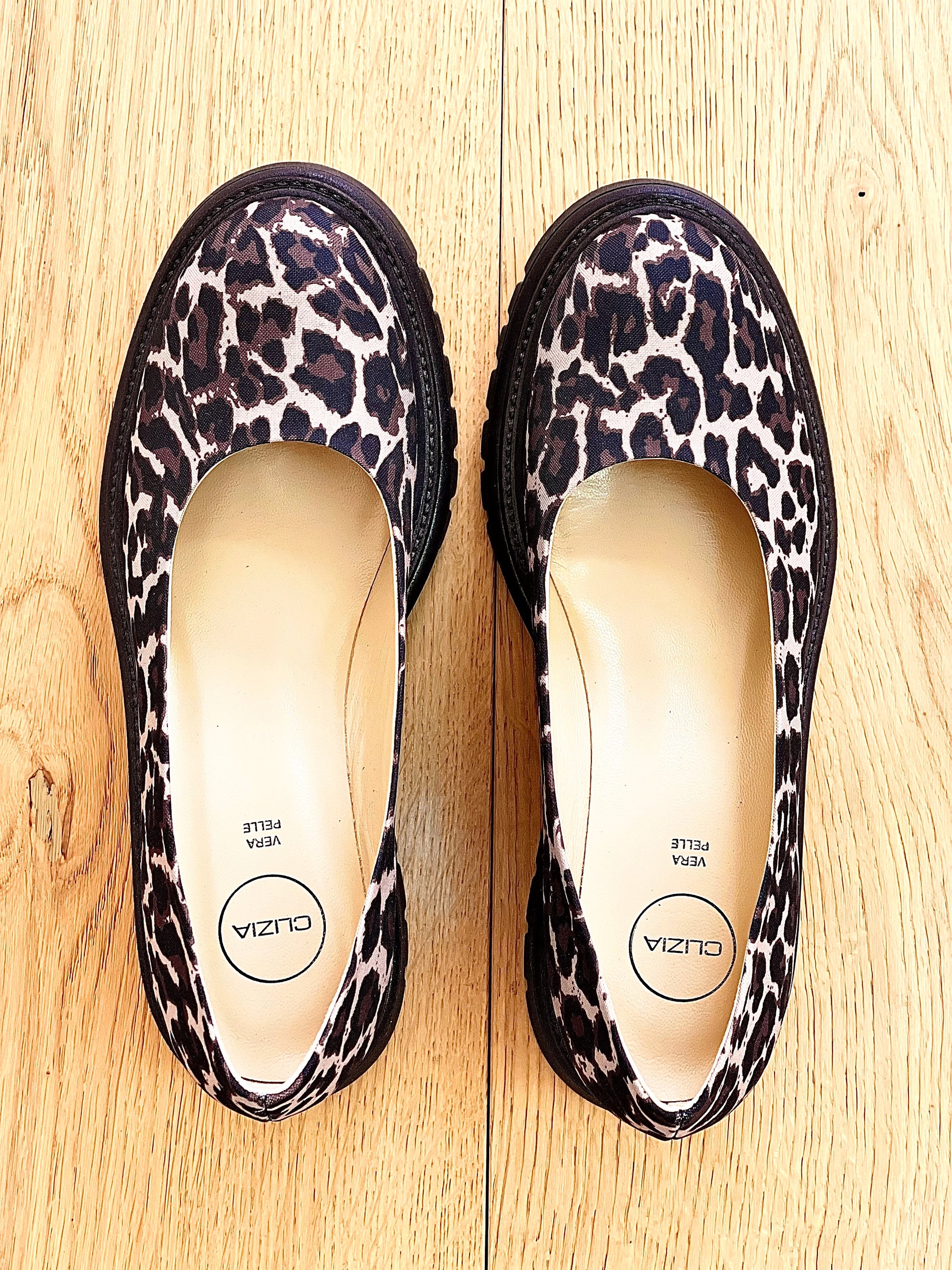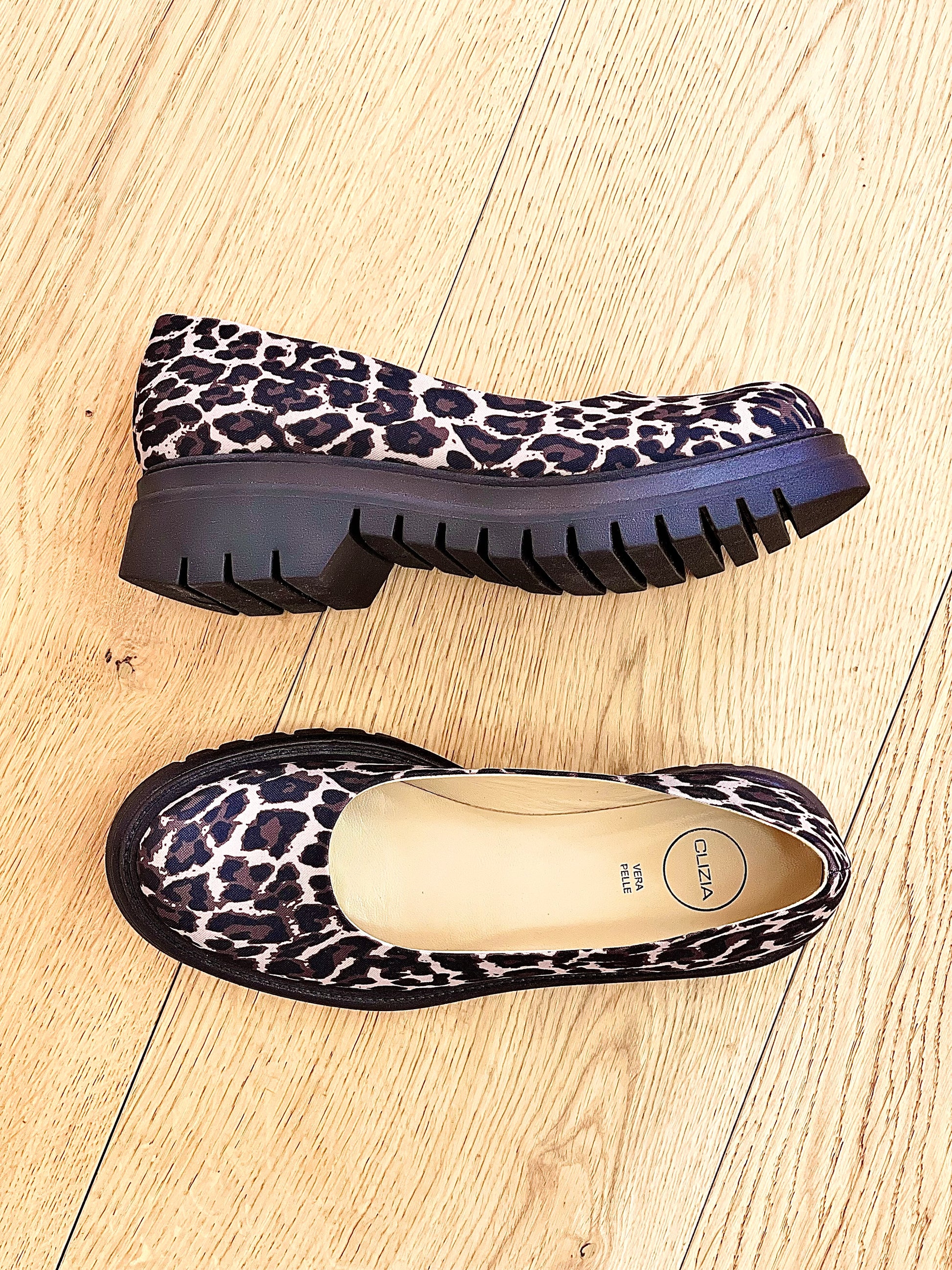 Χαμηλά παπούτσια μπαλαρίνες με animalier μοτίβο και αντιολισθητική σόλα.