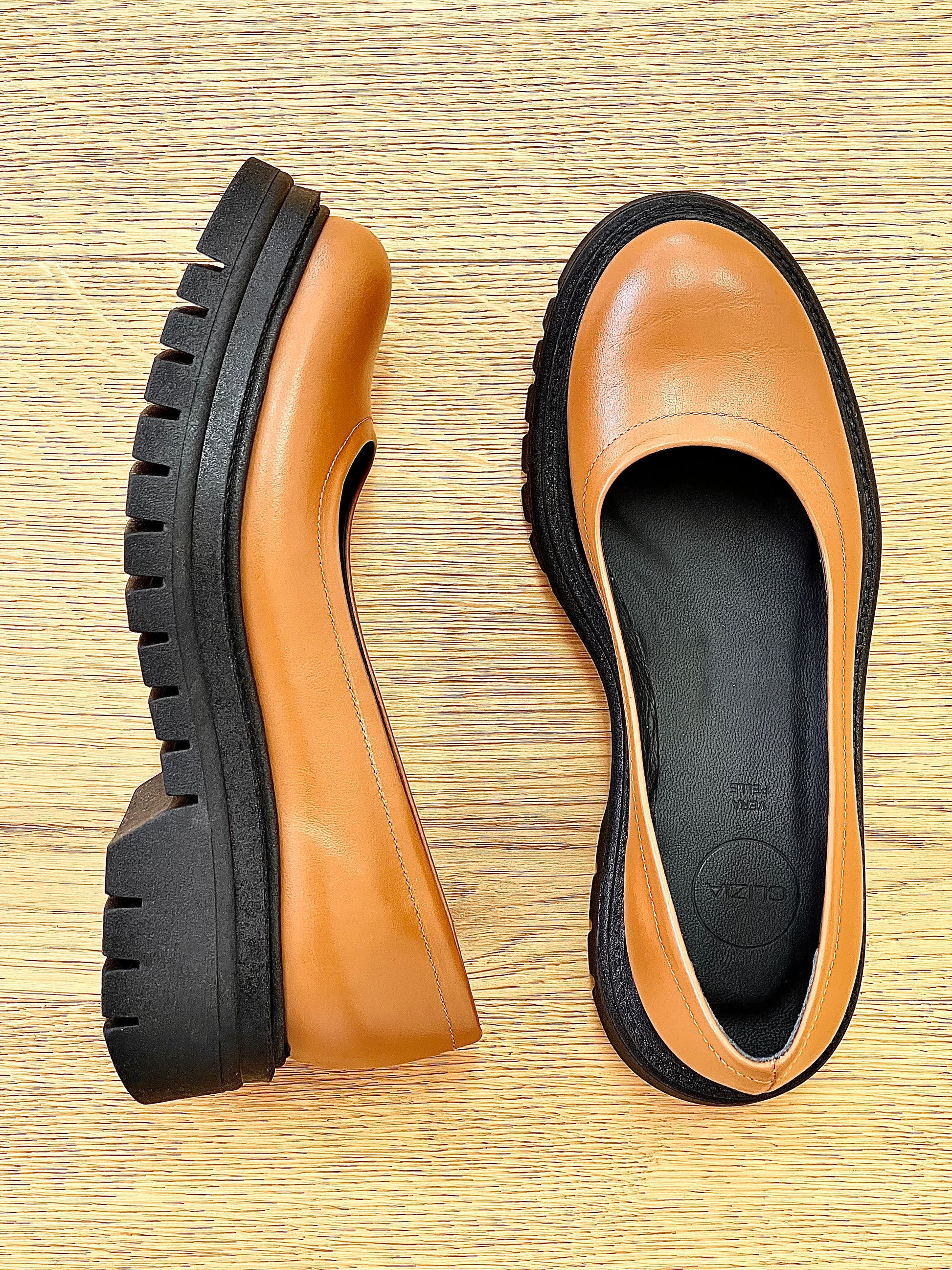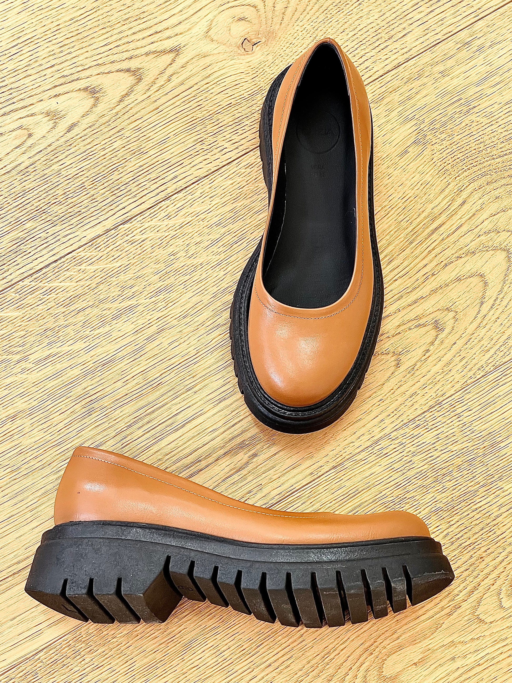 Χαμηλά δερμάτινα μπαλαρίνια με αντιολισθητική σόλα.
