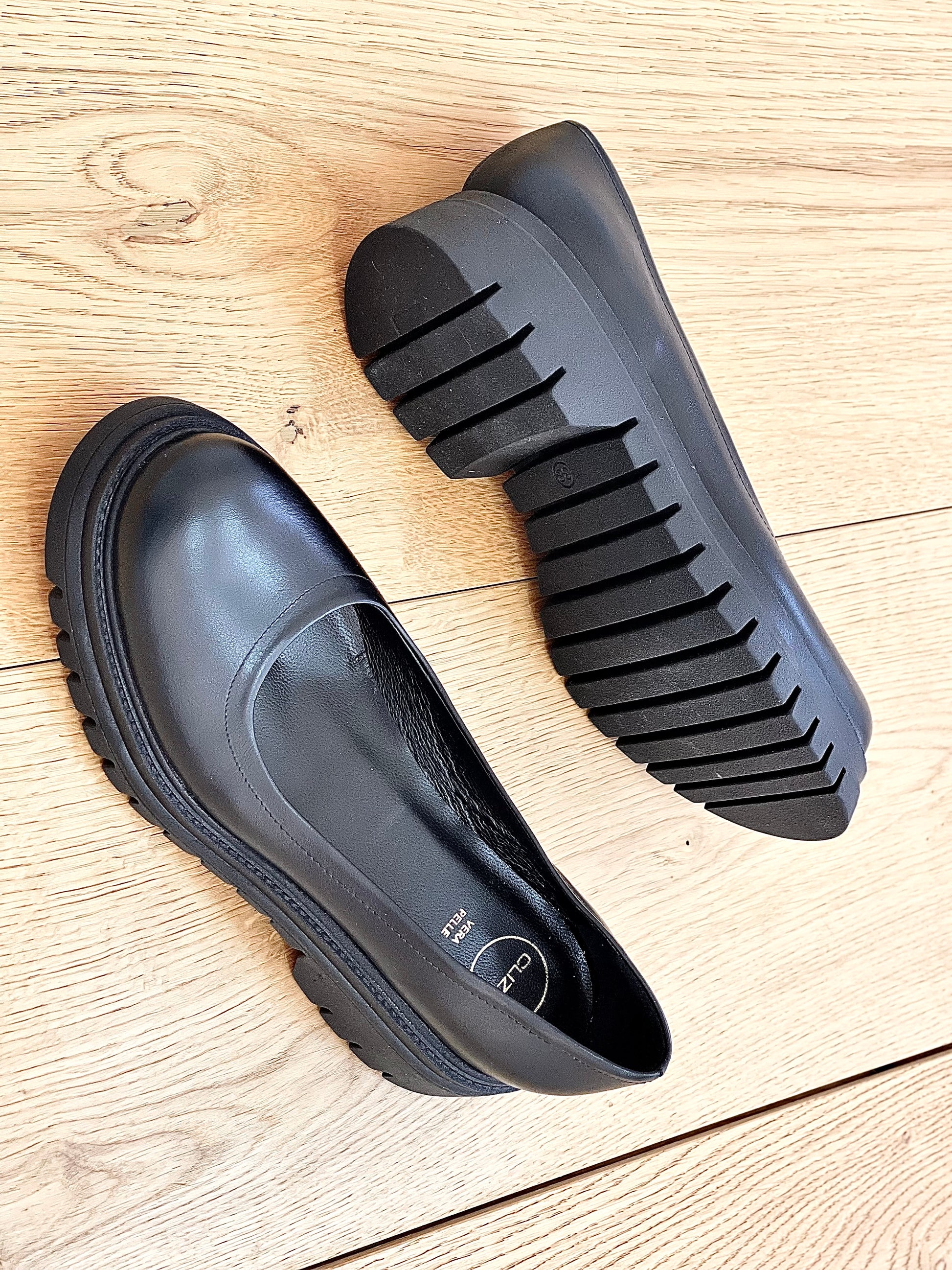 Χαμηλά δερμάτινα μπαλαρίνια με αντιολισθητική σόλα.