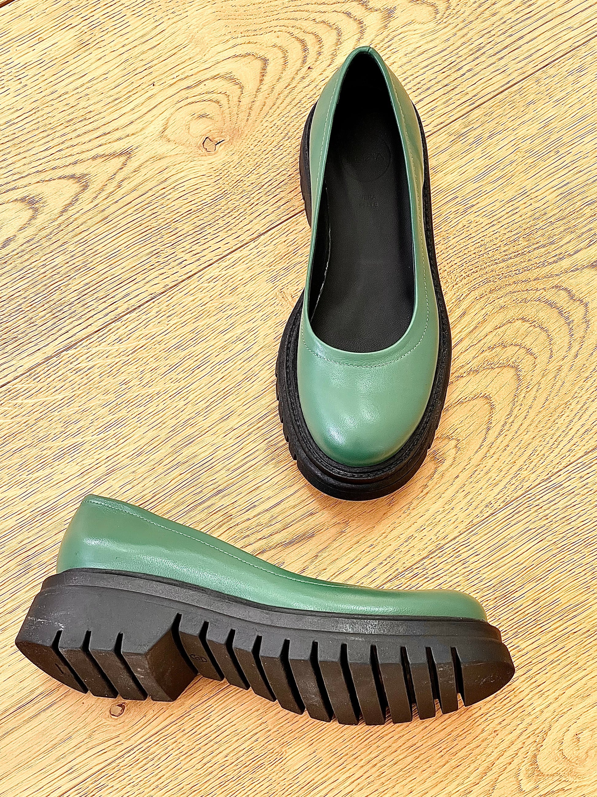 Χαμηλά δερμάτινα μπαλαρίνια με αντιολισθητική σόλα.