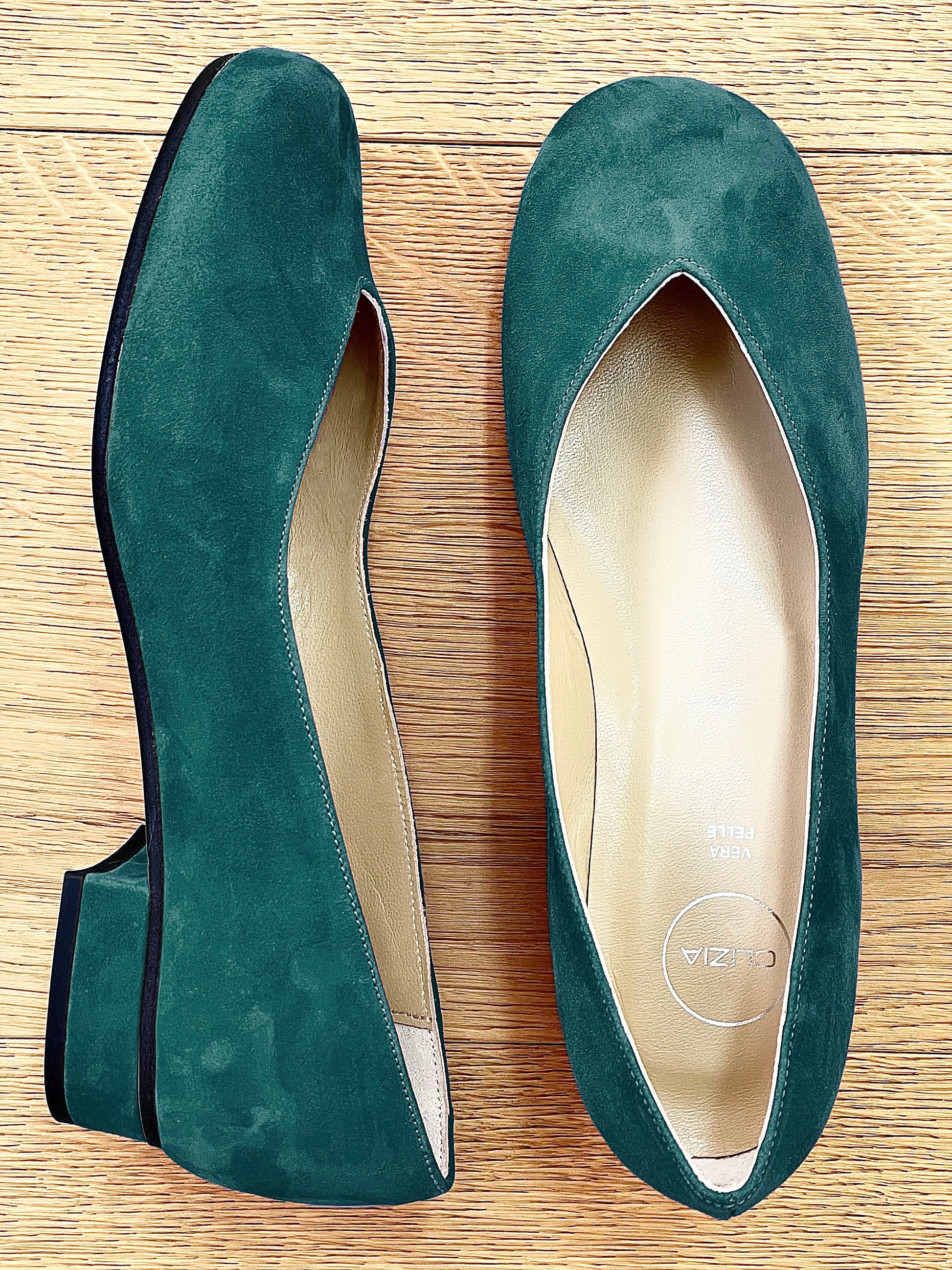 Χαμηλά γόβα με στρογγυλή μύτη και V λαιμόκοψη.