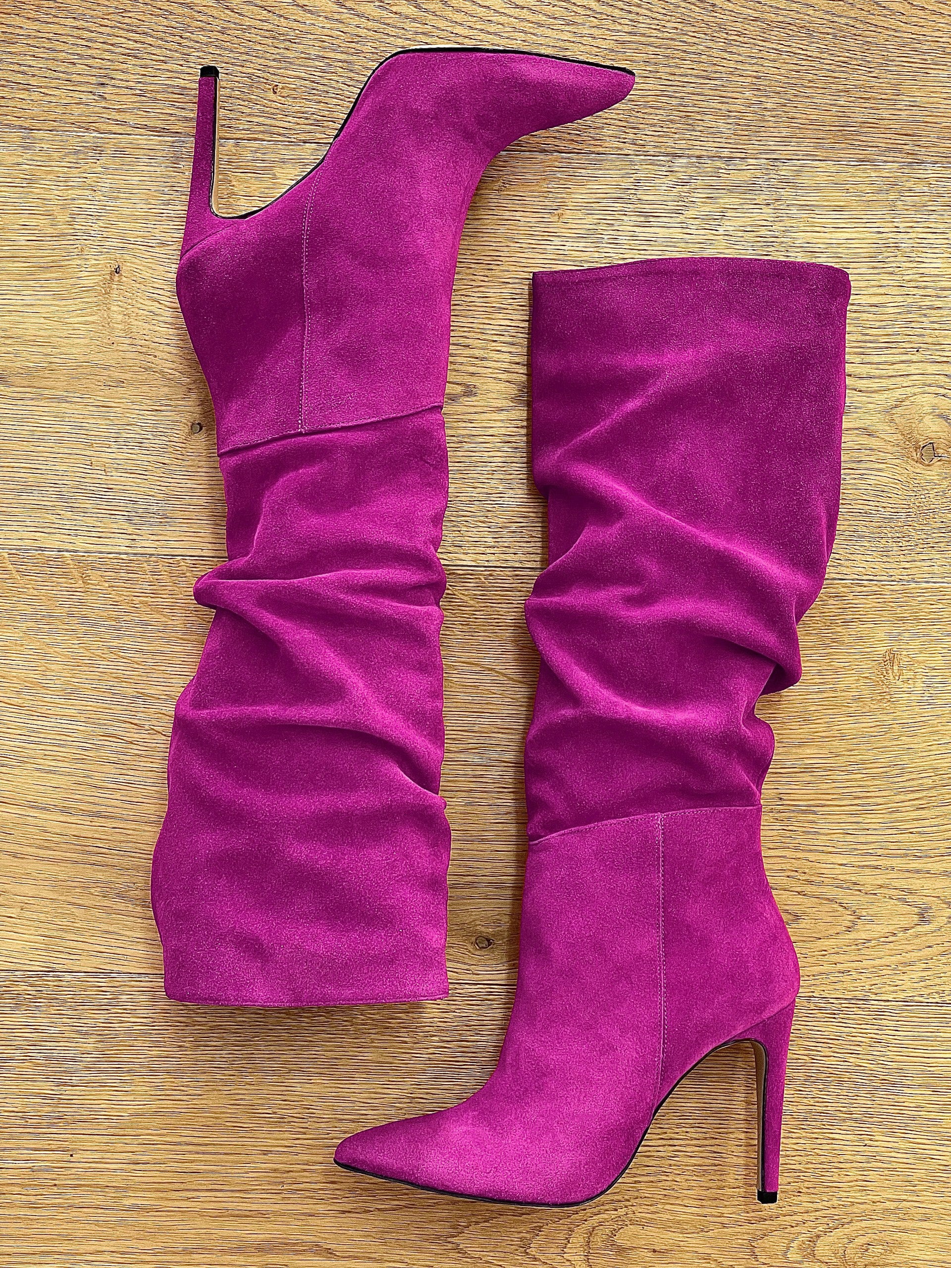 Ψηλά, φαρδιά, σωληνωτά, σουέτ μπότες με τακούνι.