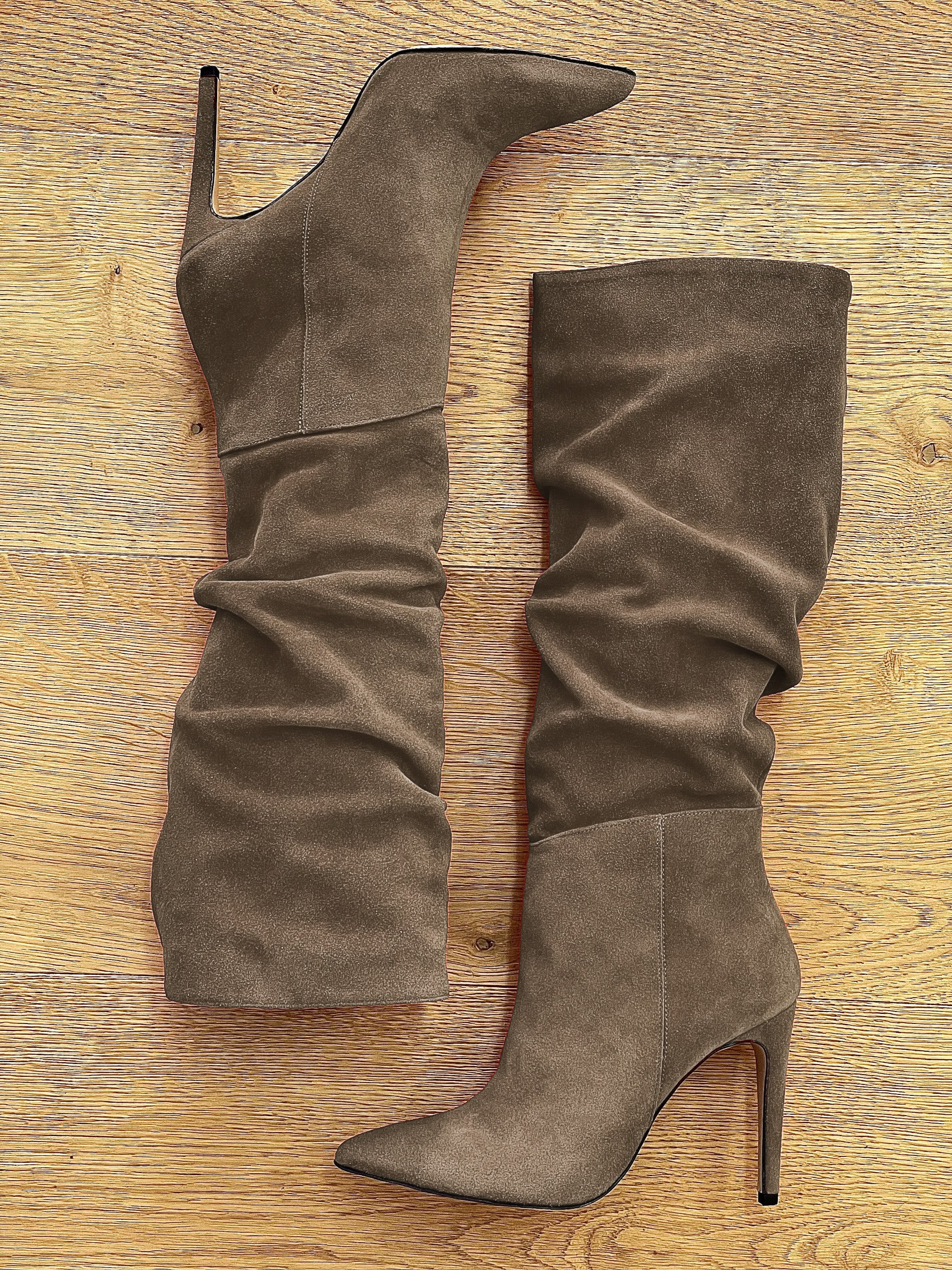 Ψηλά σωληνωτά μποτάκια με φαρδιά μύτη και ψηλό τακούνι.