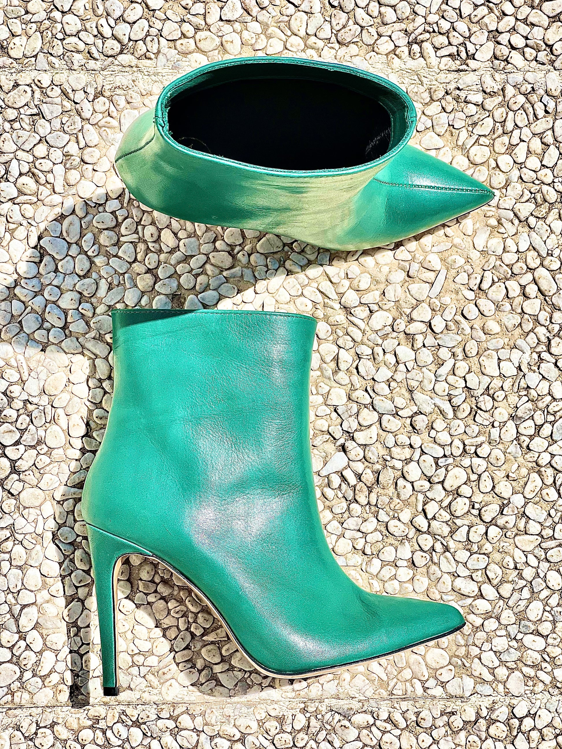 Μποτάκι με μυτερή μύτη από δέρμα και τακούνι 100 mm.