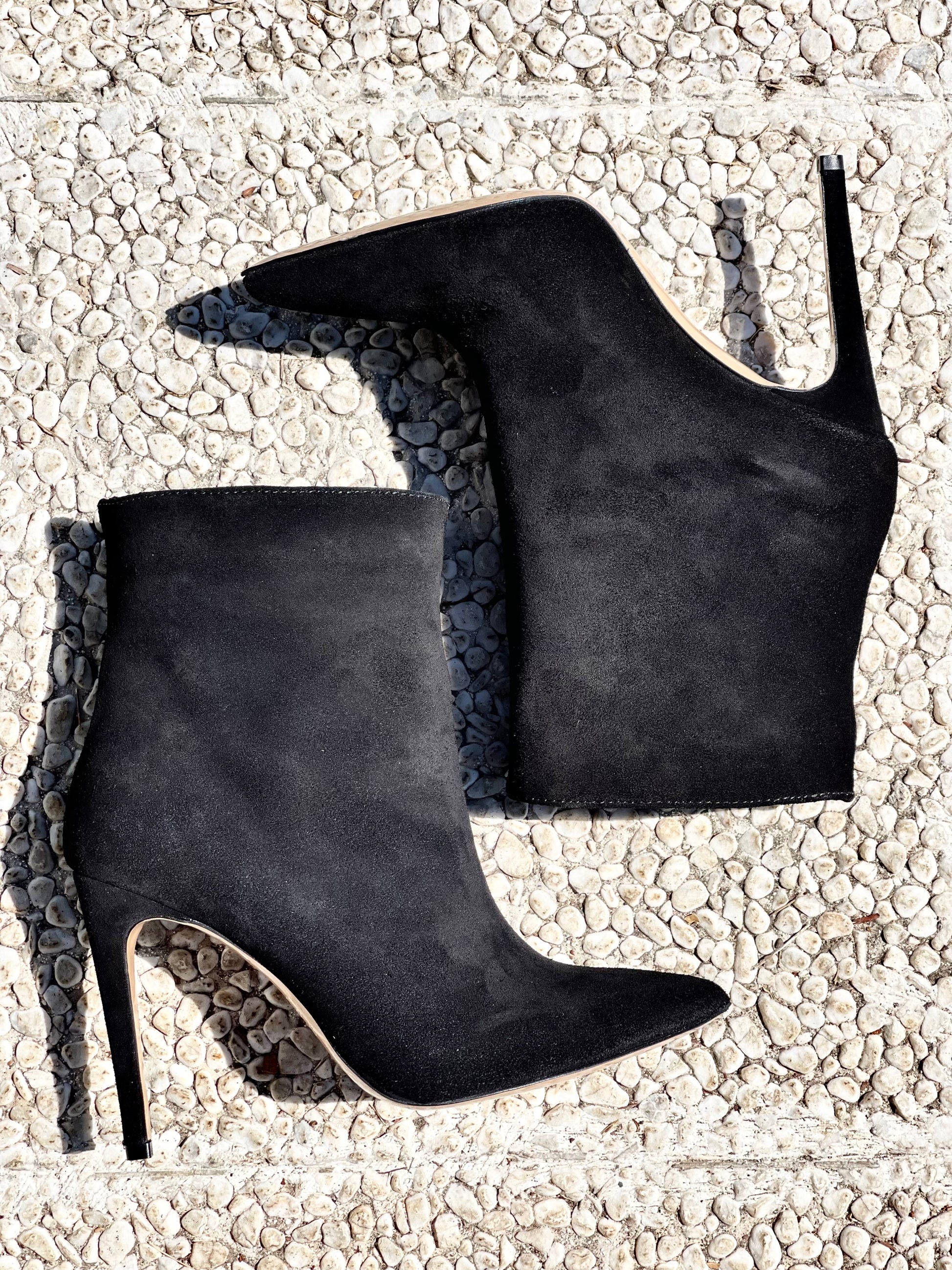 Μποτάκι με μυτερή μύτη από καμηλό δέρμα και τακούνι 100 mm.