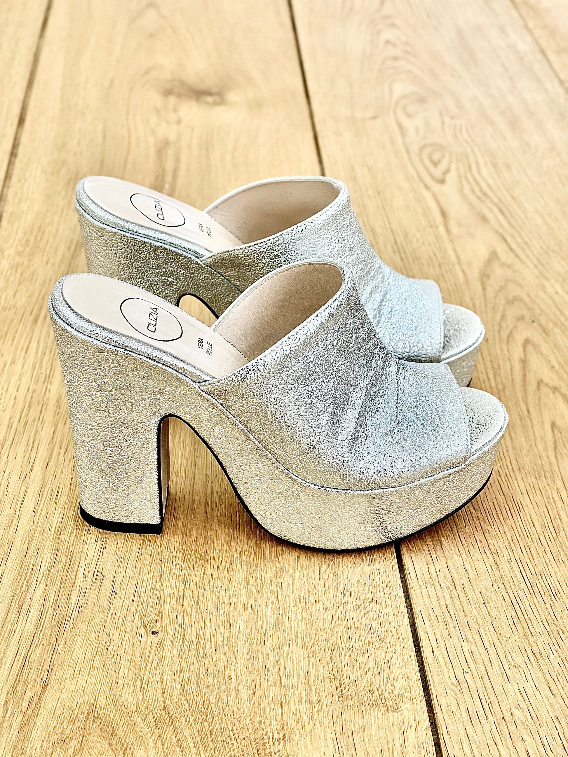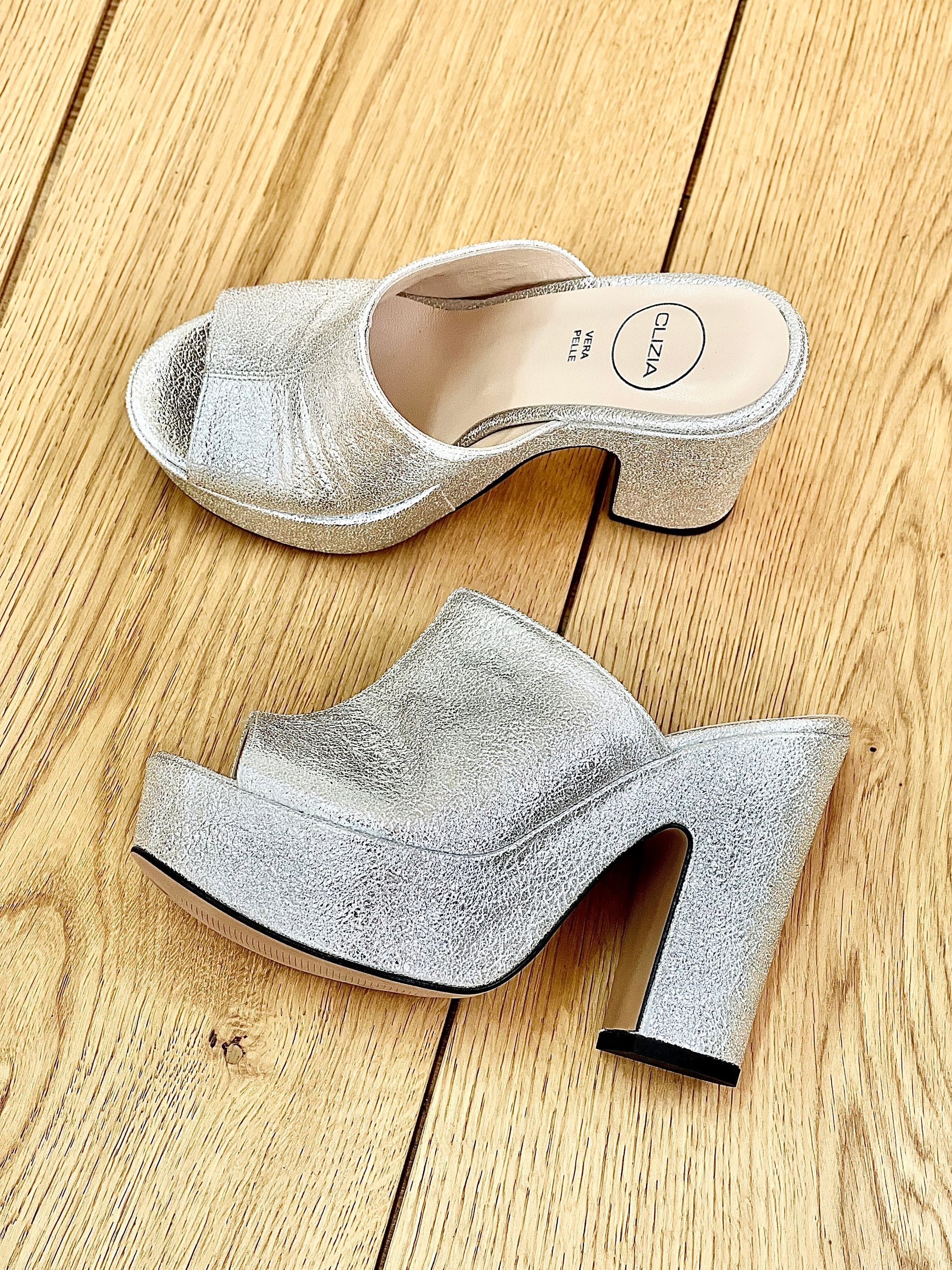 Σανδάλια σαμποτ από πλαστικό υλικό με τακούνι ύψους 11,5 εκ. και πλατφόρμα 4 εκ.