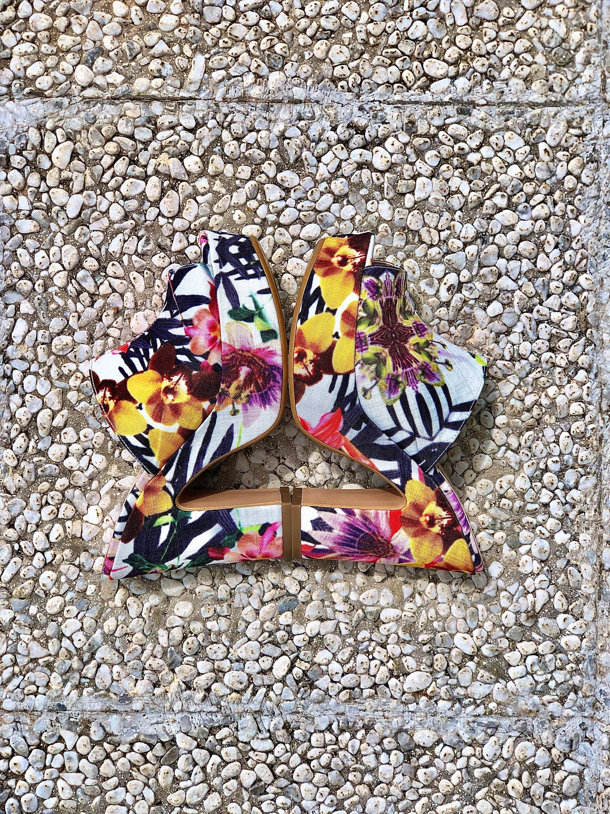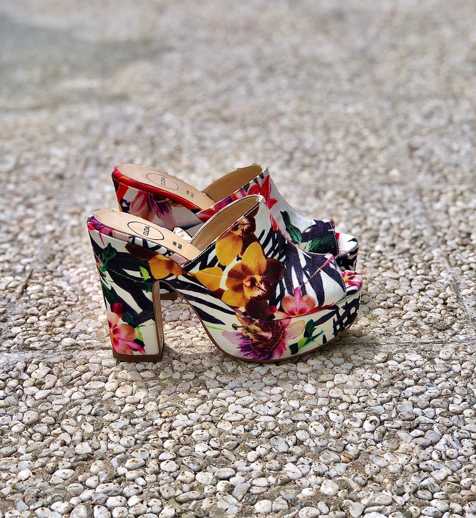 Σαμπό από τυπωμένο ύφασμα με τακούνι 11,5 εκ. και πλατφόρμα 4 εκ.
