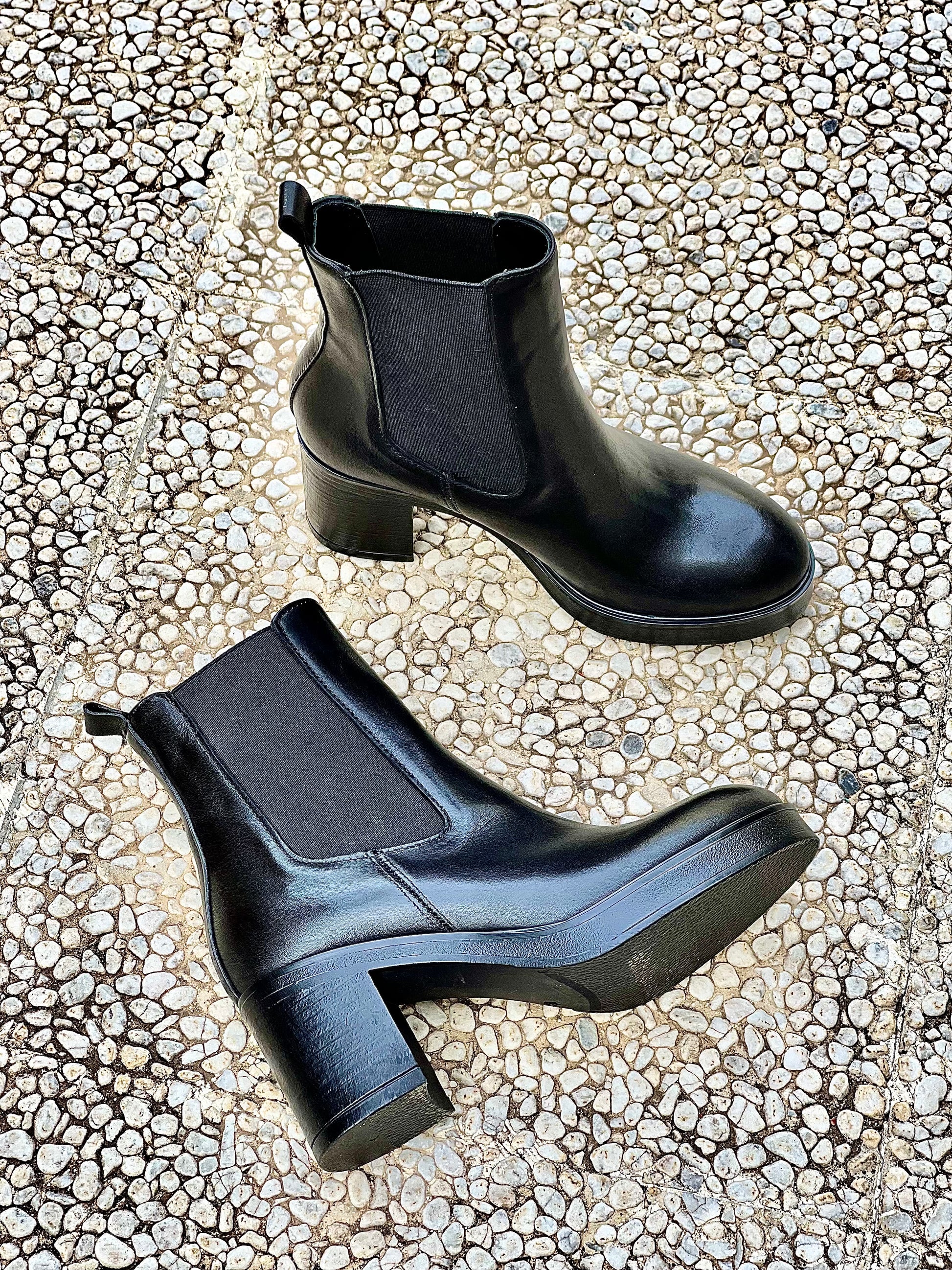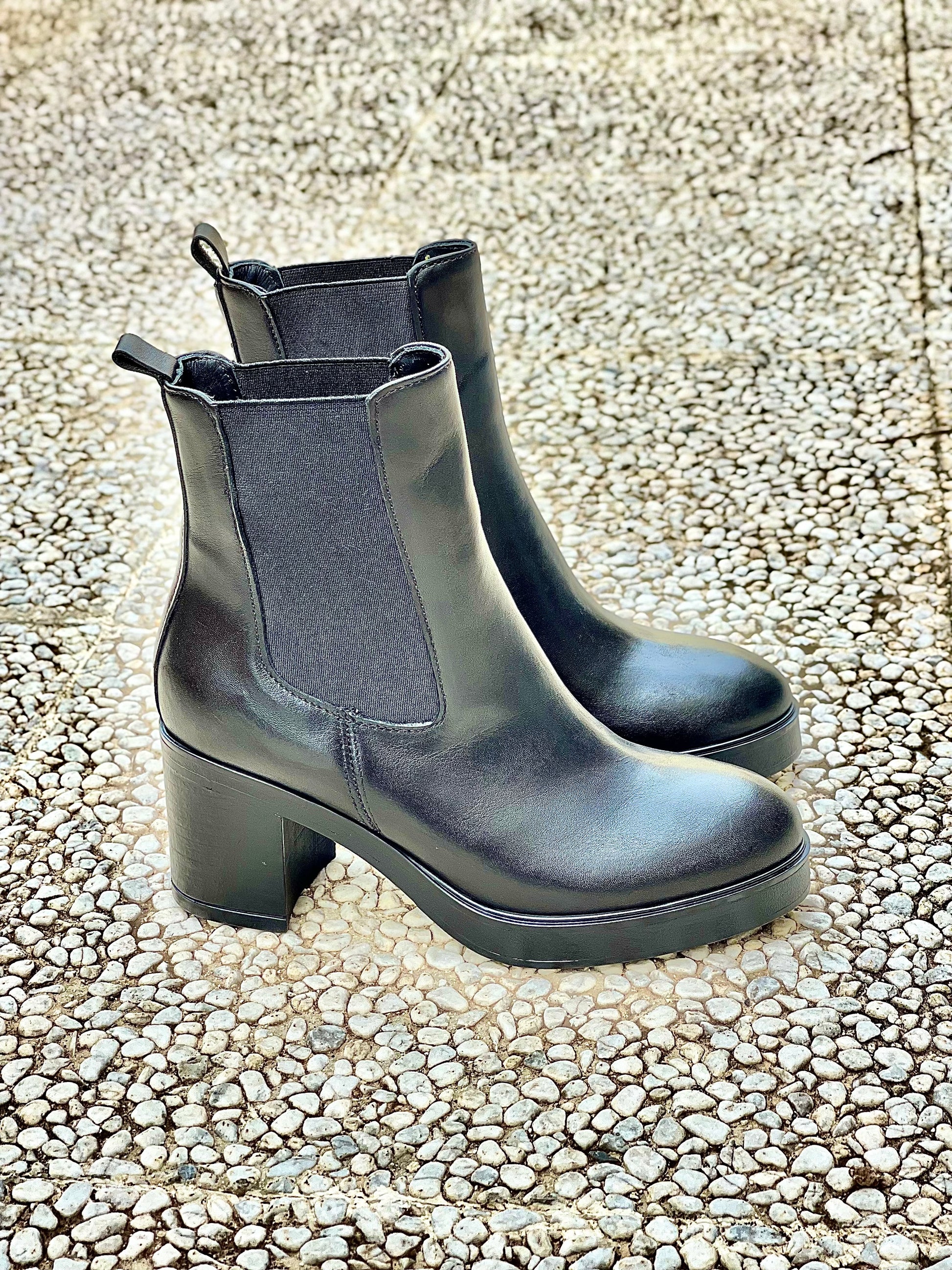 Δερμάτινο μποτάκι με τακούνι 7 εκ. και πλατφόρμα 2 εκ.