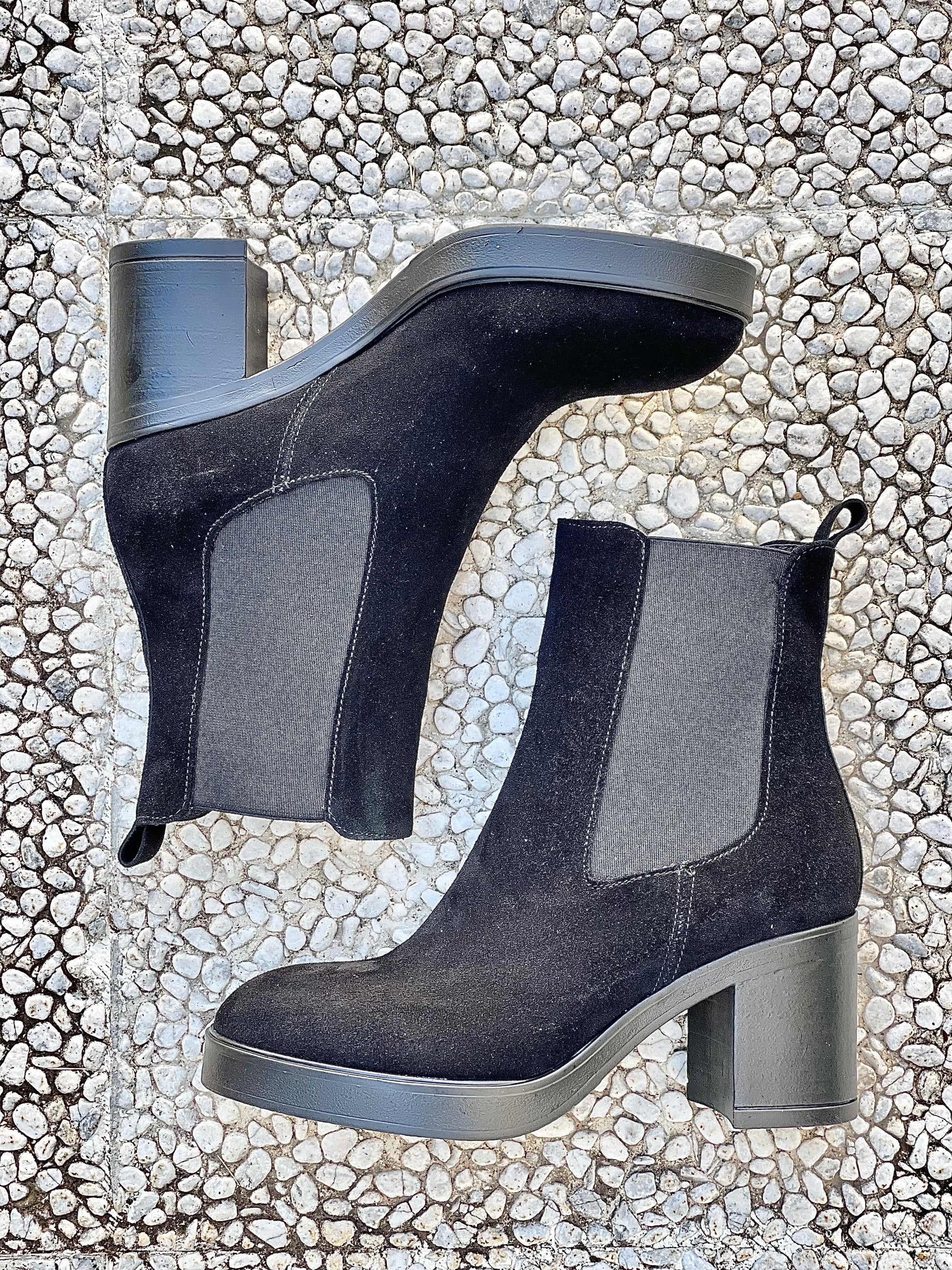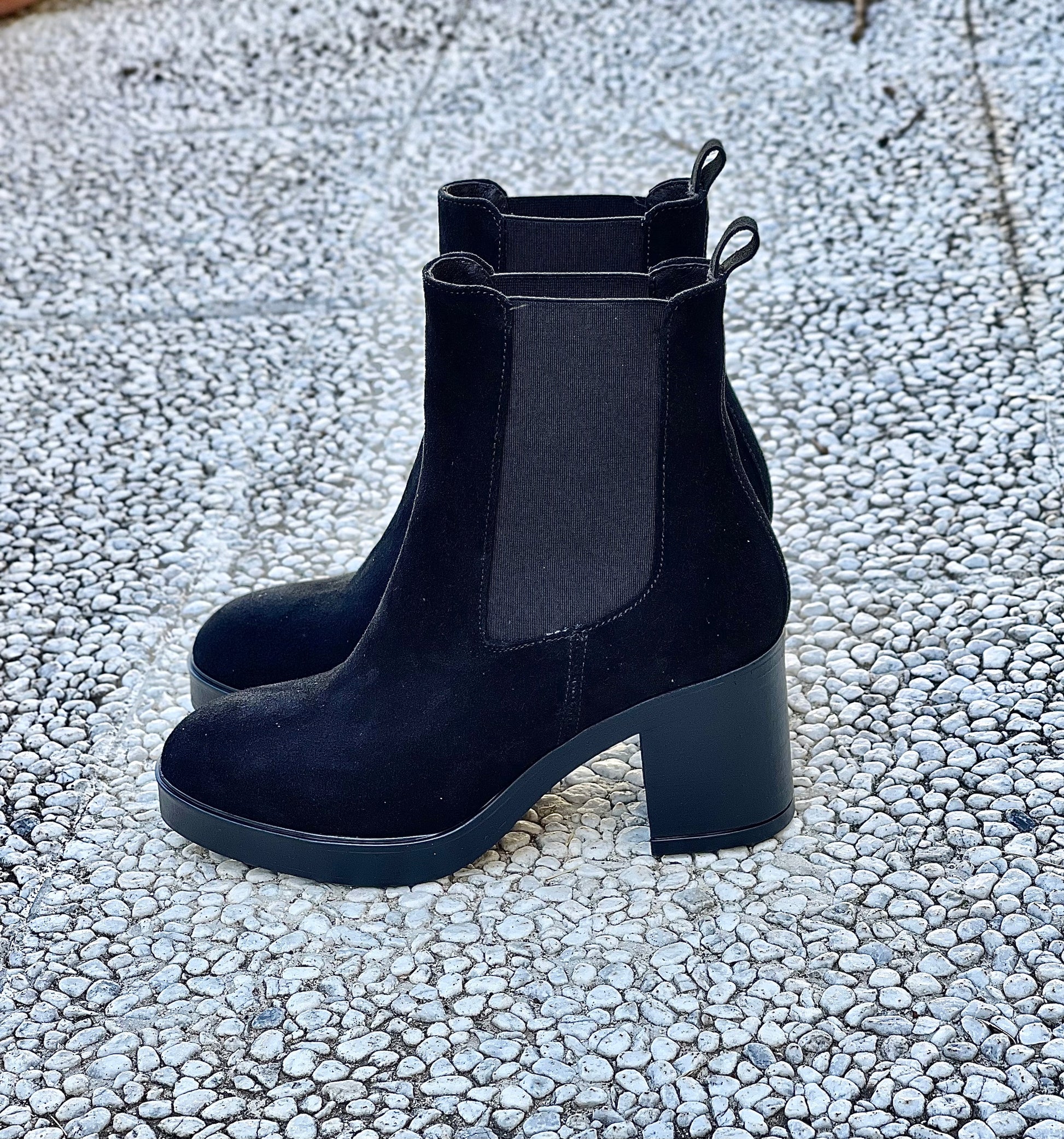 Μπότες από σουέτ δέρμα με τακούνι 7 εκ. και πλατφόρμα 2 εκ.