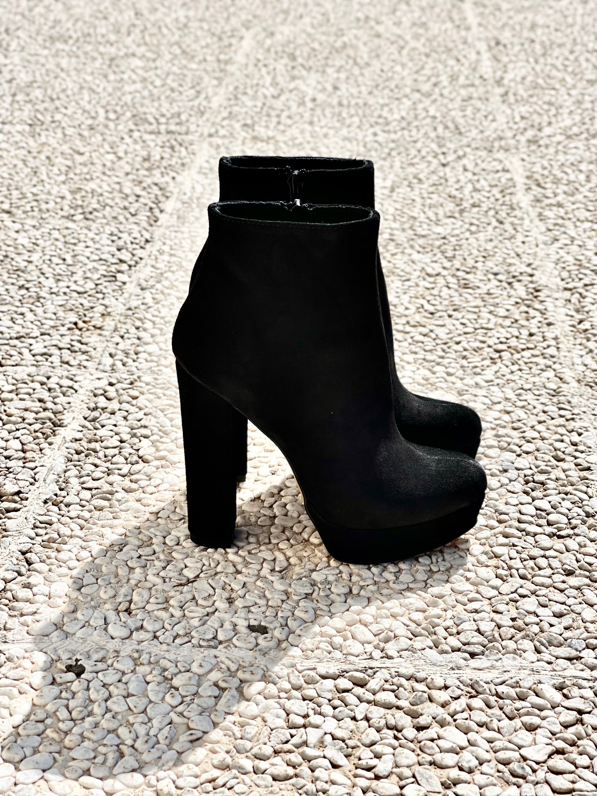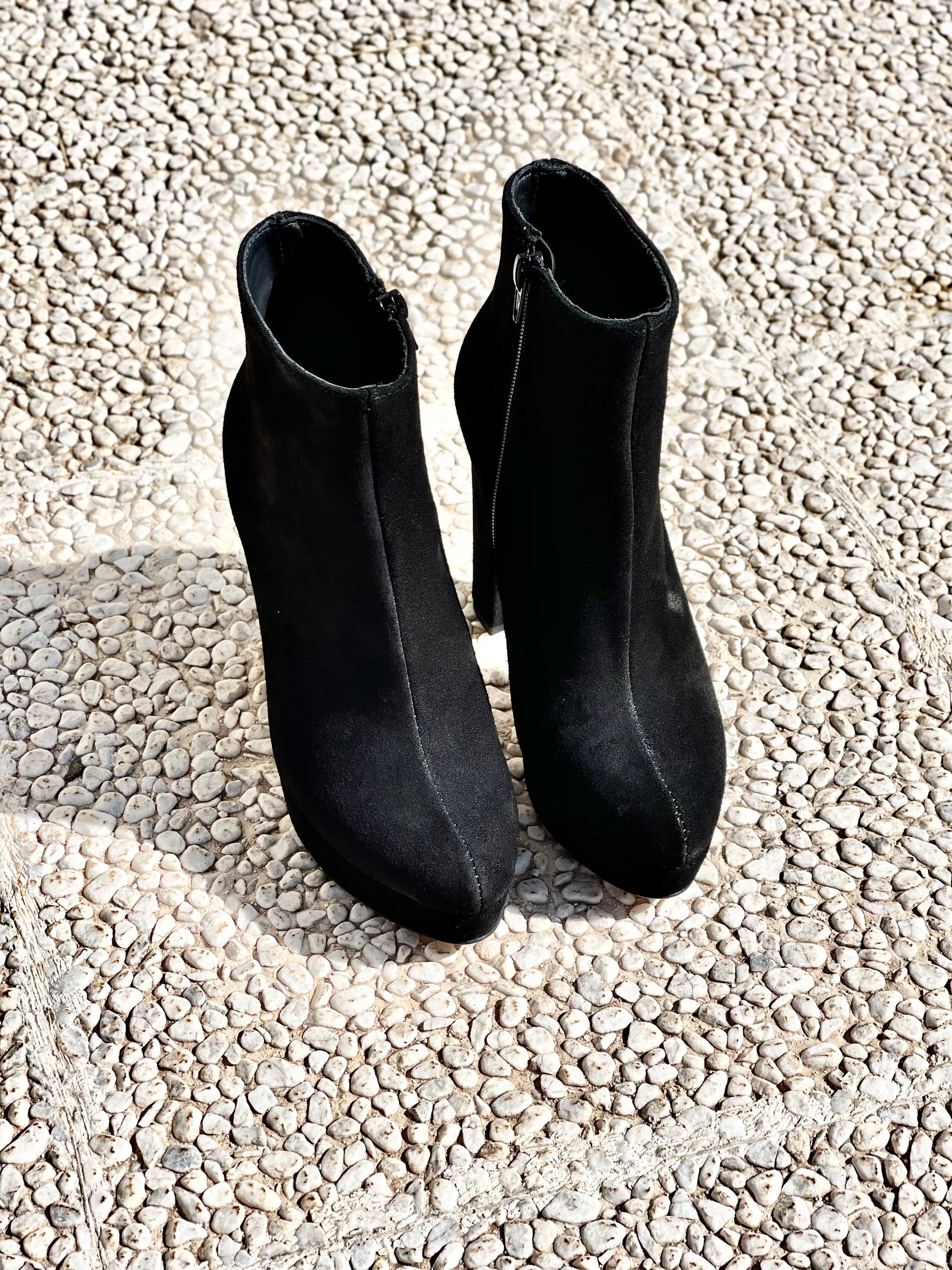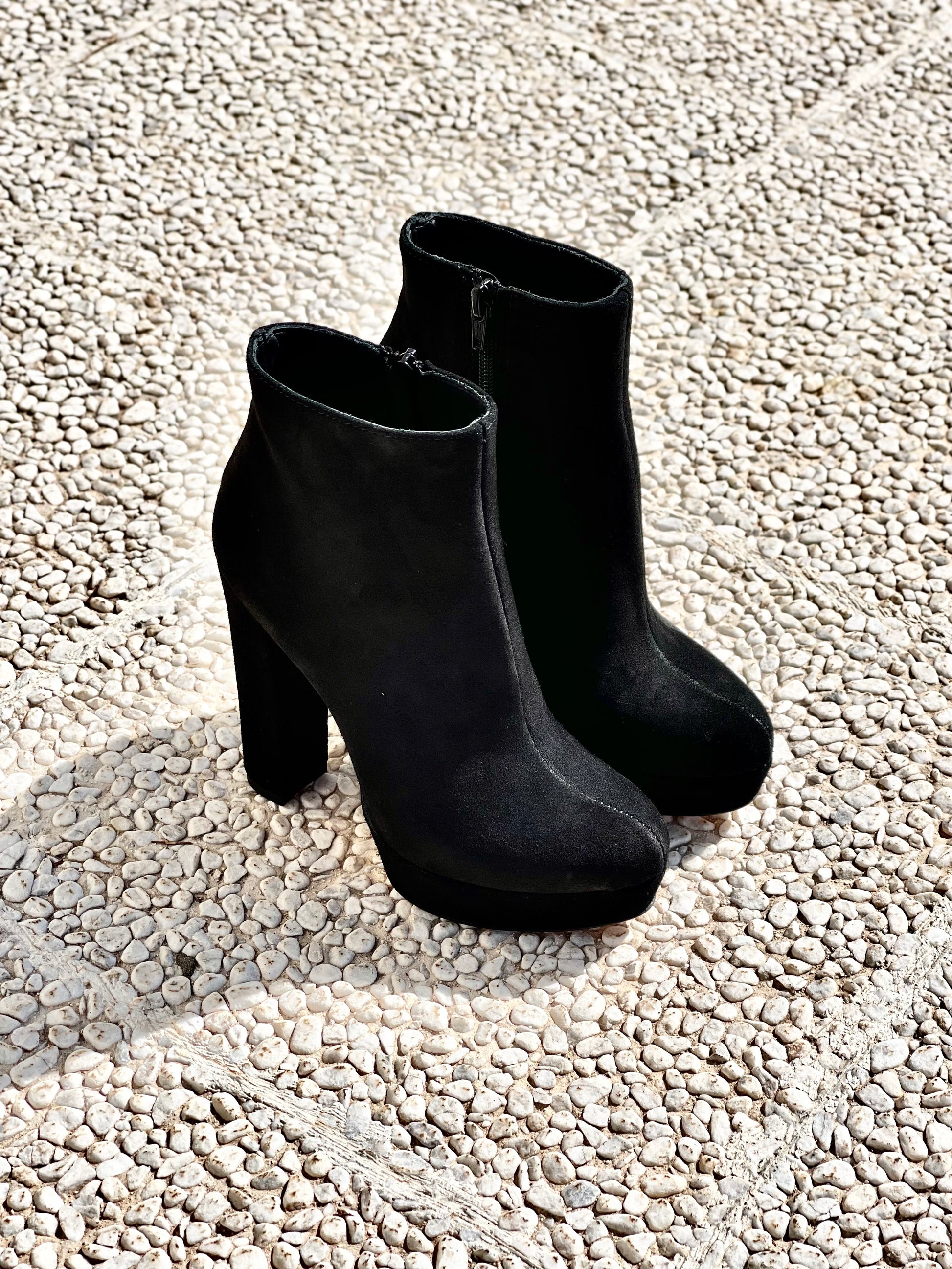 Μποτάκι από καμηλό δέρμα με τακούνι 12 εκ. και πλατφόρμα 2 εκ. με εσωτερικό φερμουάρ.