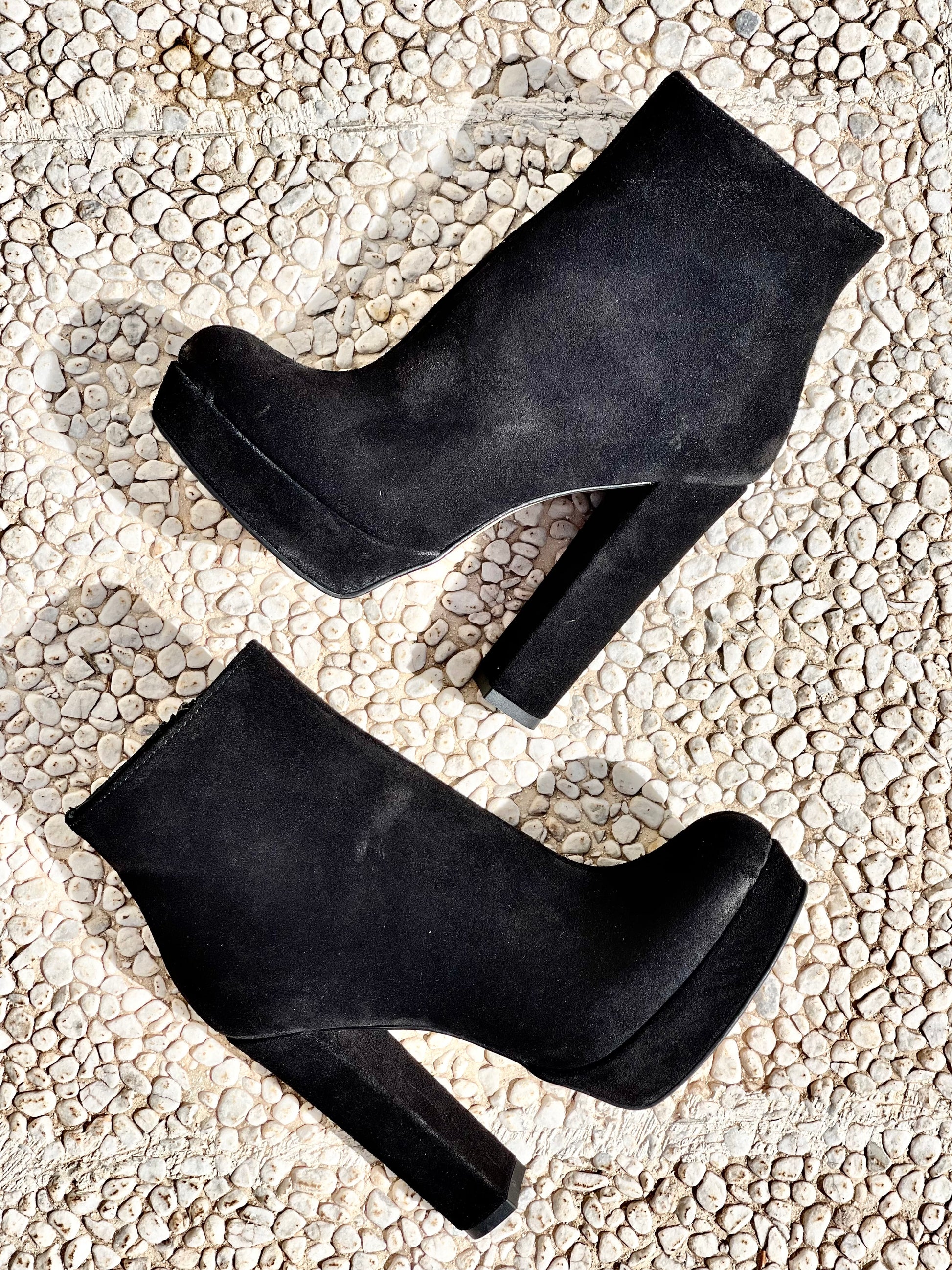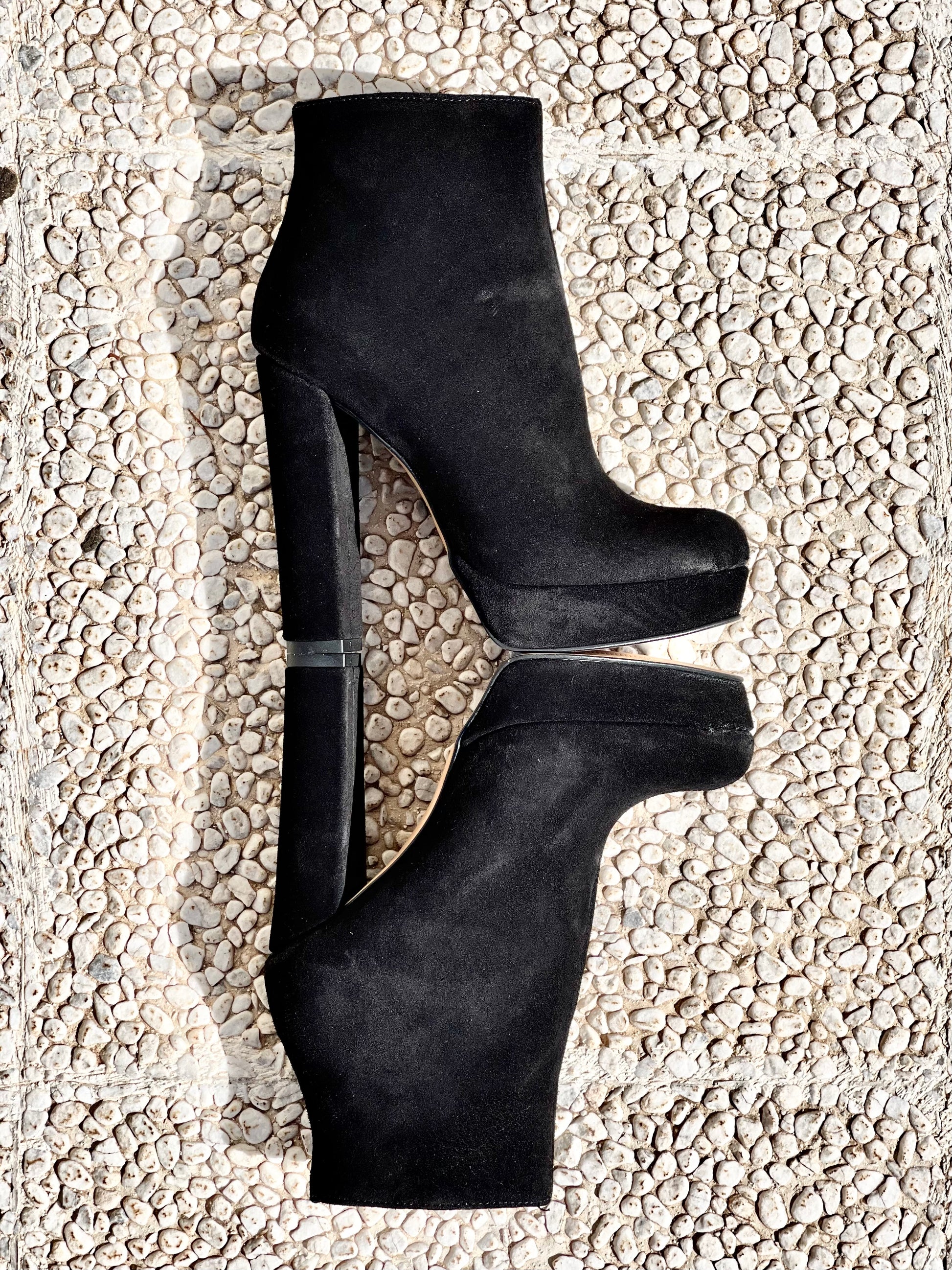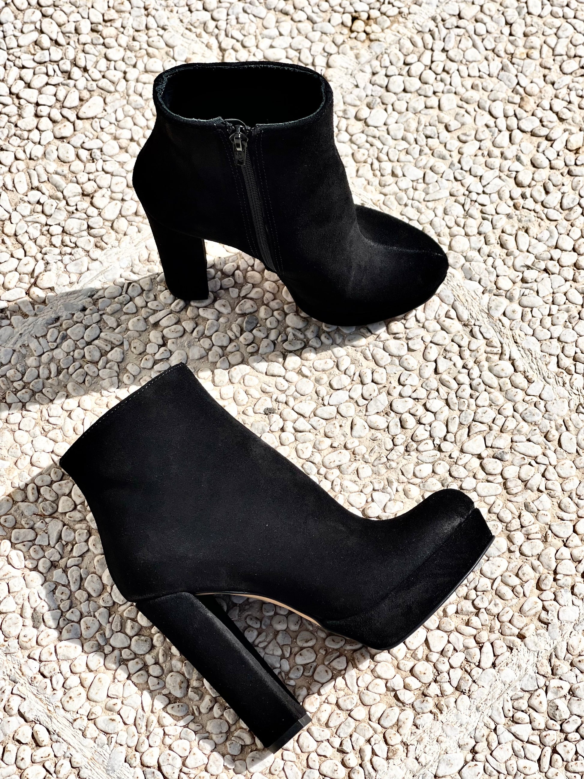 Μποτάκι από καμηλό δέρμα με τακούνι 12 εκ. και πλατφόρμα 2 εκ. με εσωτερικό φερμουάρ.