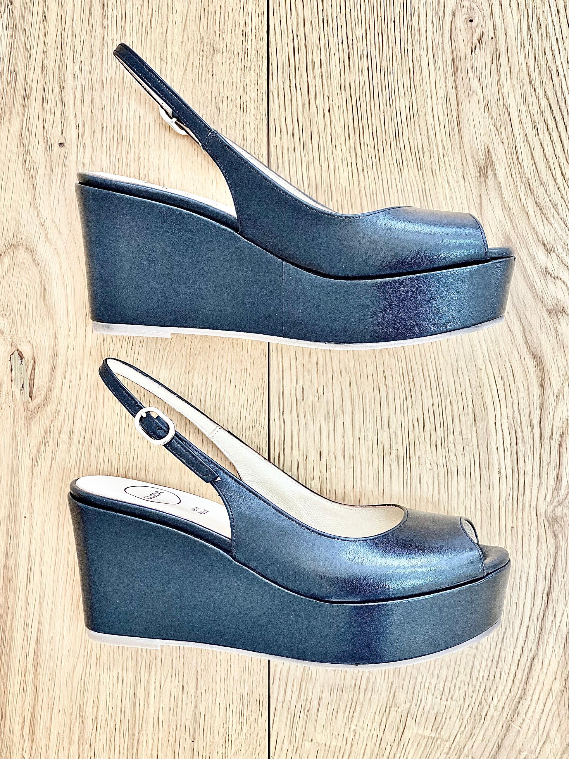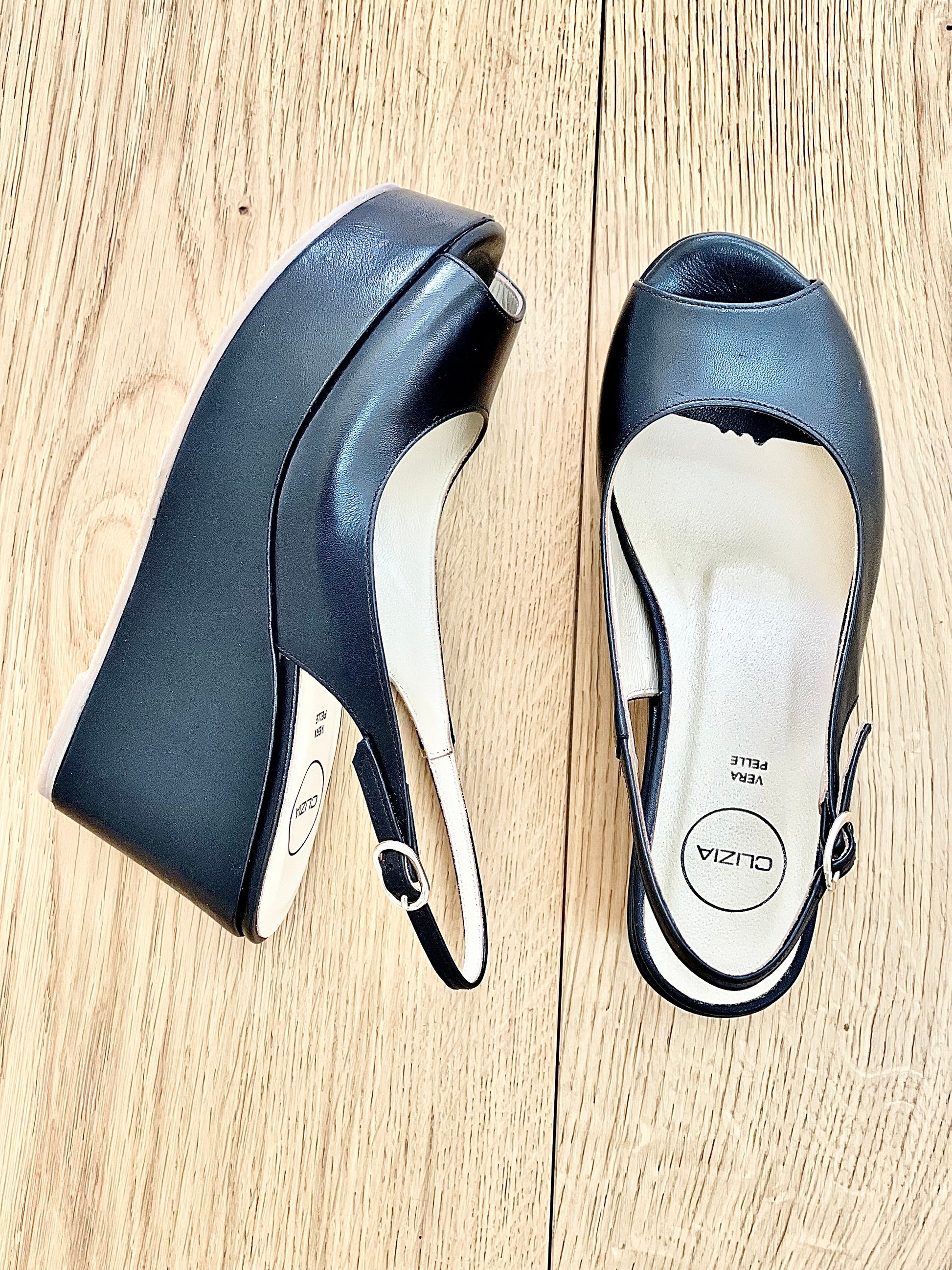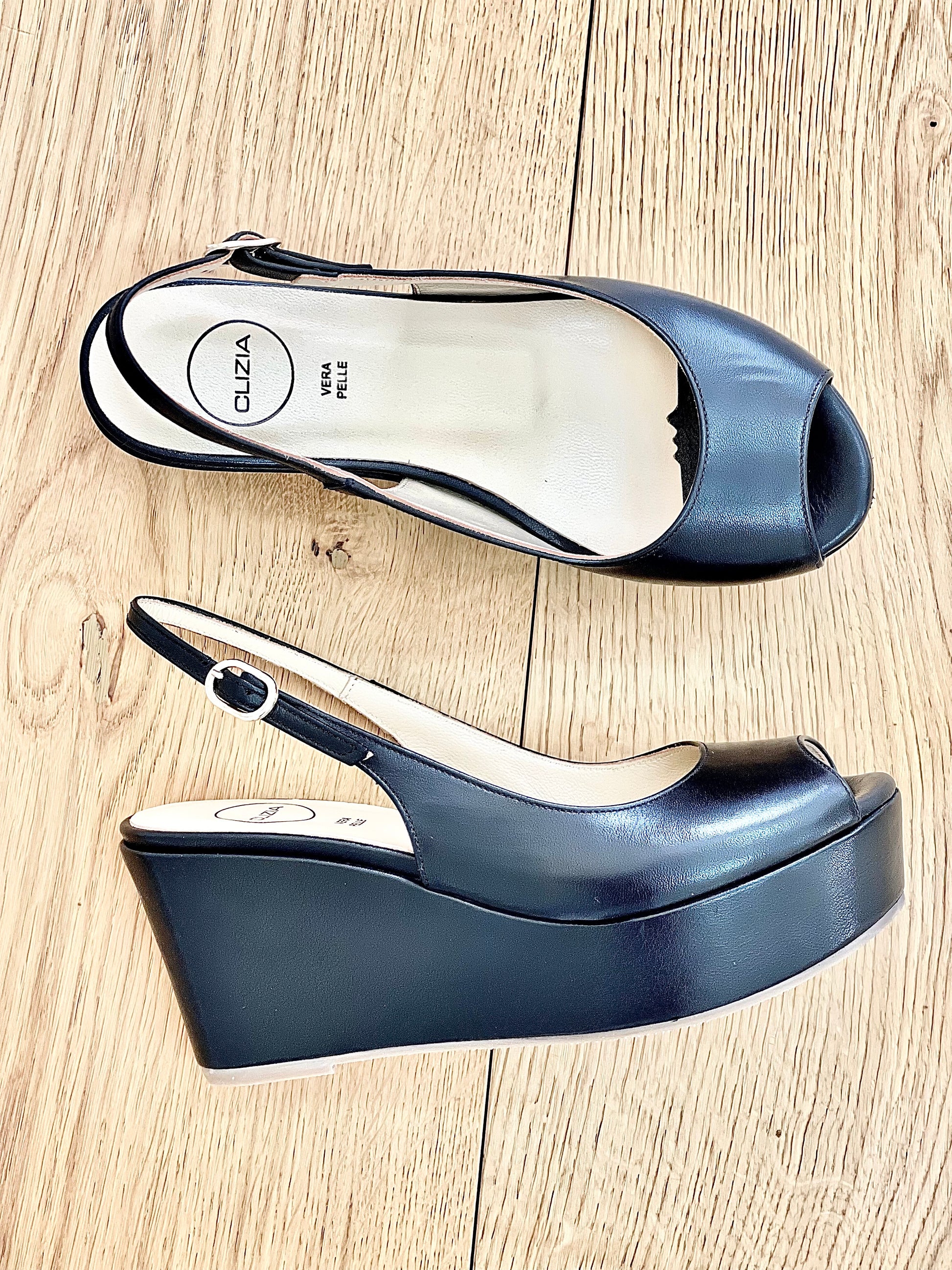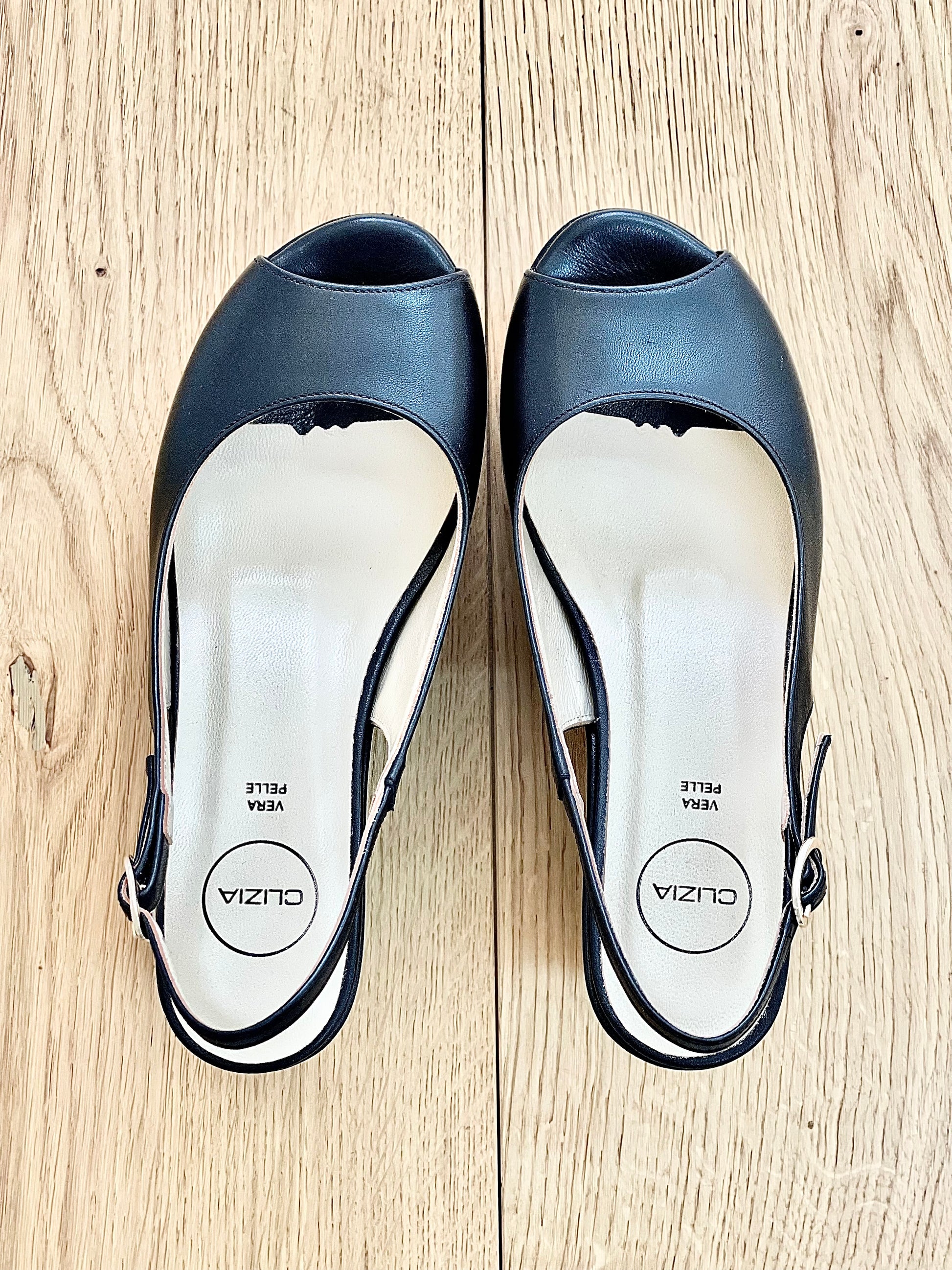 Ανοιχτά γόβα slingback από δέρμα με μεσαίο τακούνι.