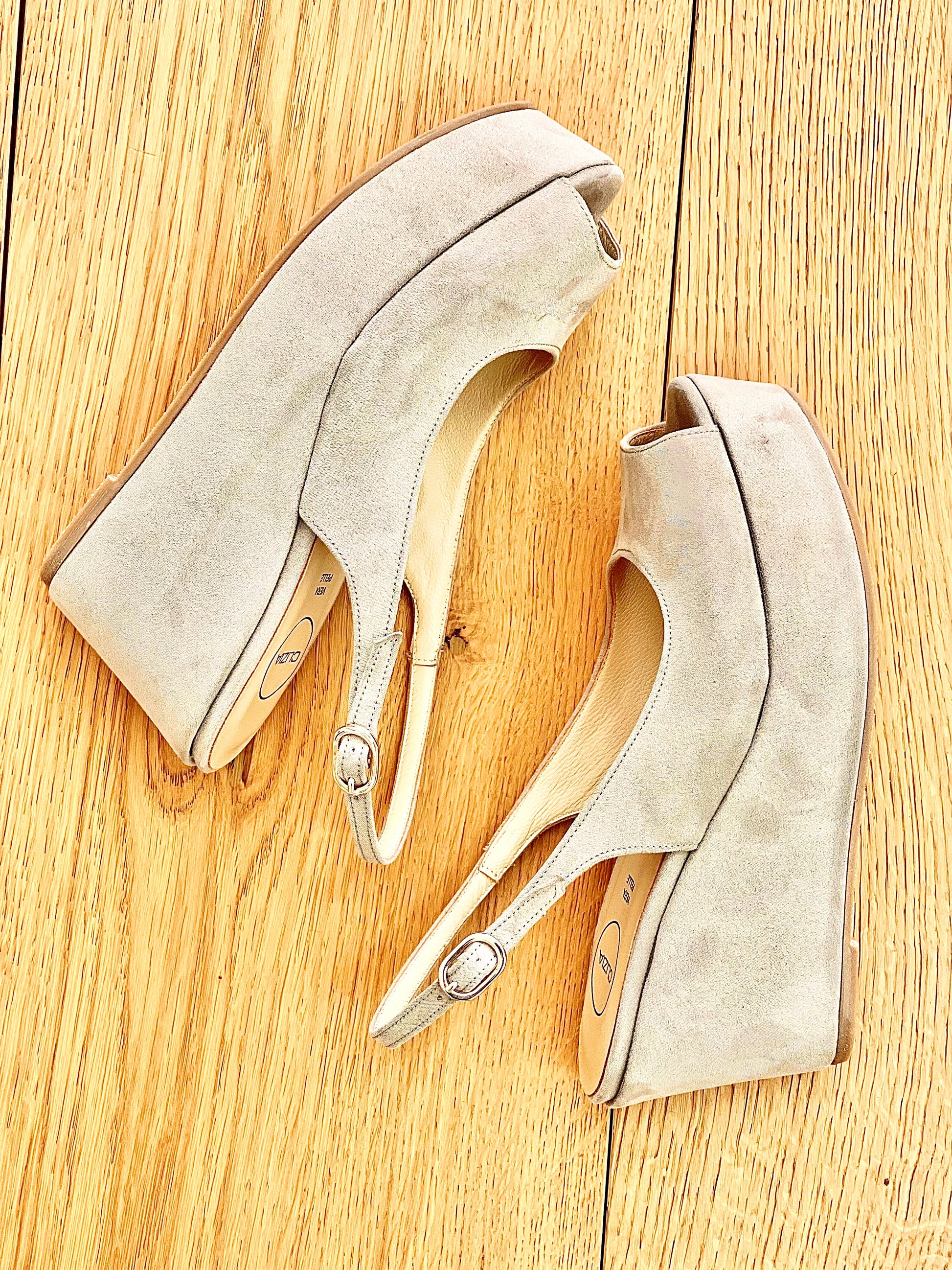 Ανοιχτά γόβα slingback από σουέτ με μεσαίο τακούνι.