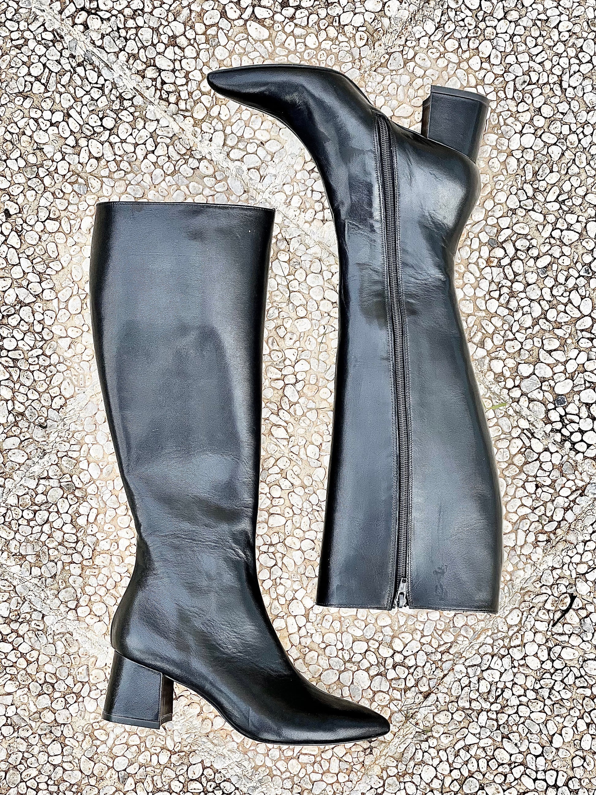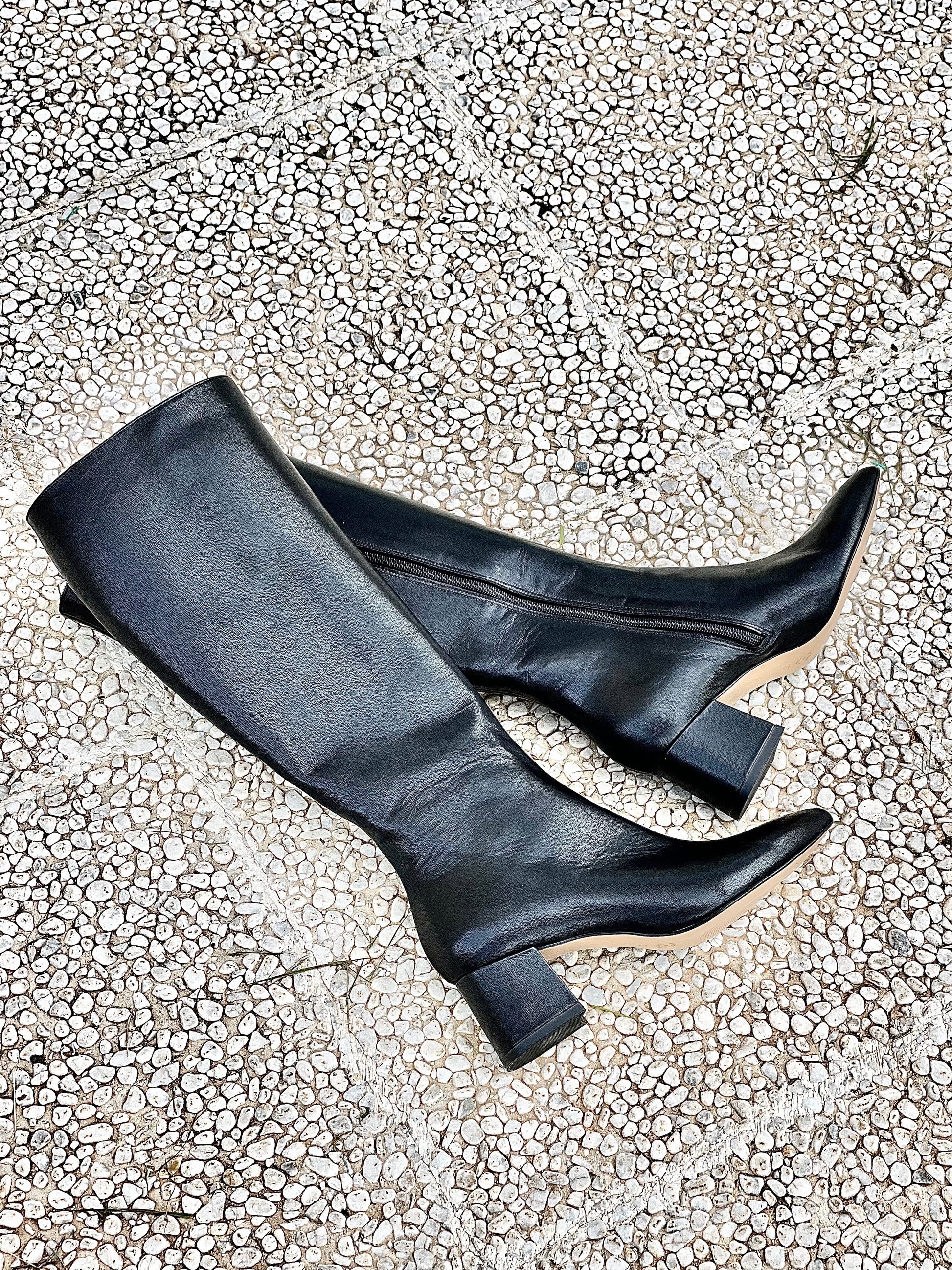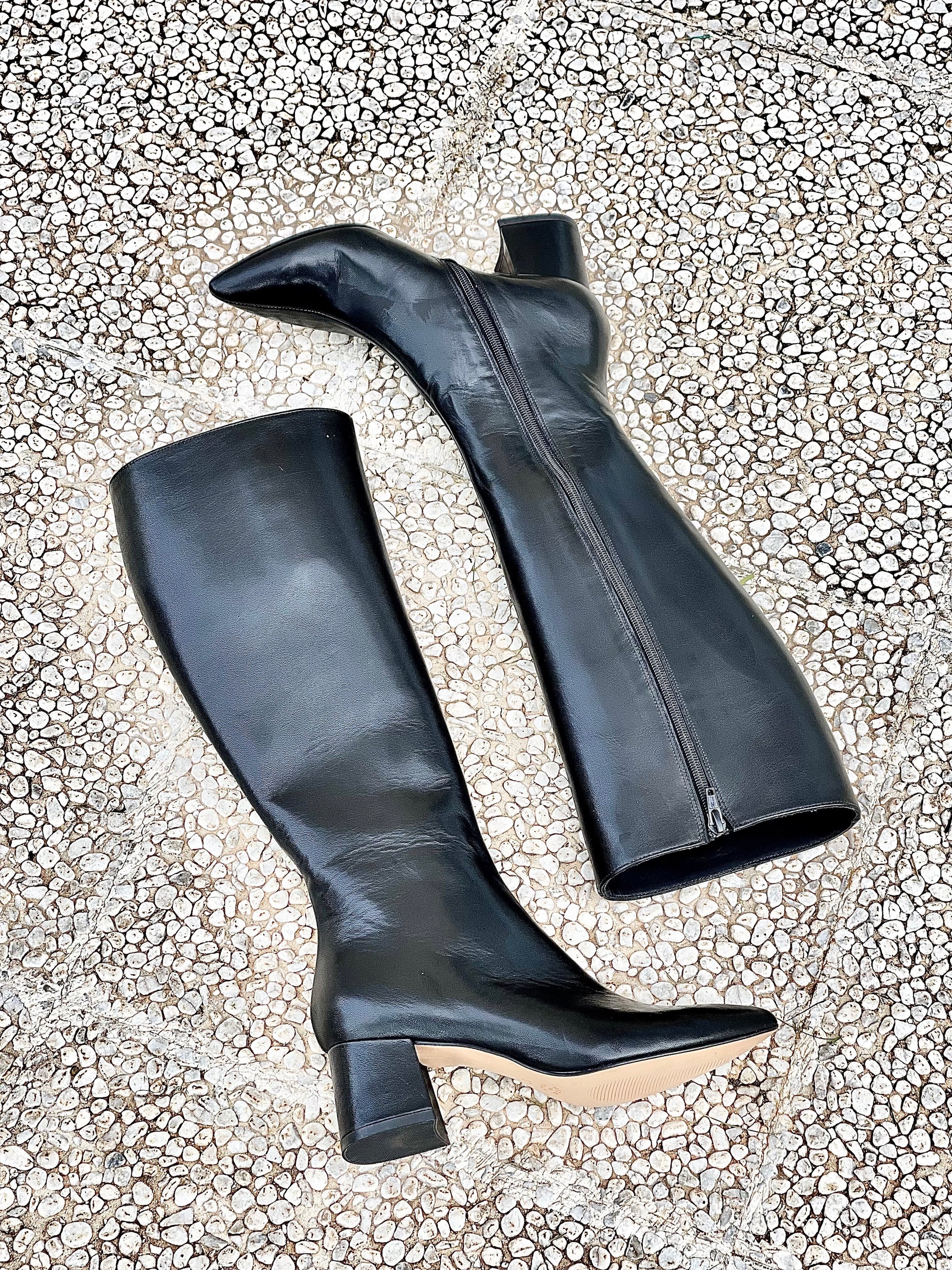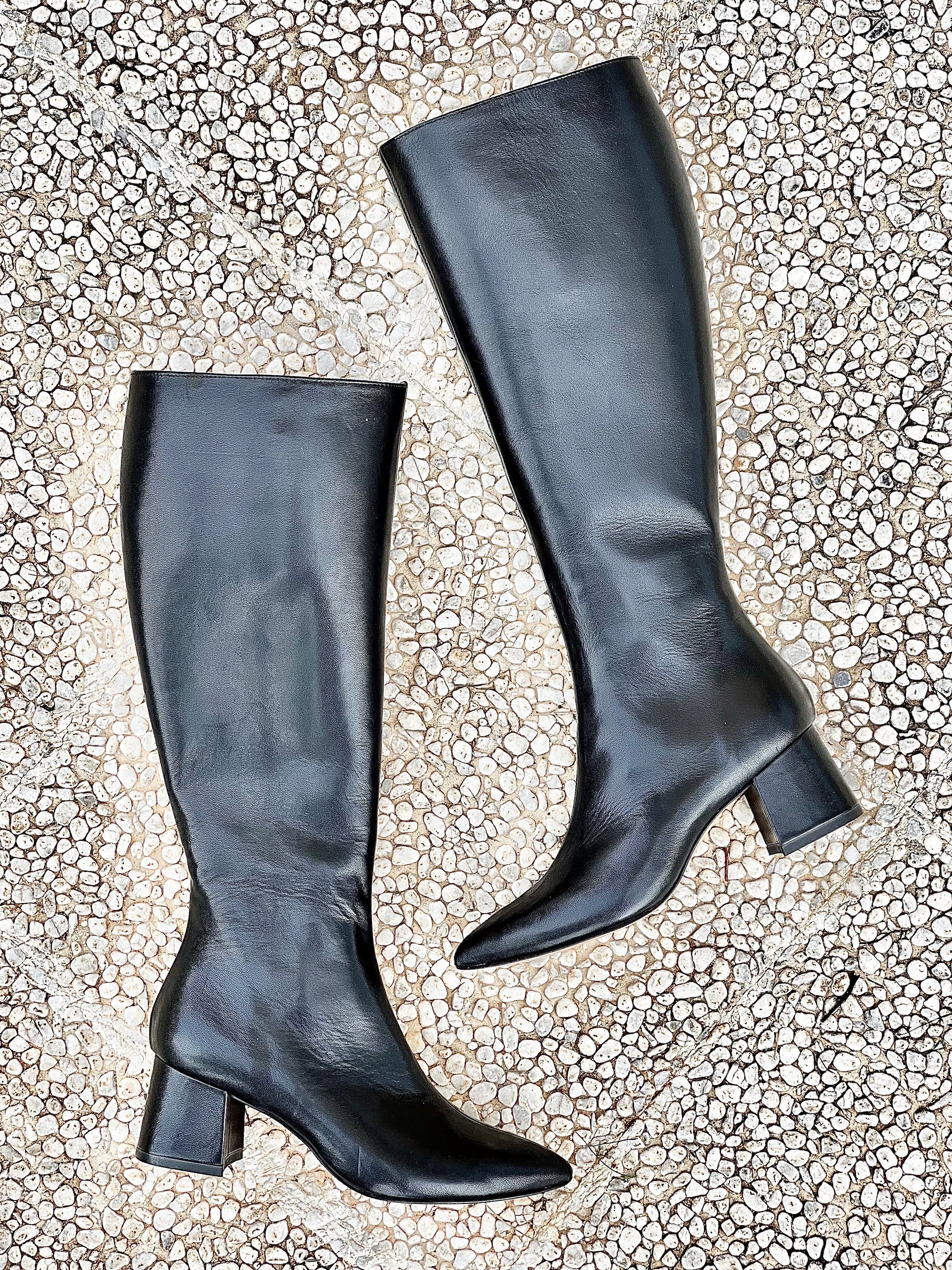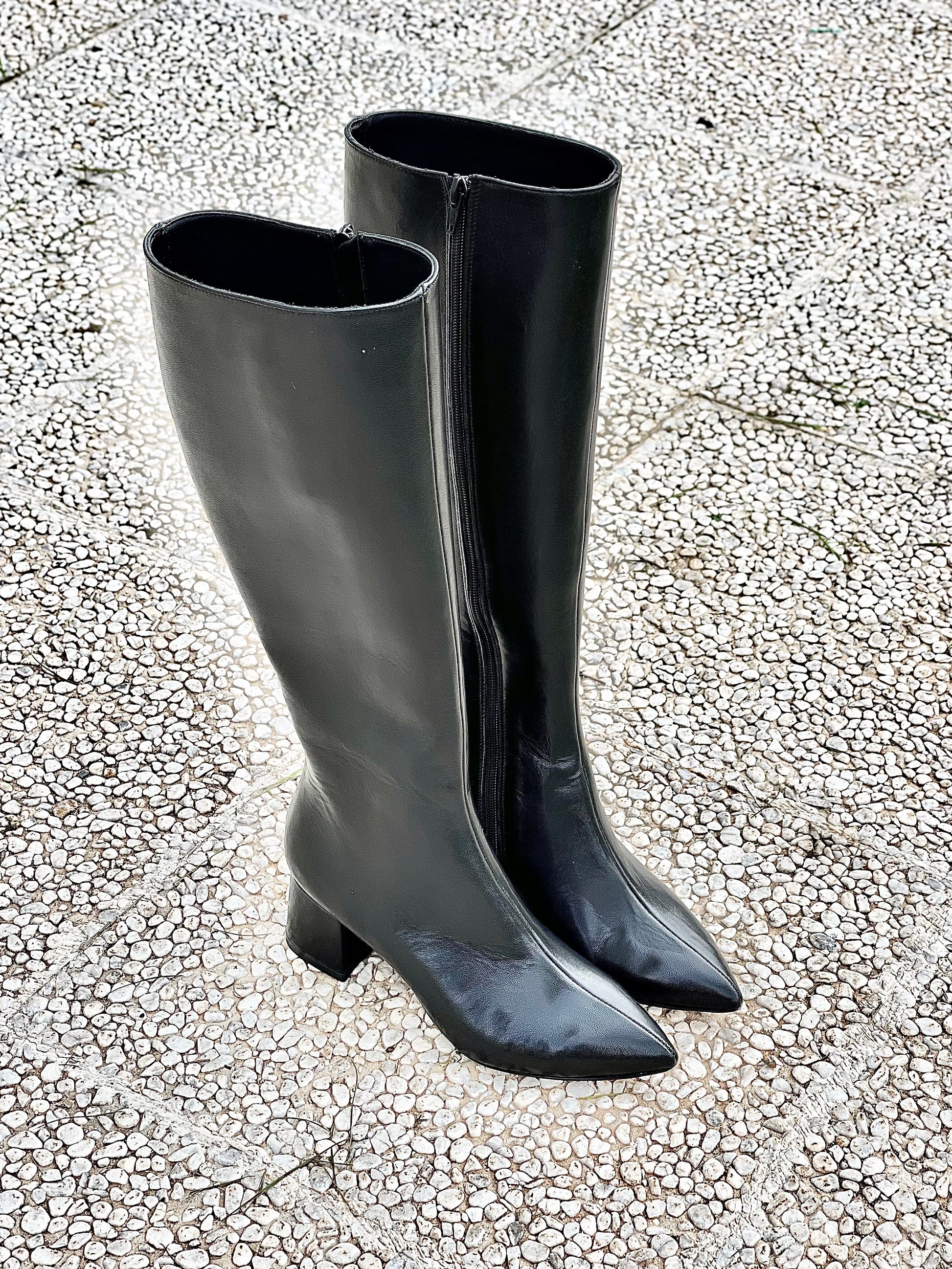 Μπότες με μυτερή μύτη από δέρμα και φαρδύ τακούνι 55 mm.