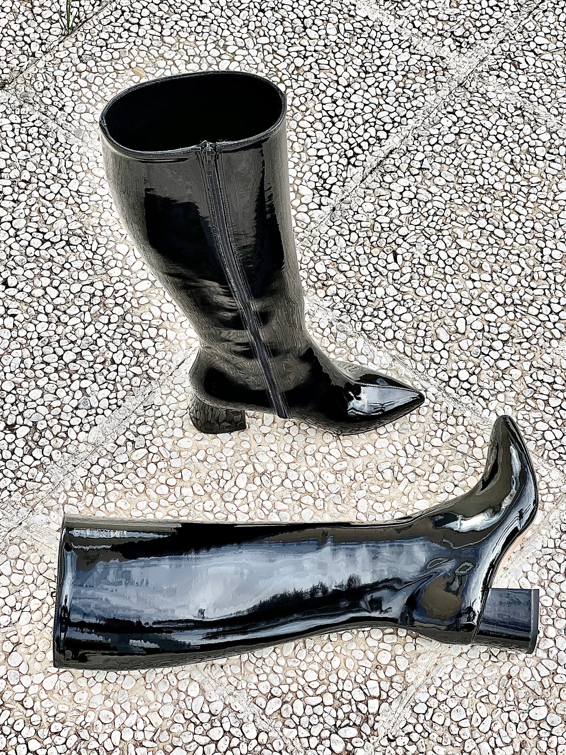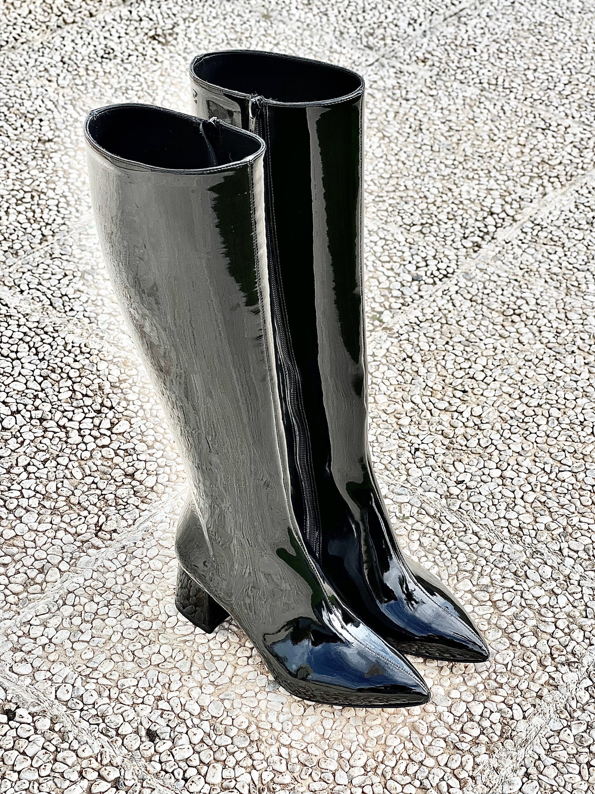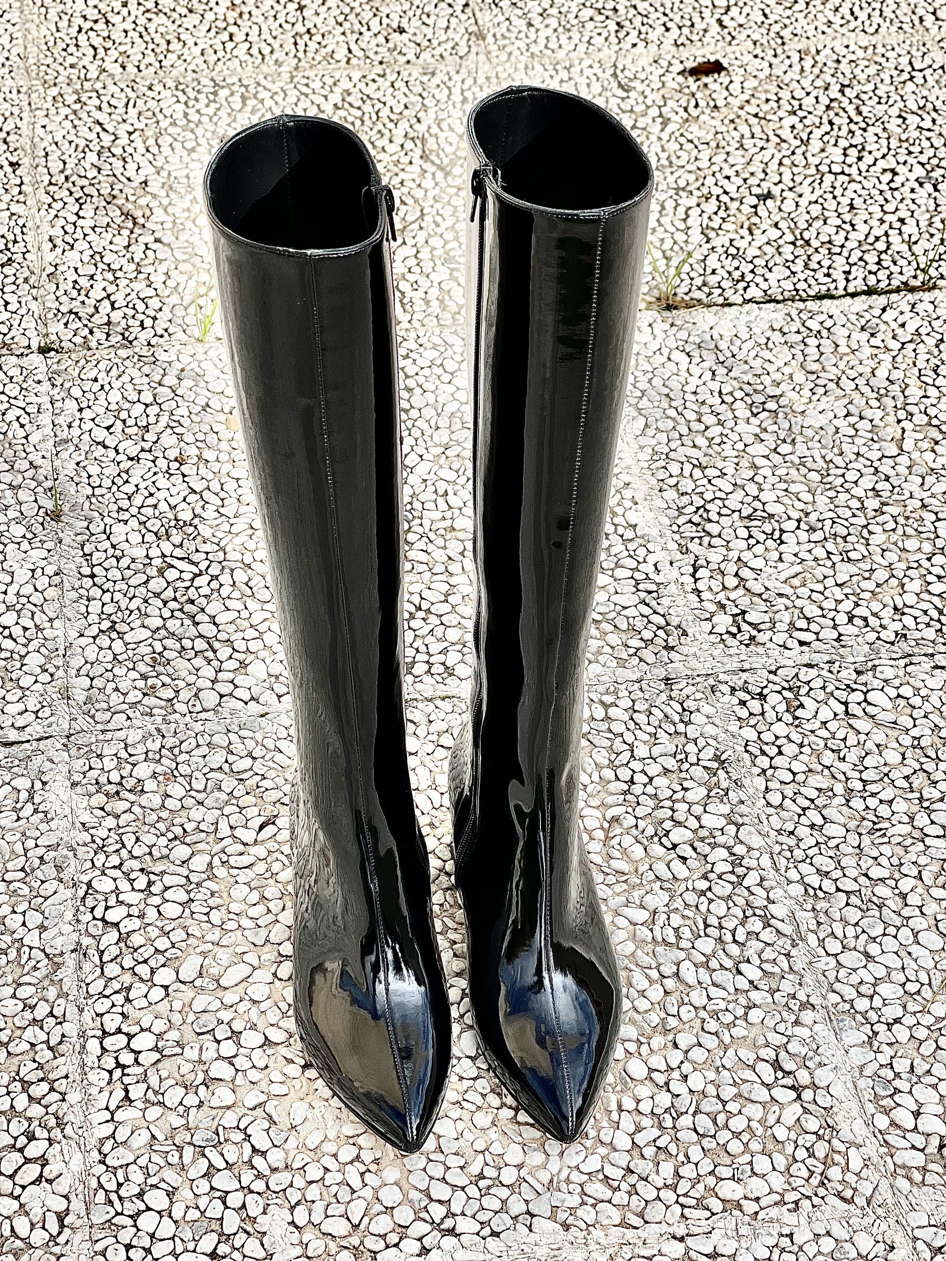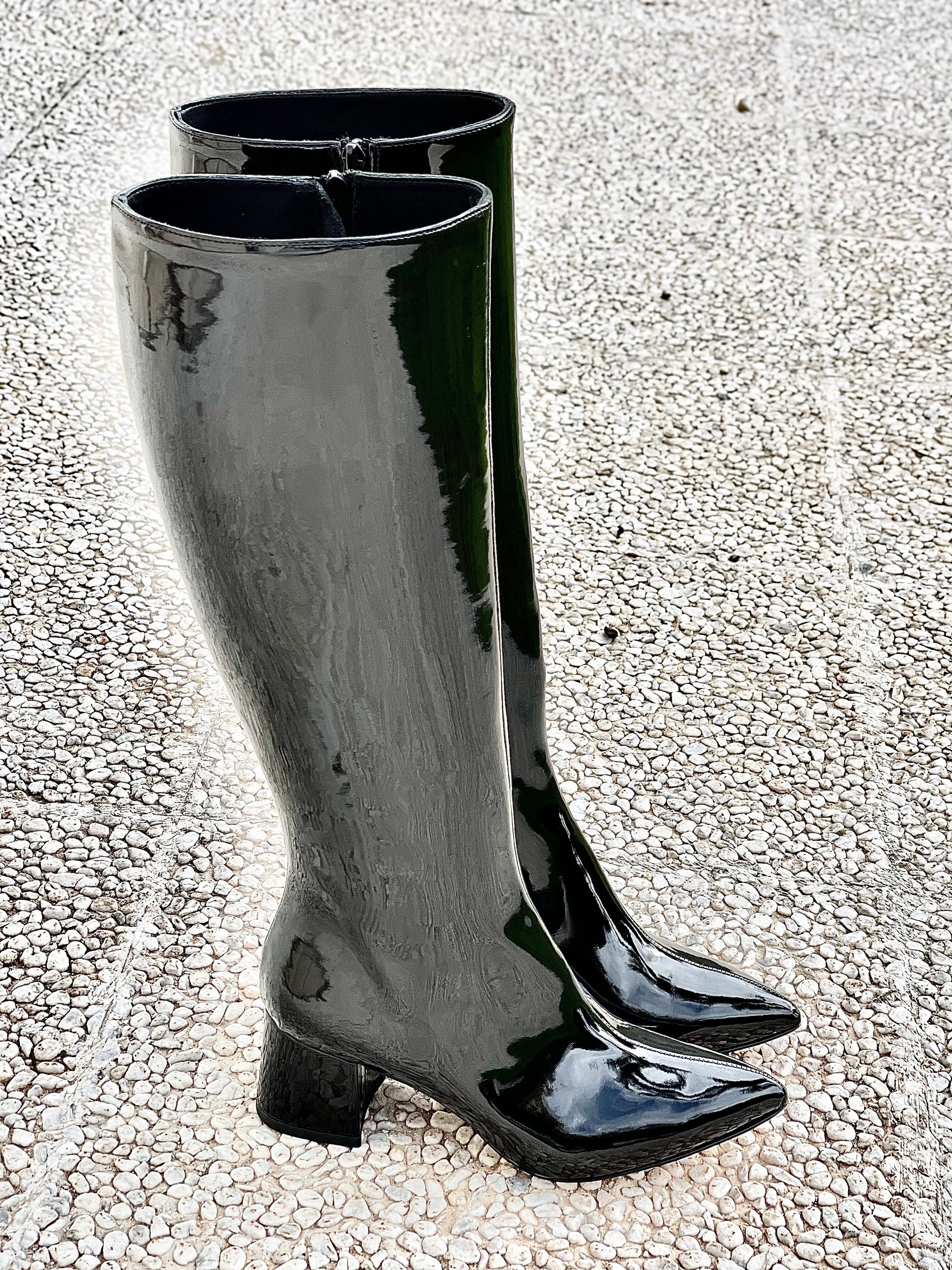 Μπότες με μυτερή μύτη από βερνίκι, φαρδύ τακούνι 55 mm.