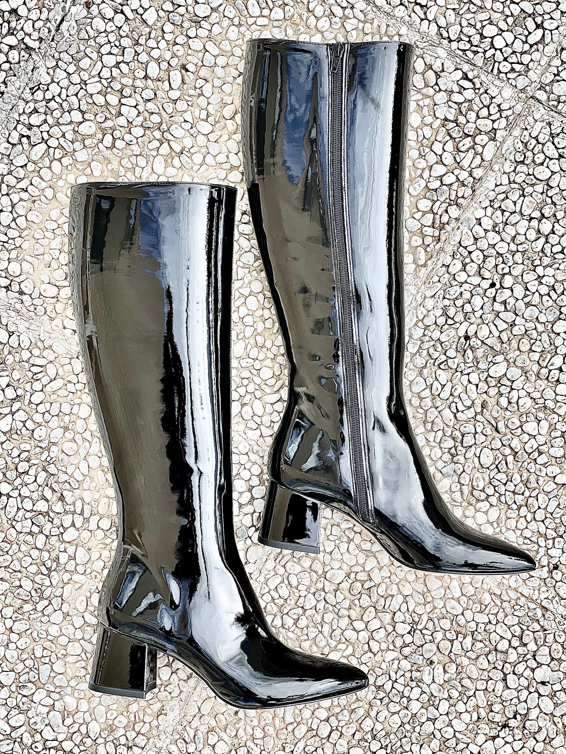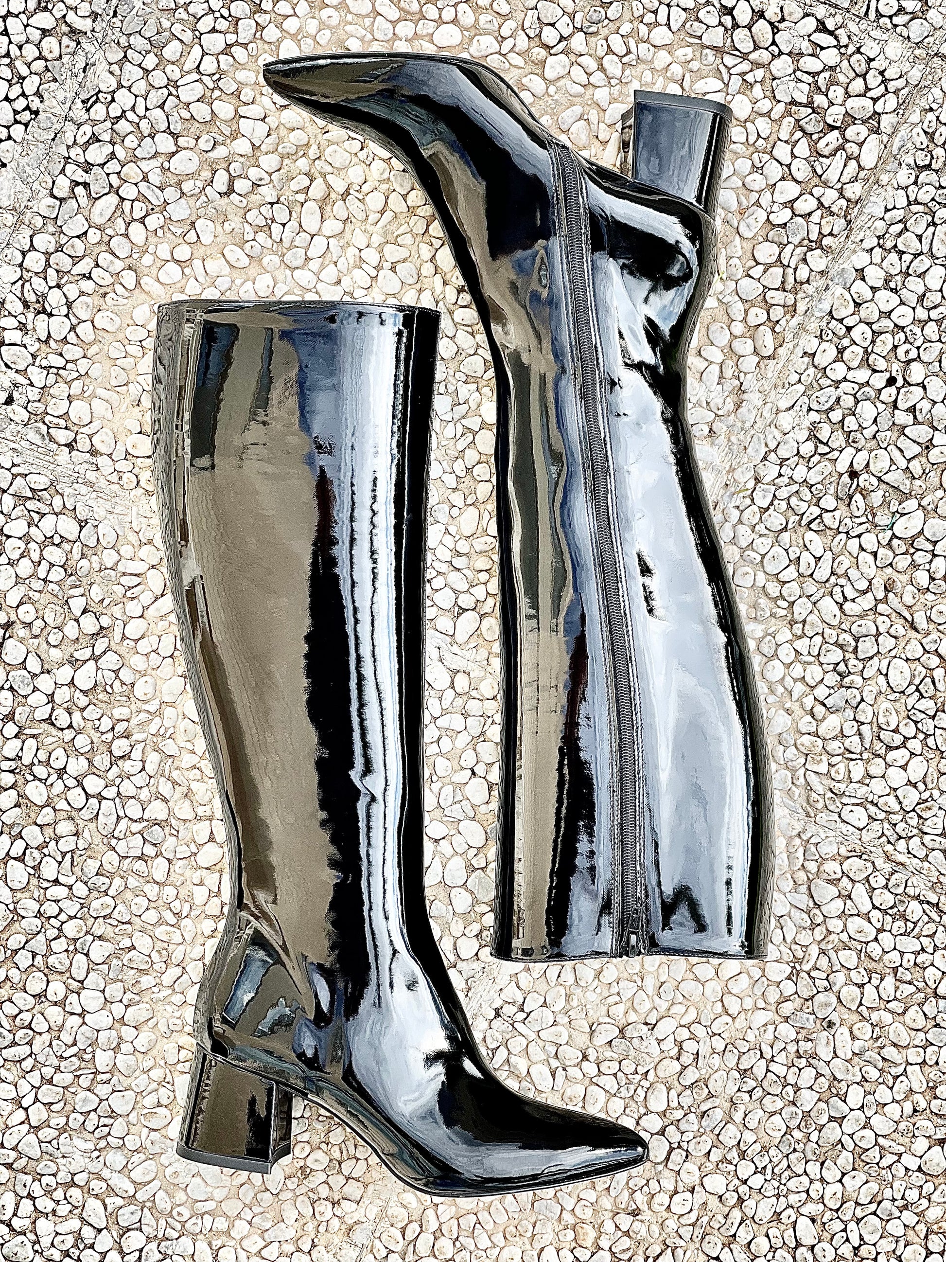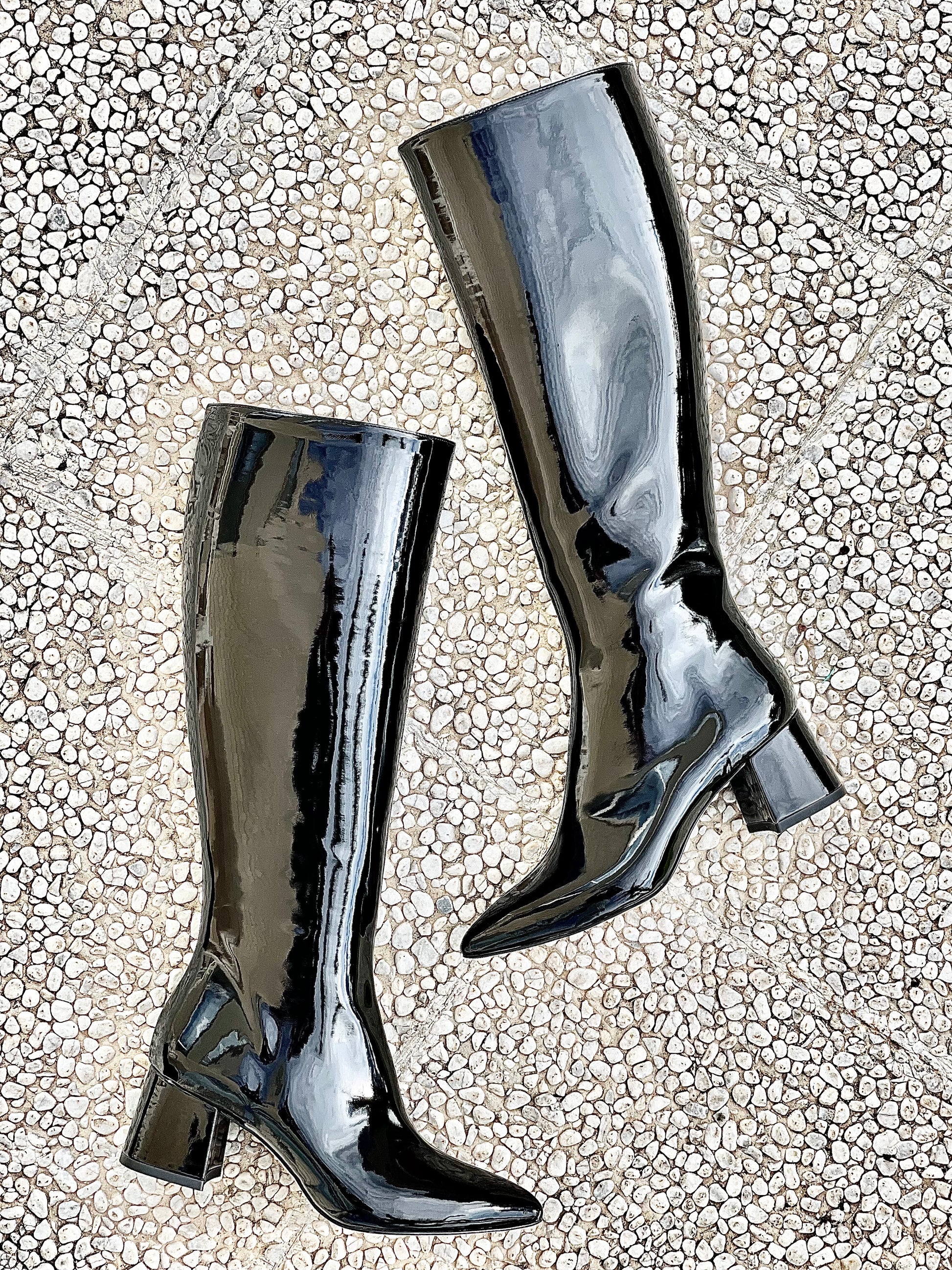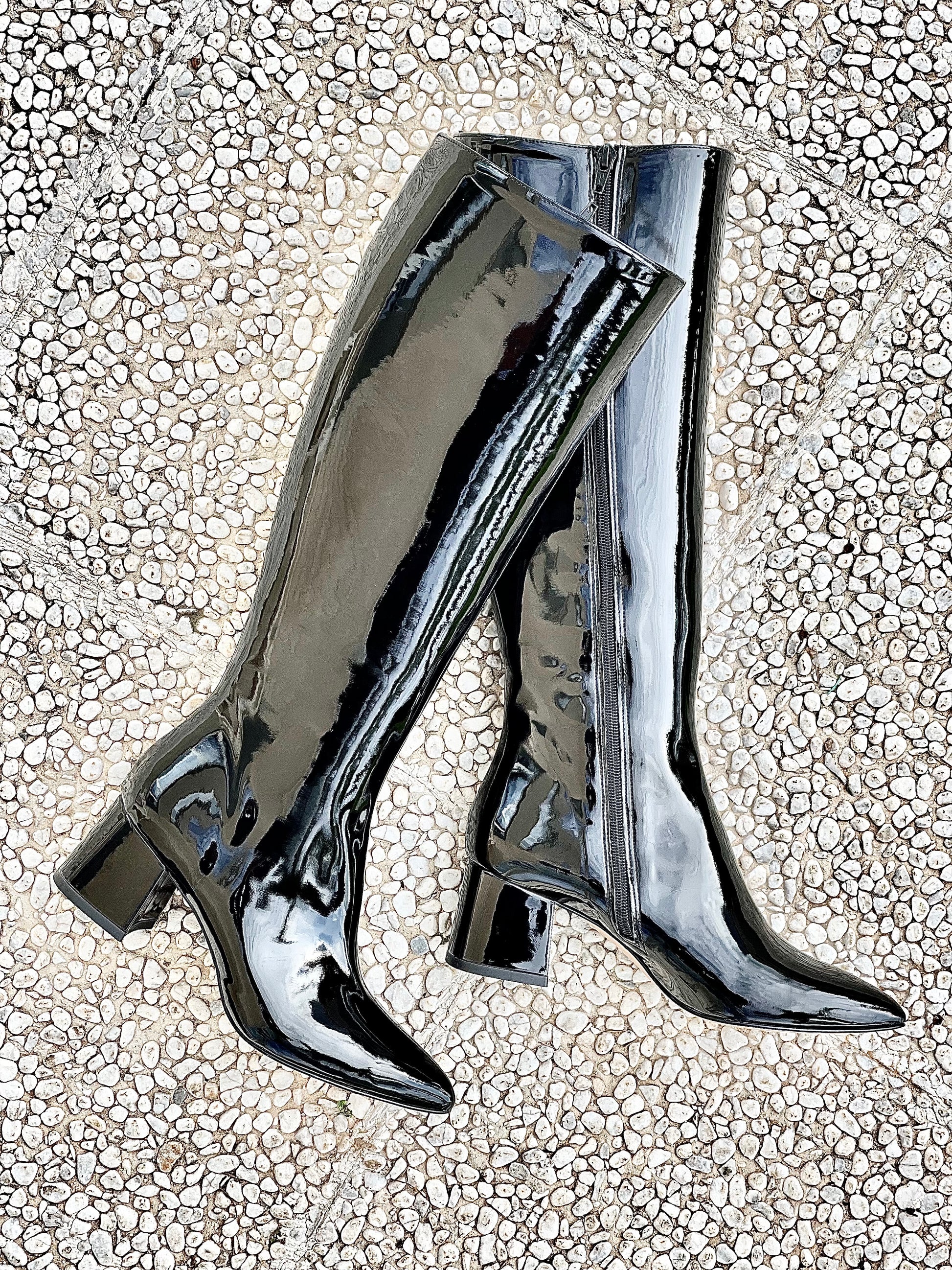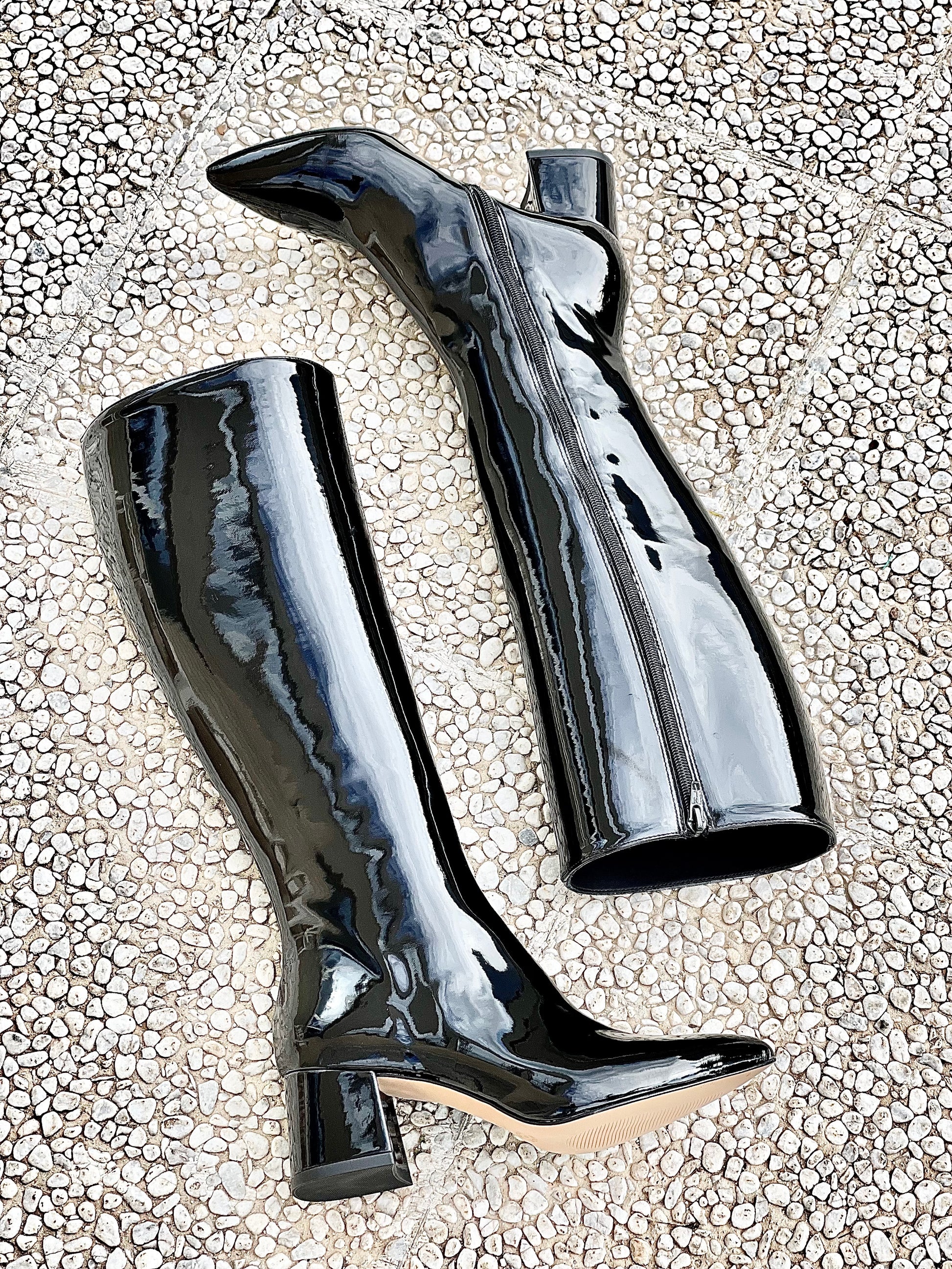 Μπότες με μυτερή μύτη από βερνίκι, φαρδύ τακούνι 55 mm.