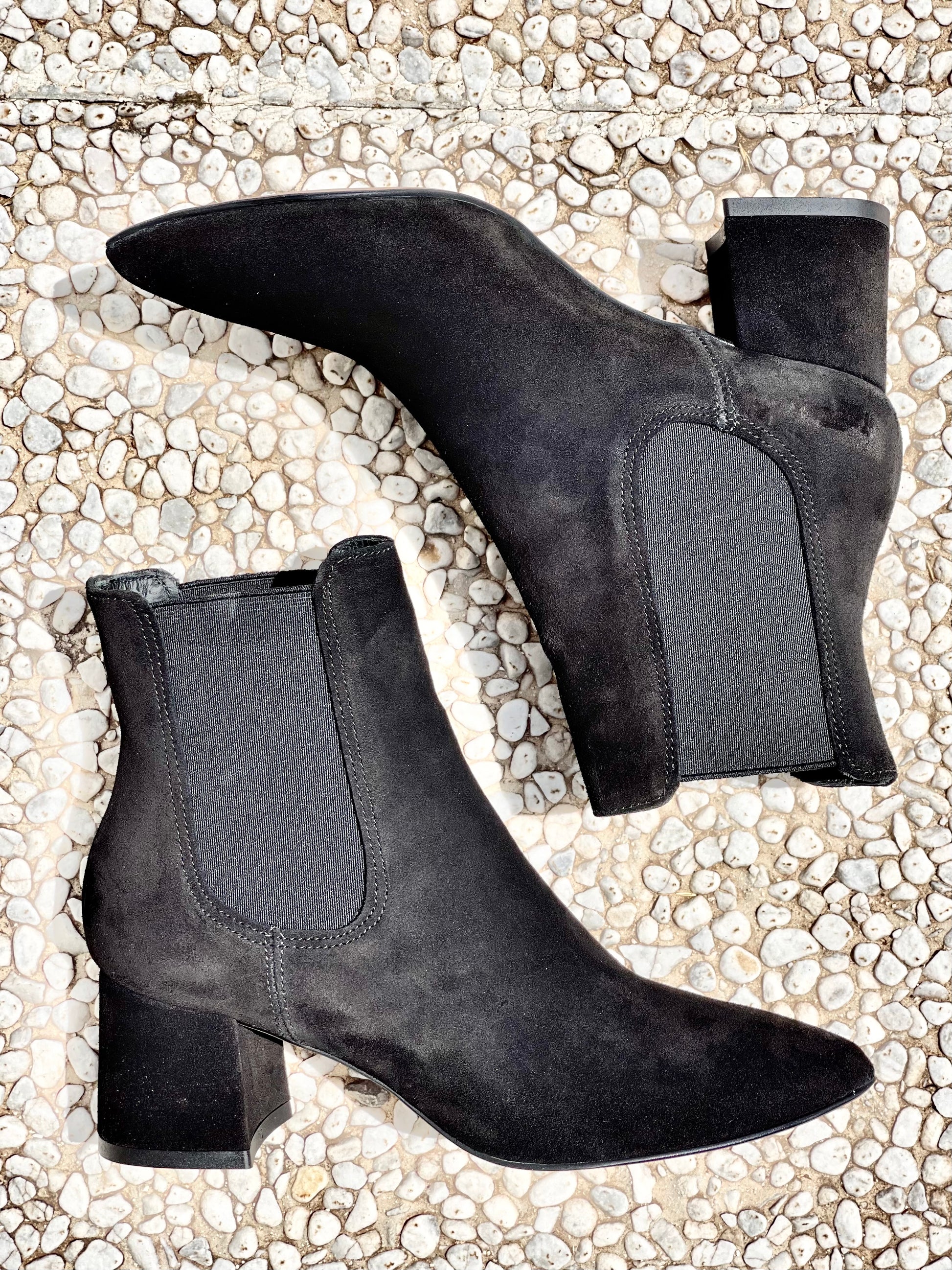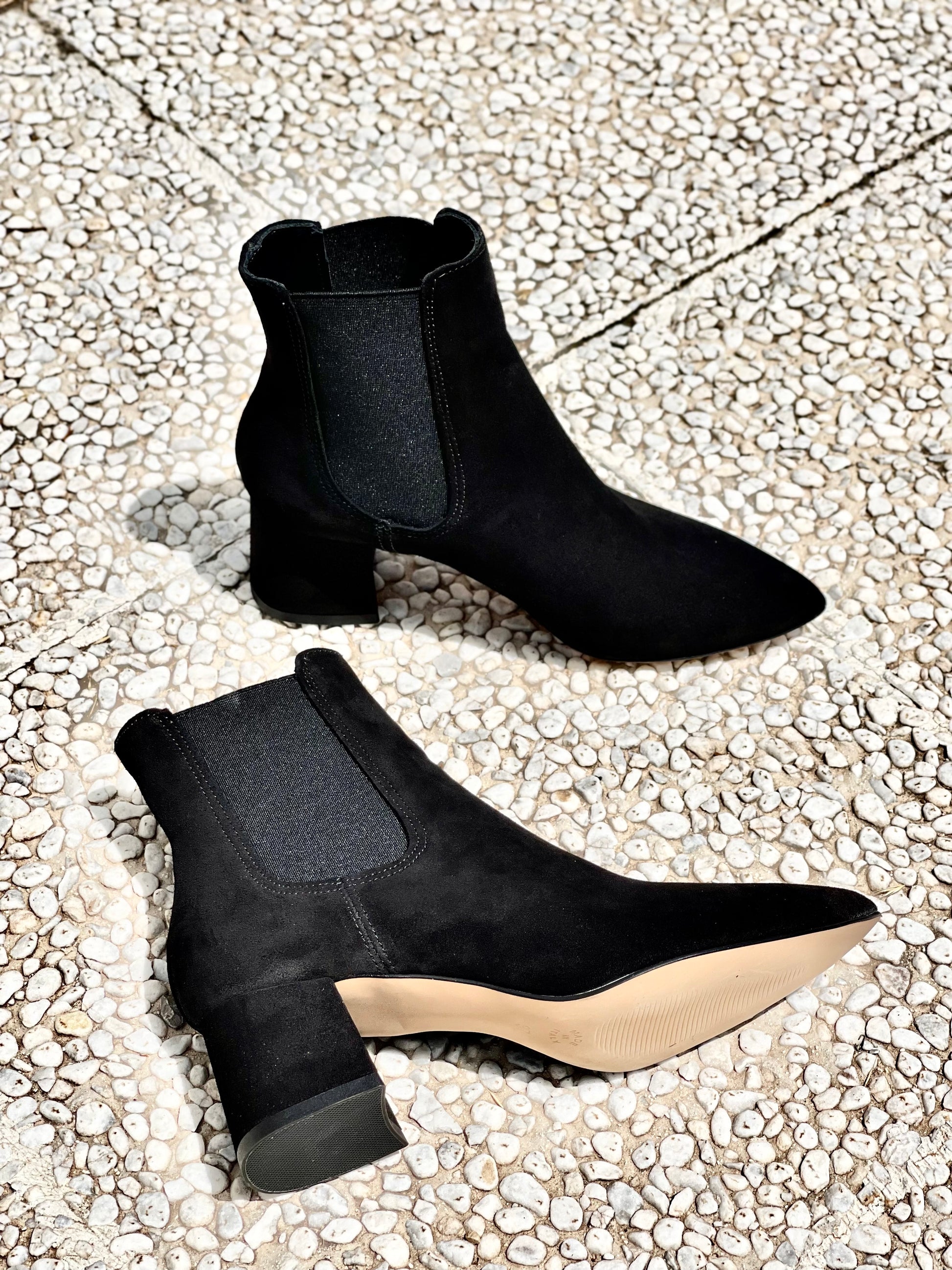 Μποτάκι Chelsea με μυτερή μύτη από σουέτ, φαρδύ τακούνι 5 cm.