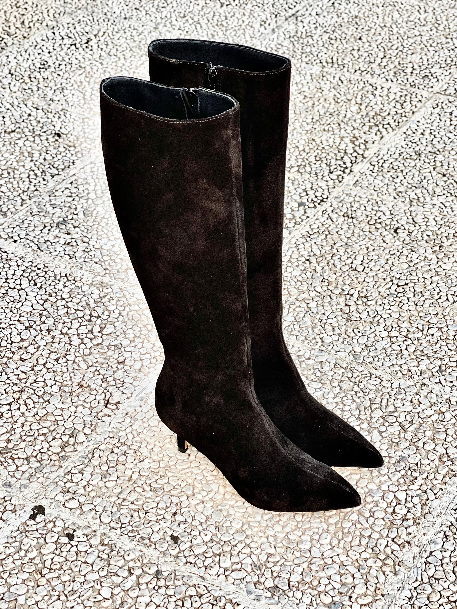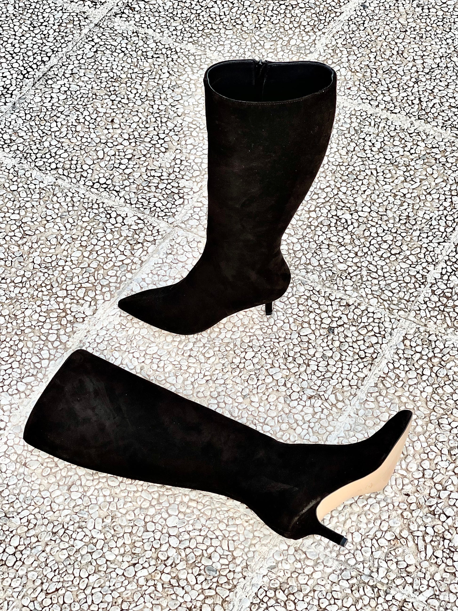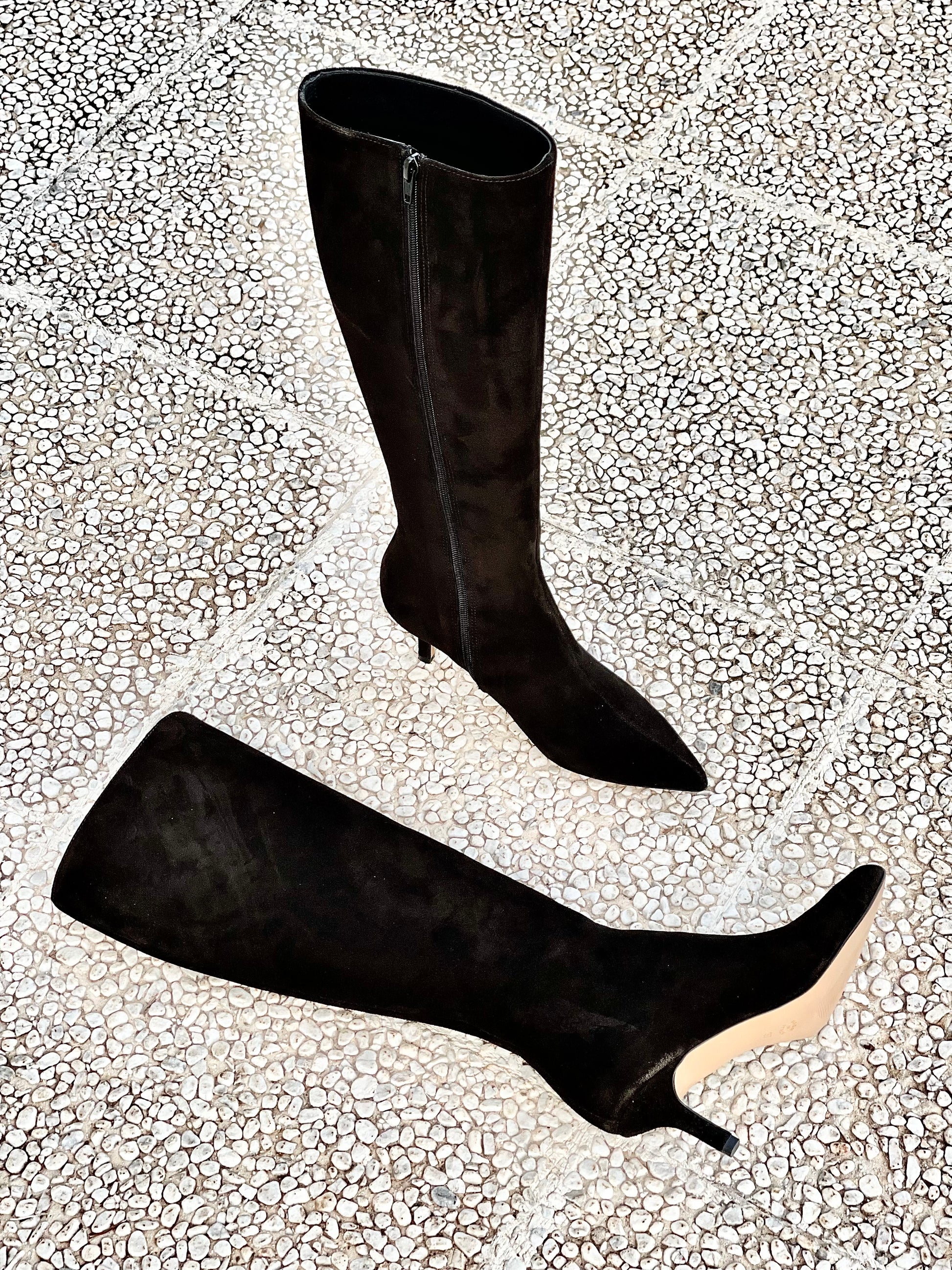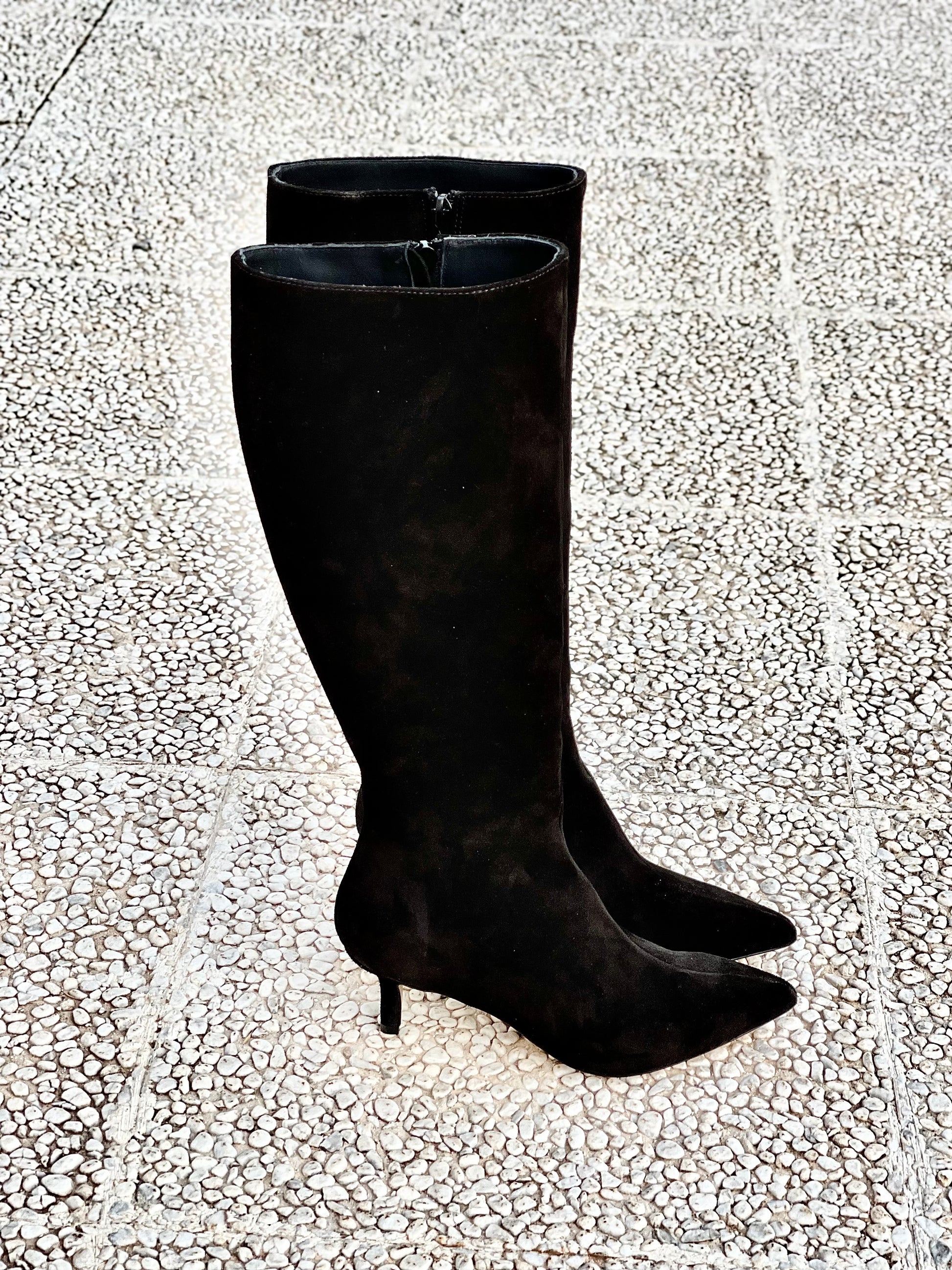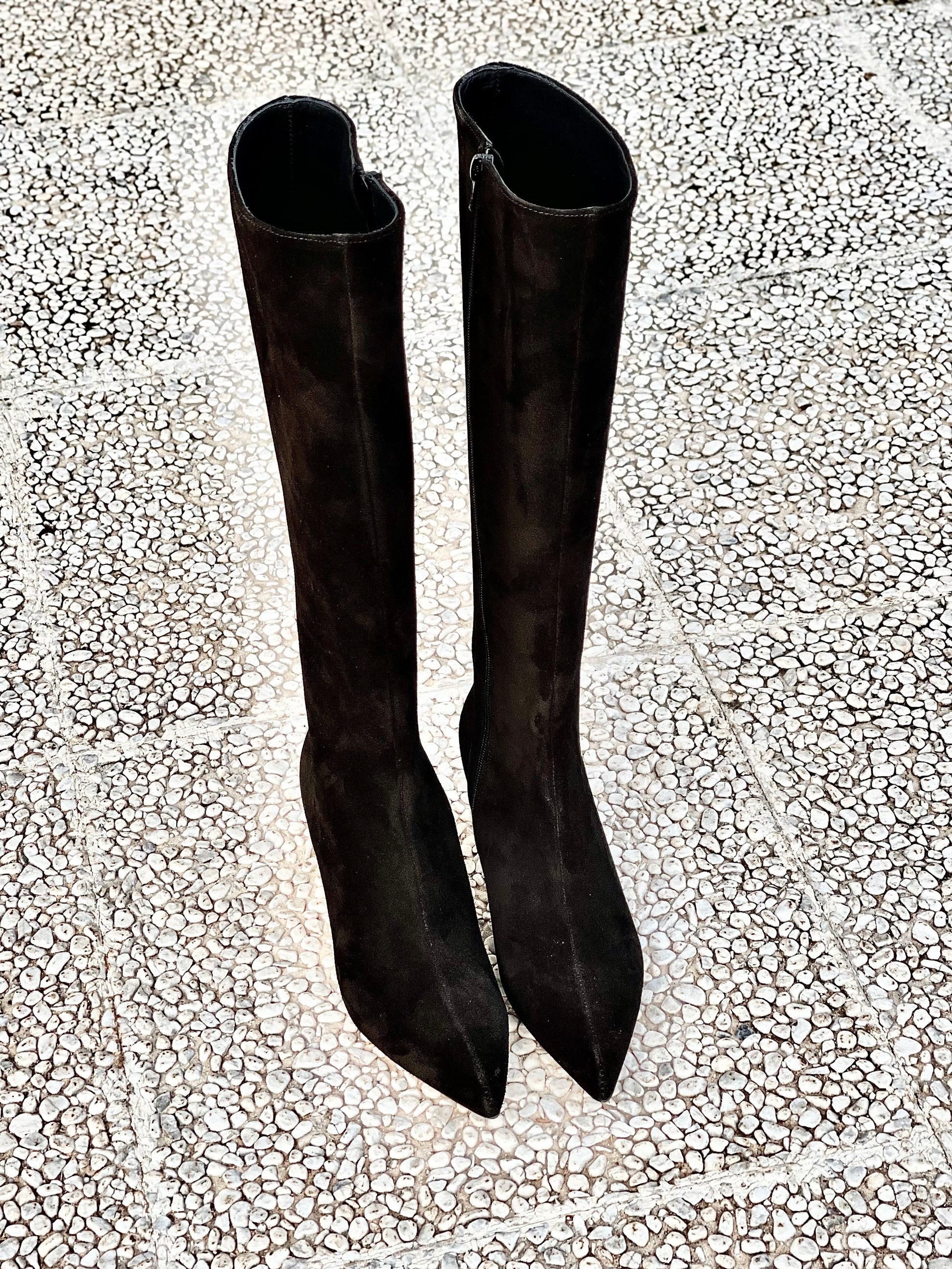 Μπότες με μυτερή μύτη από καμηλό δέρμα, τακούνι 60 mm.