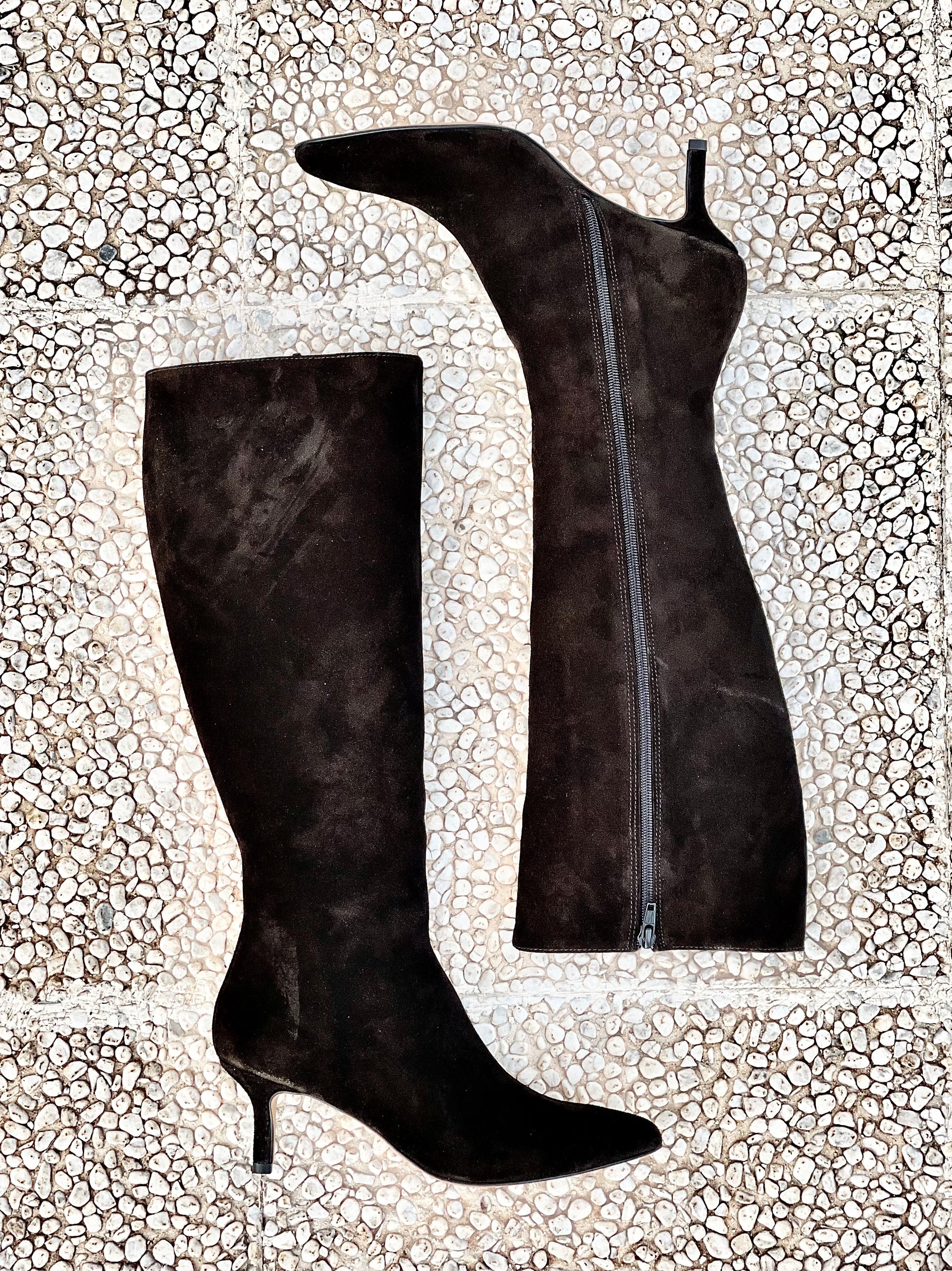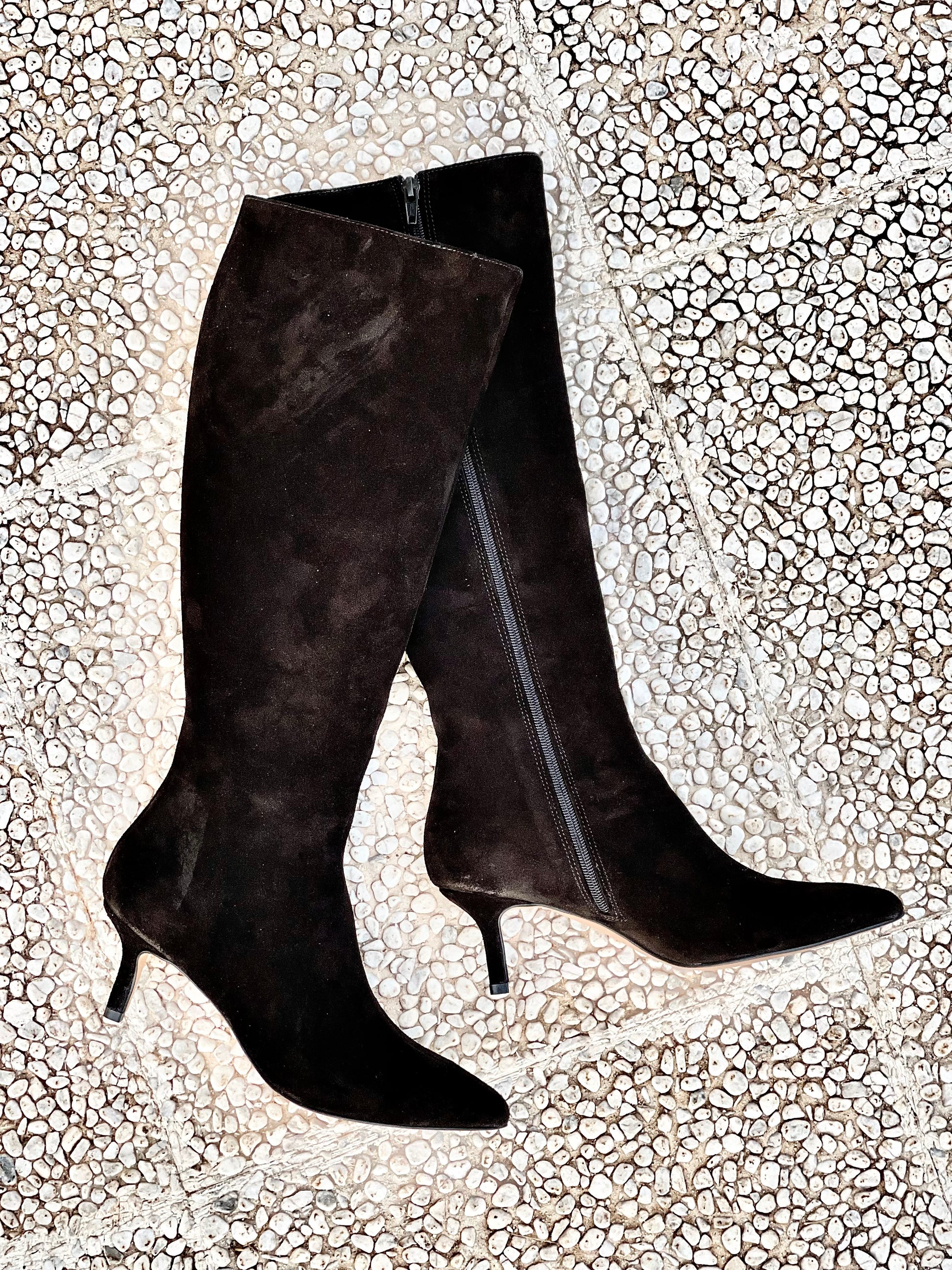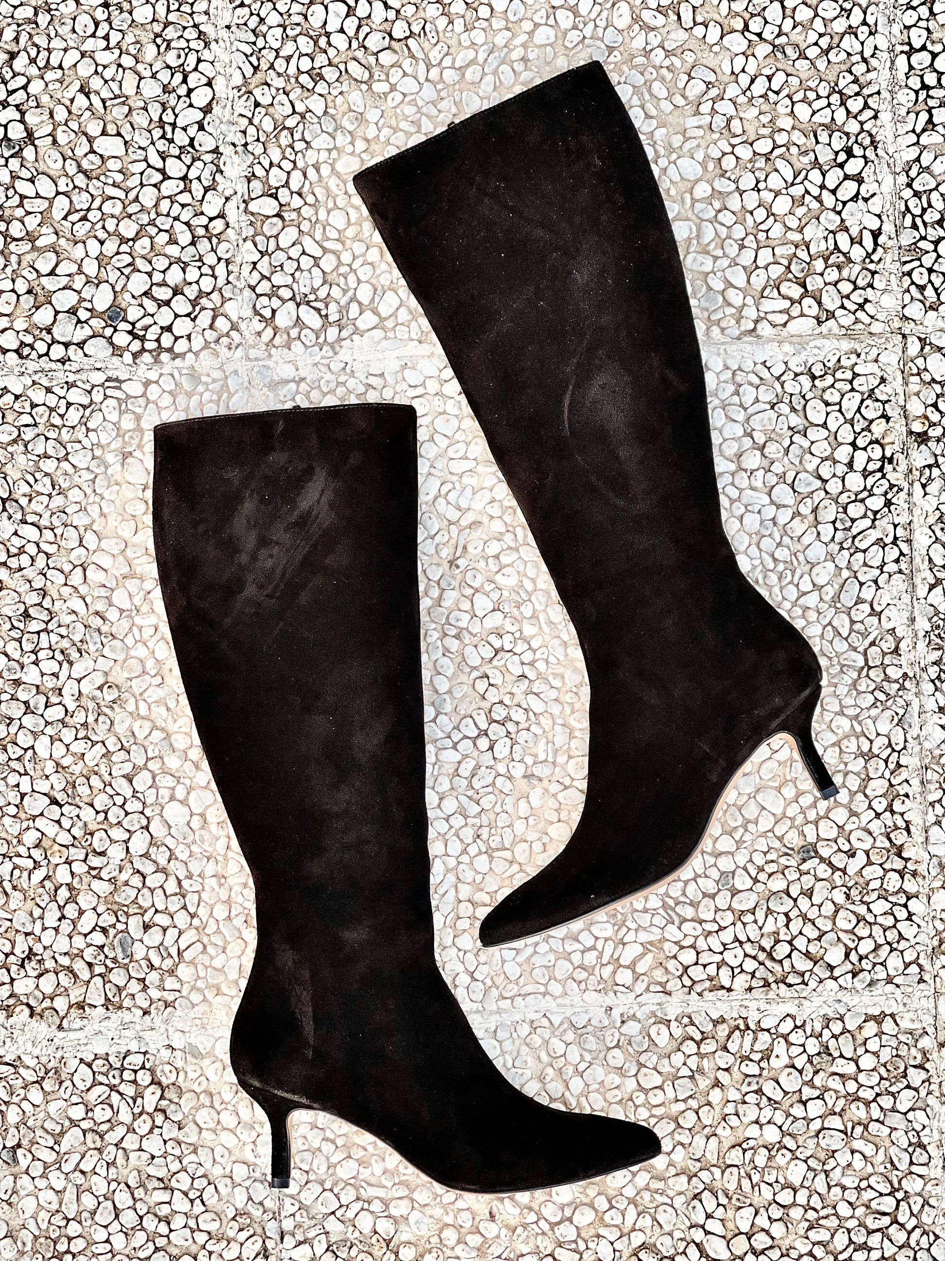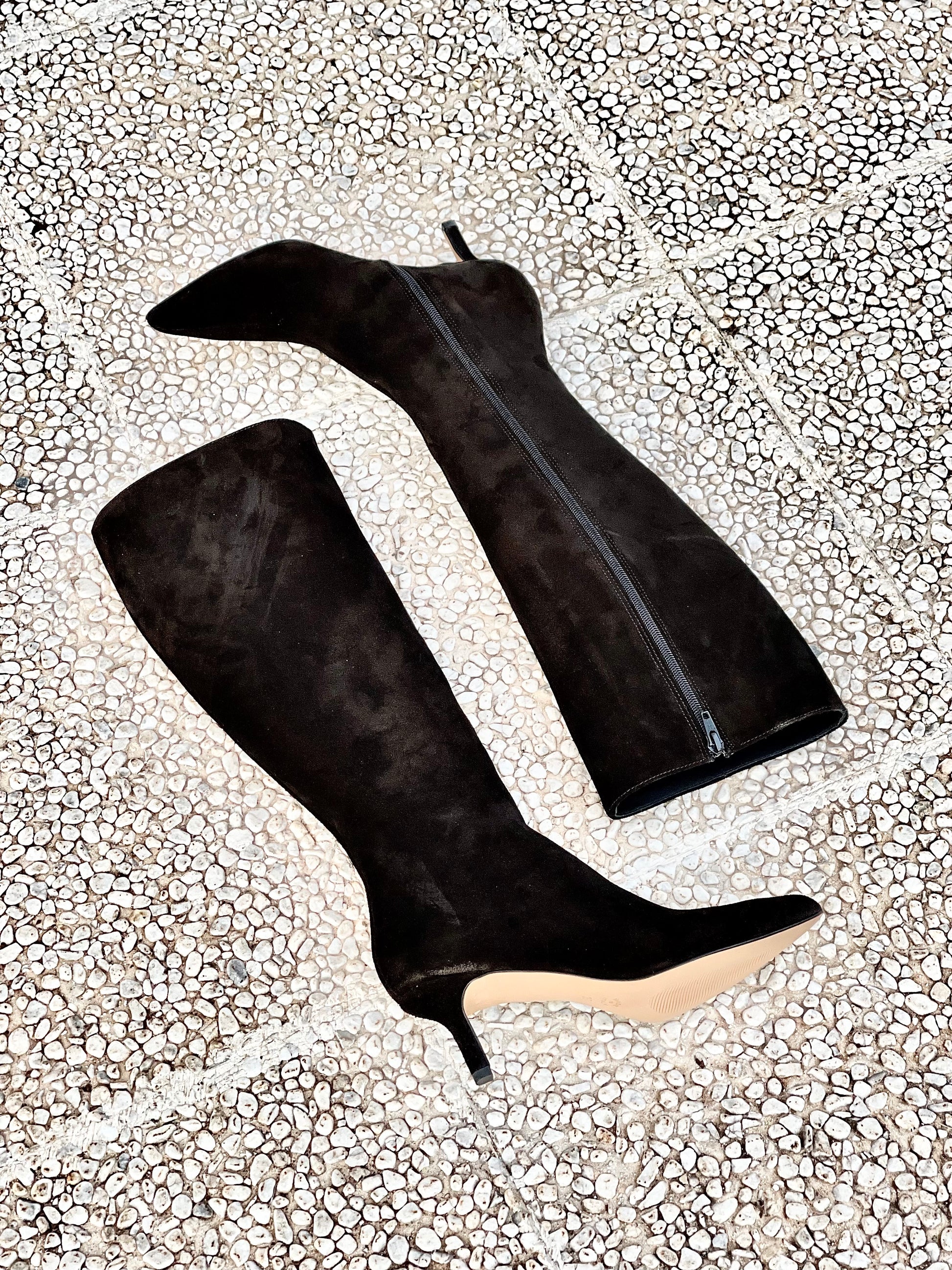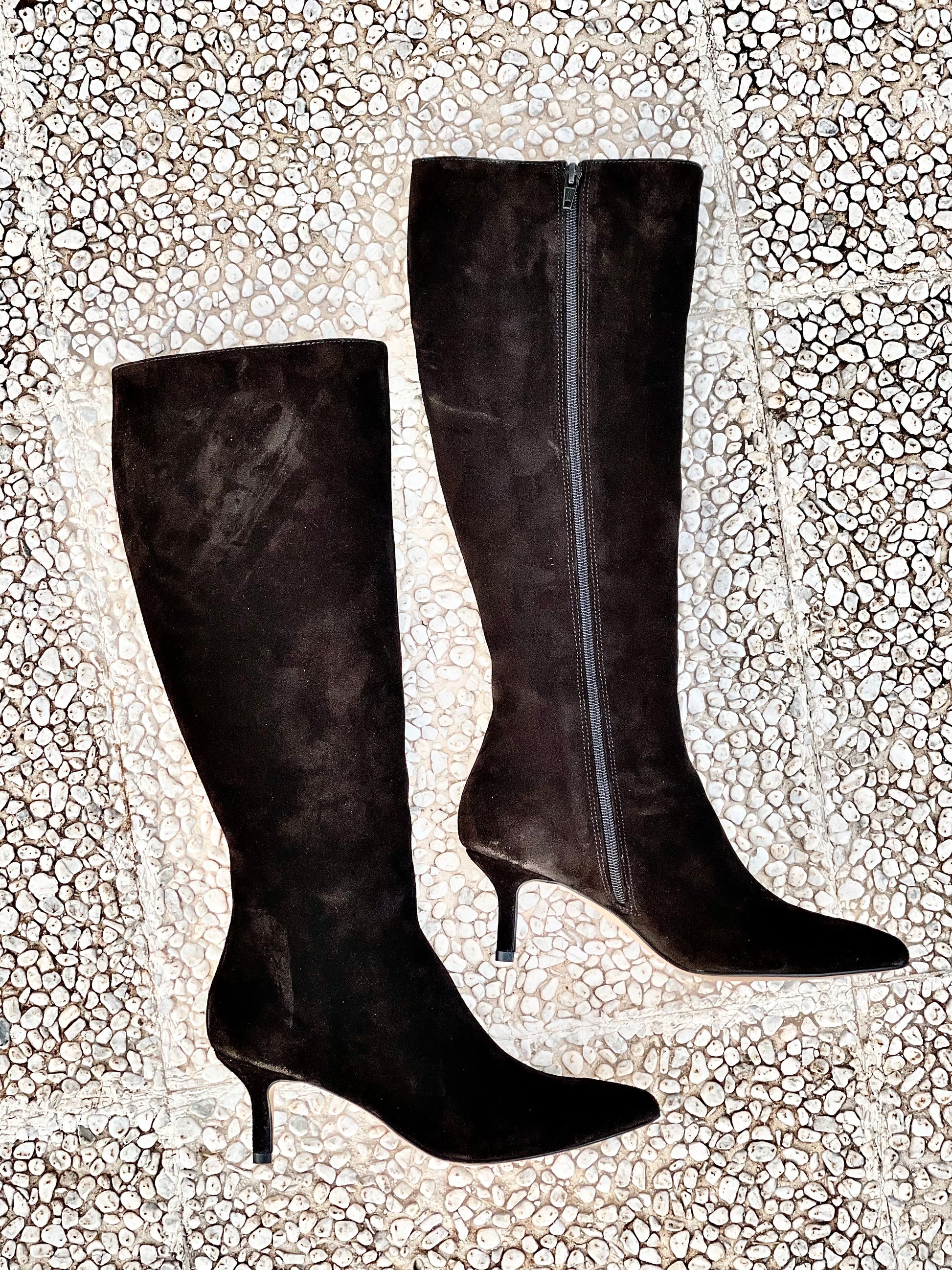 Μπότες με μυτερή μύτη από καμηλό δέρμα, τακούνι 60 mm.