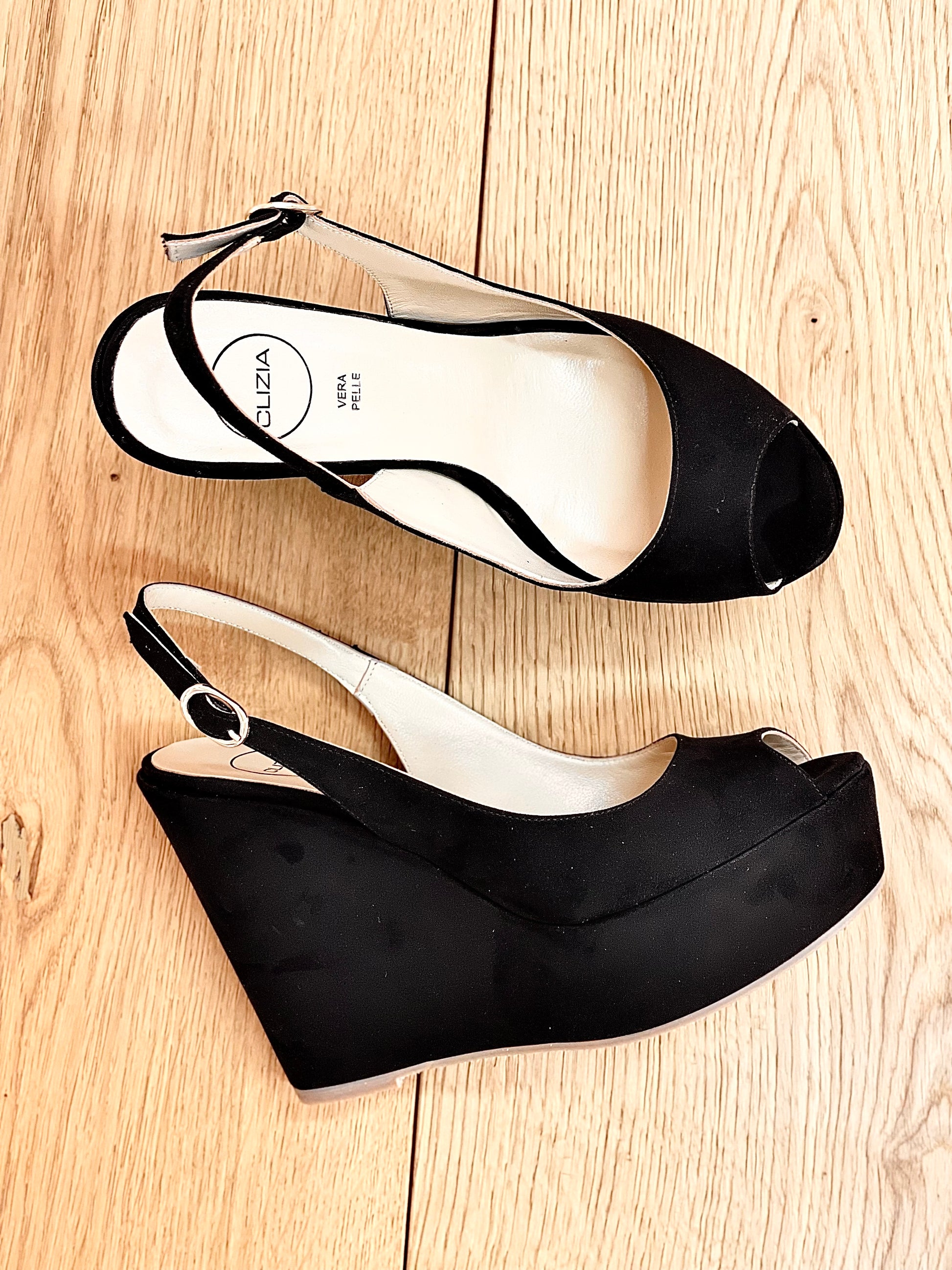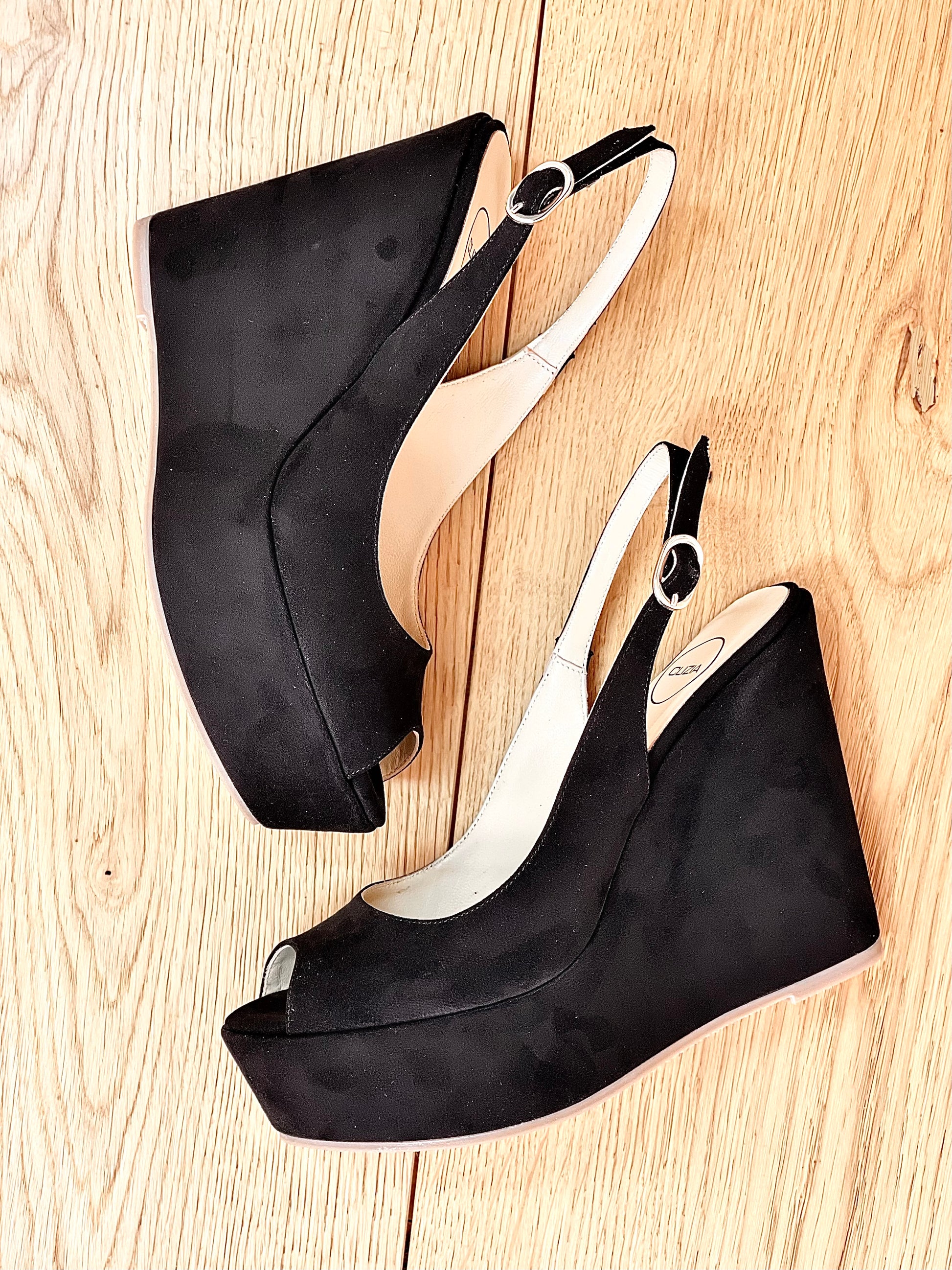 Ανοιχτά γόβα σλιπ-ον από σουέτ με ψηλό τακούνι.