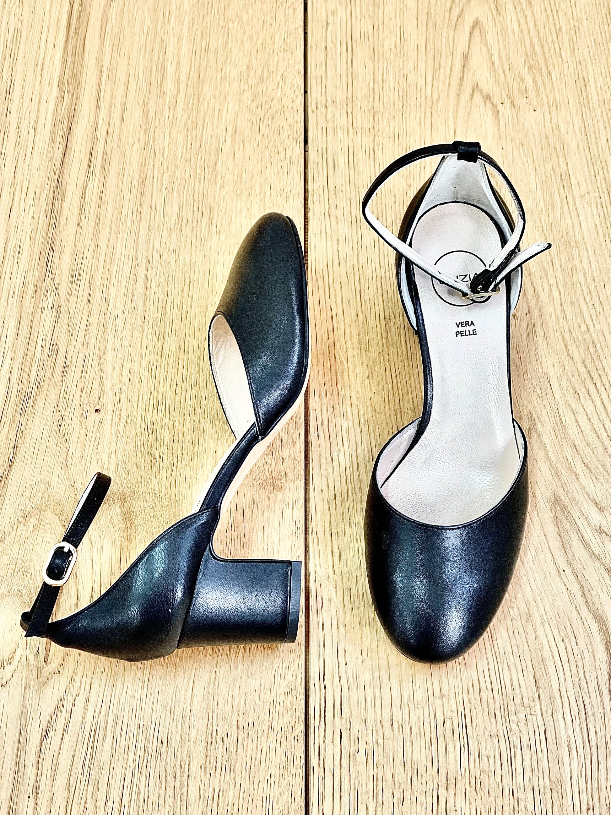 Γόβες με στρογγυλεμένη μύτη και τακούνι από δέρμα με φαρδύ τακούνι.