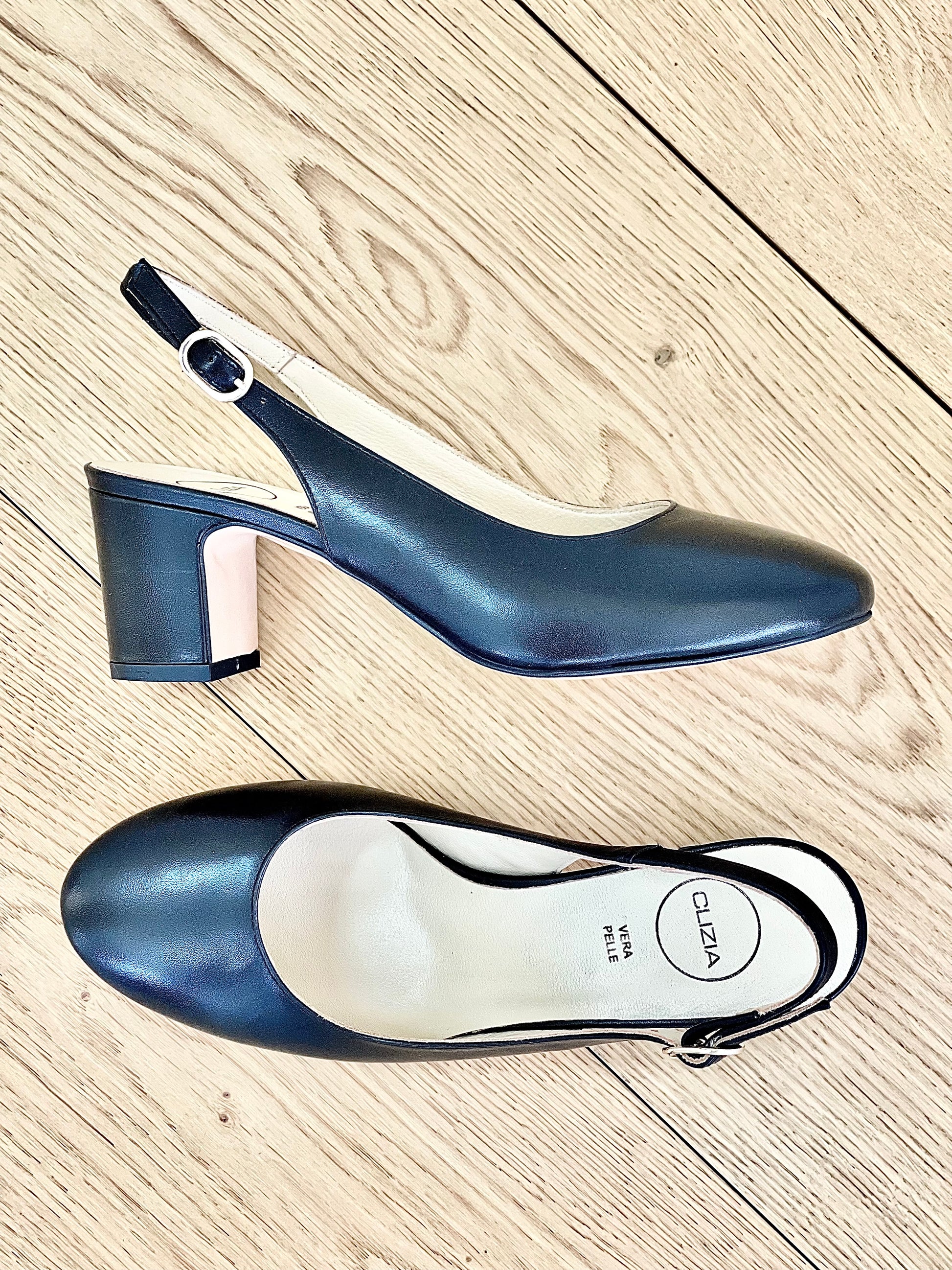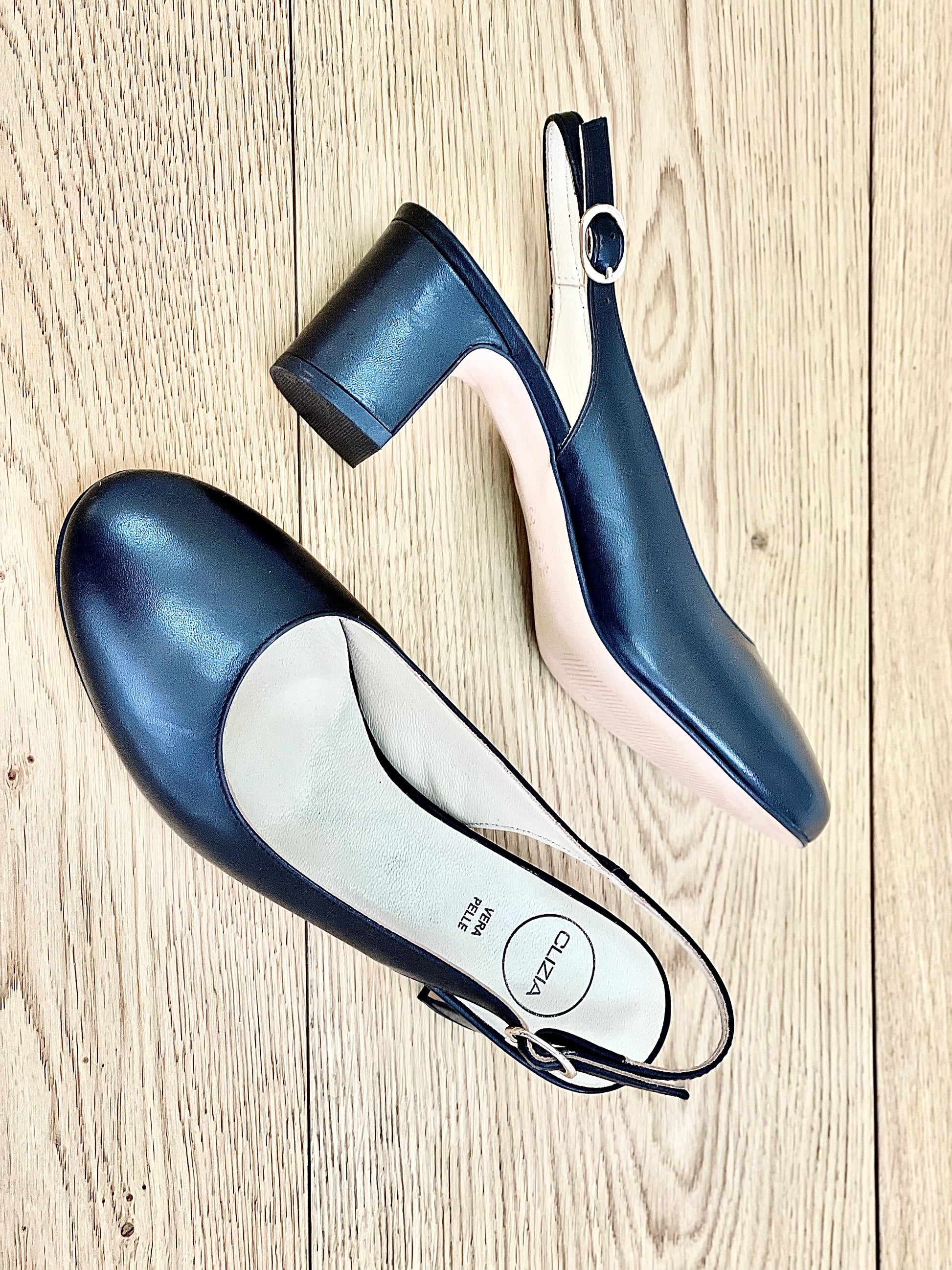 Σλιπ-ον παπούτσια με στρογγυλή μύτη από δέρμα και φαρδύ τακούνι.