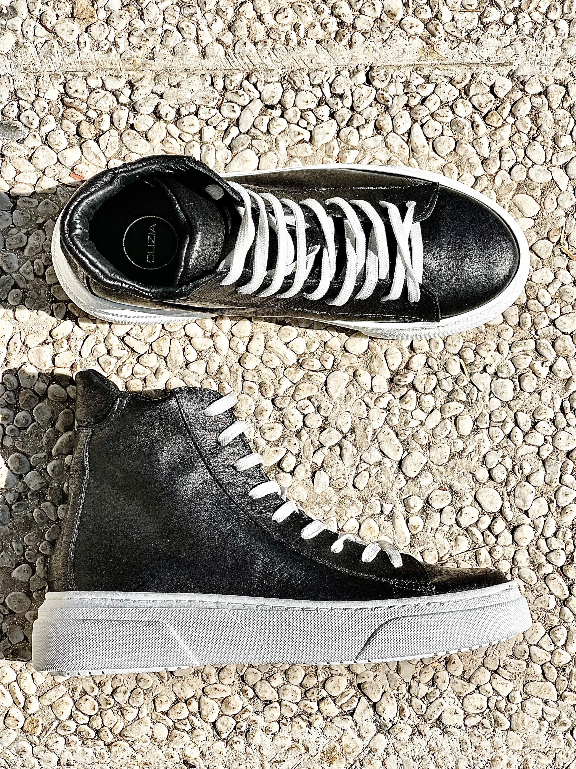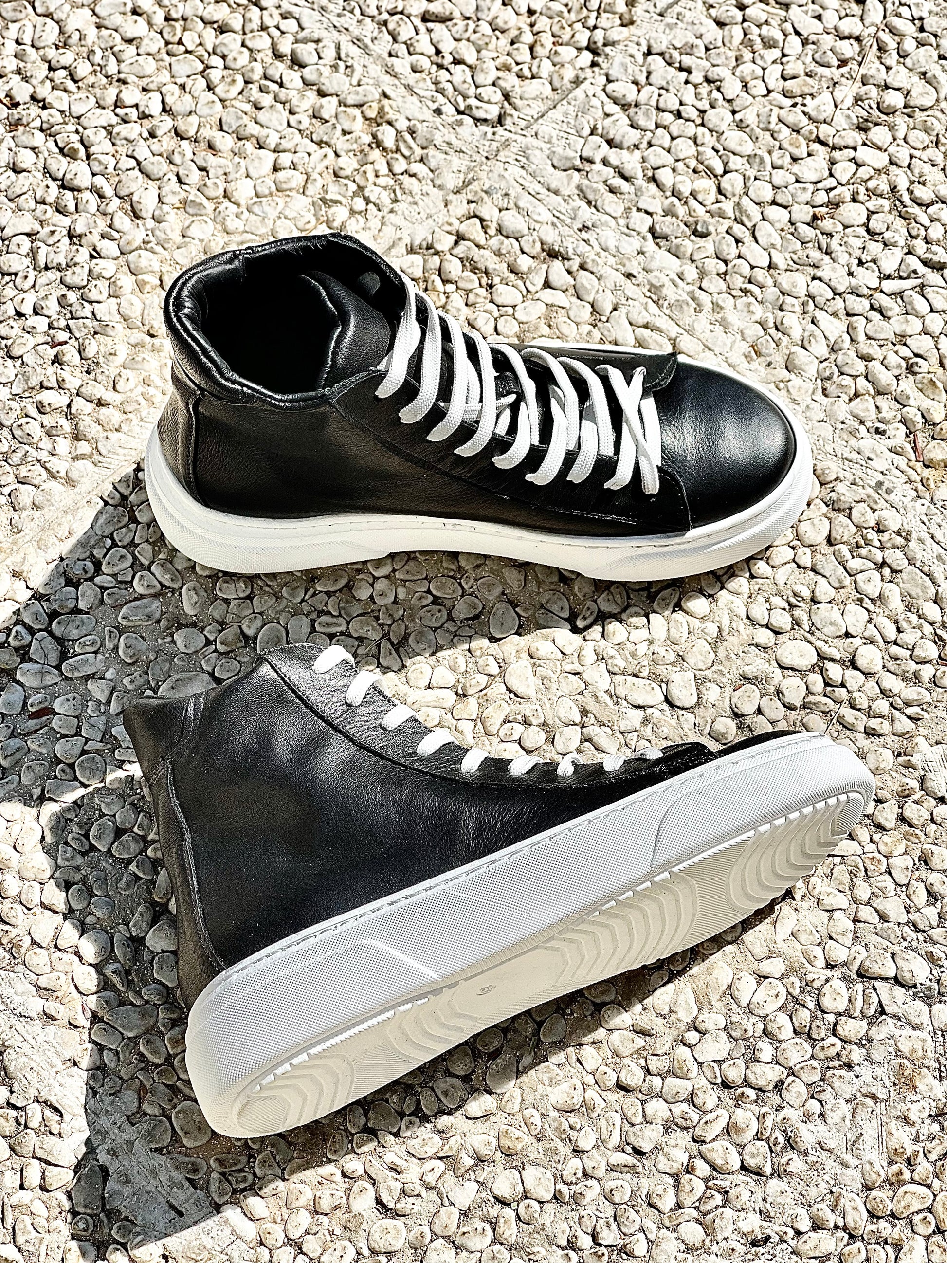 Μποτάκια τύπου sneakers με κορδόνια από δέρμα.