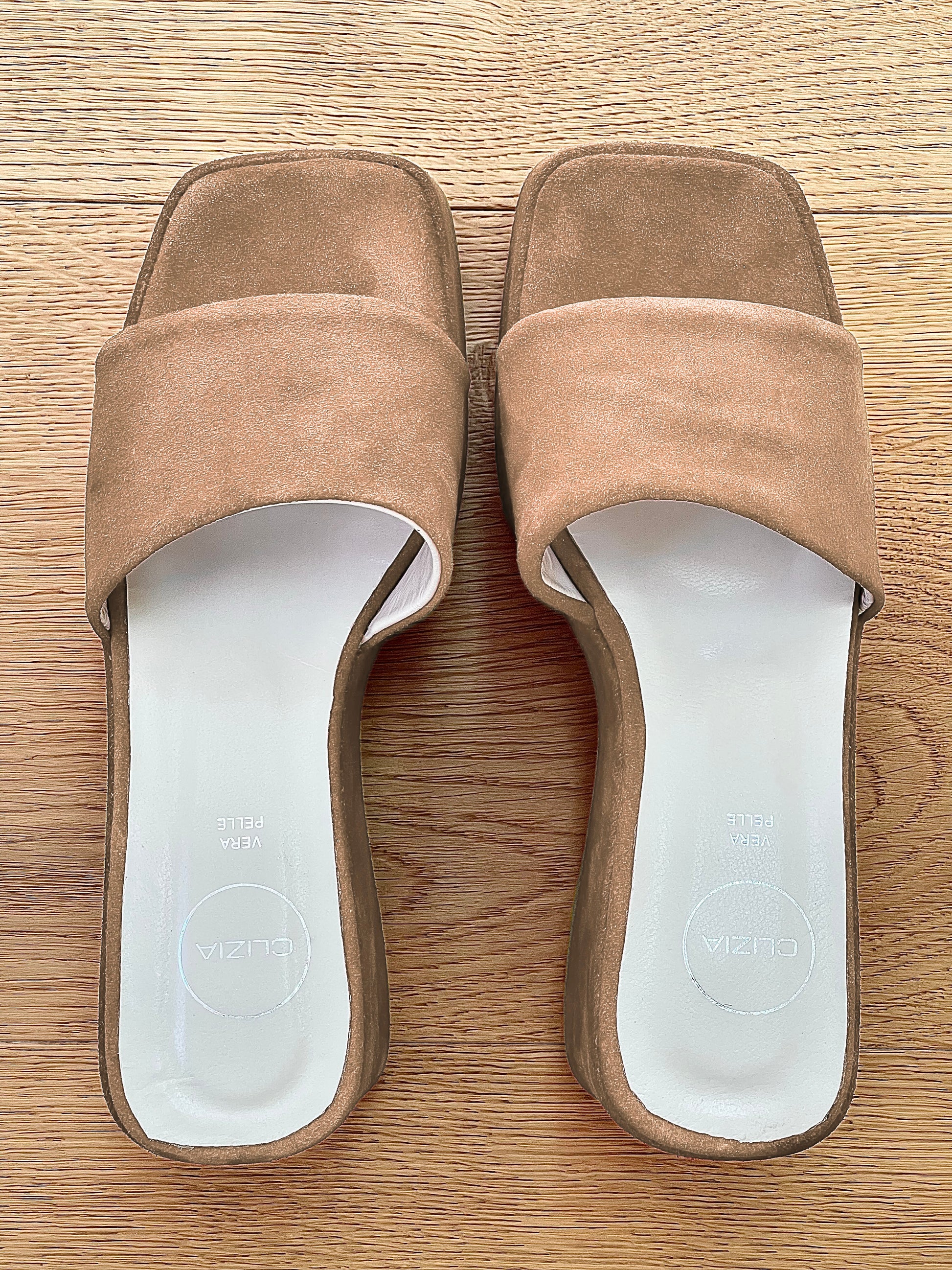 Σανδάλια μούλες με μεσαίο τακούνι.