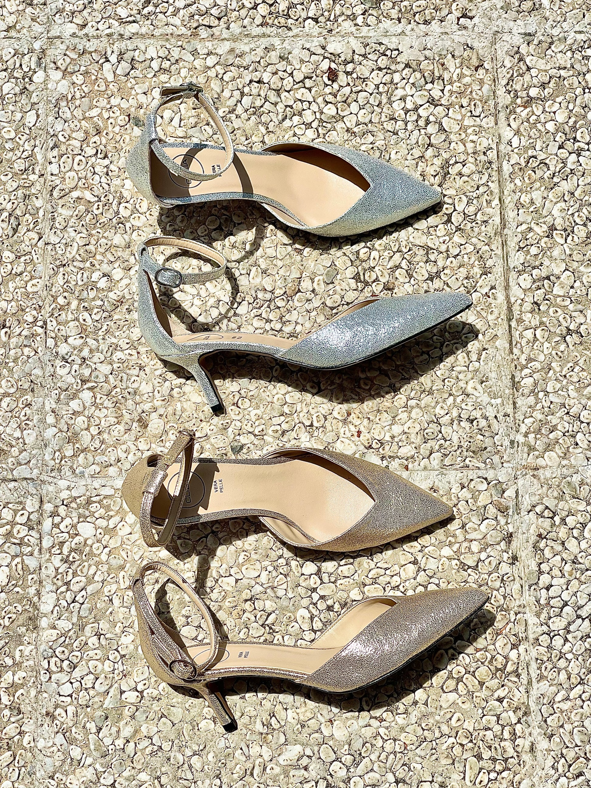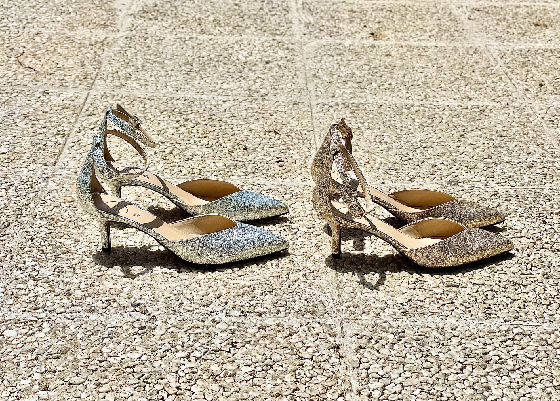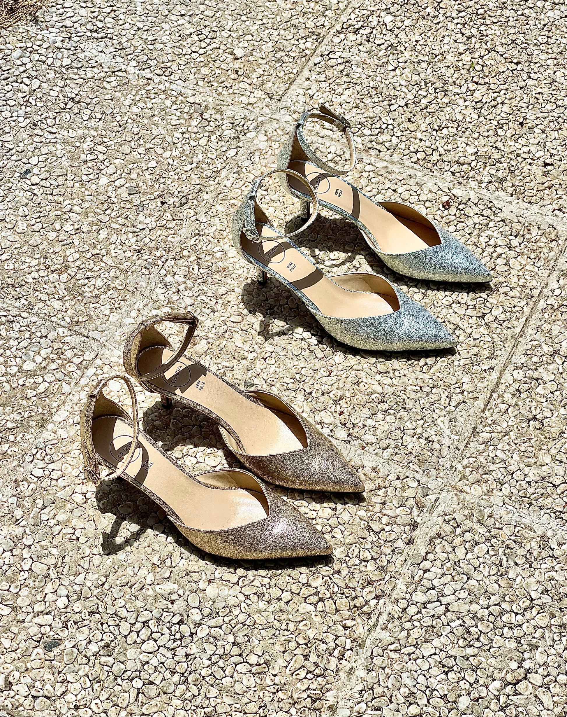 Γόβες με μυτερή μύτη και χαμηλό τακούνι, V λαιμόκοψη, λουράκι στον αστράγαλο και τακούνι ύψους 6 εκ.