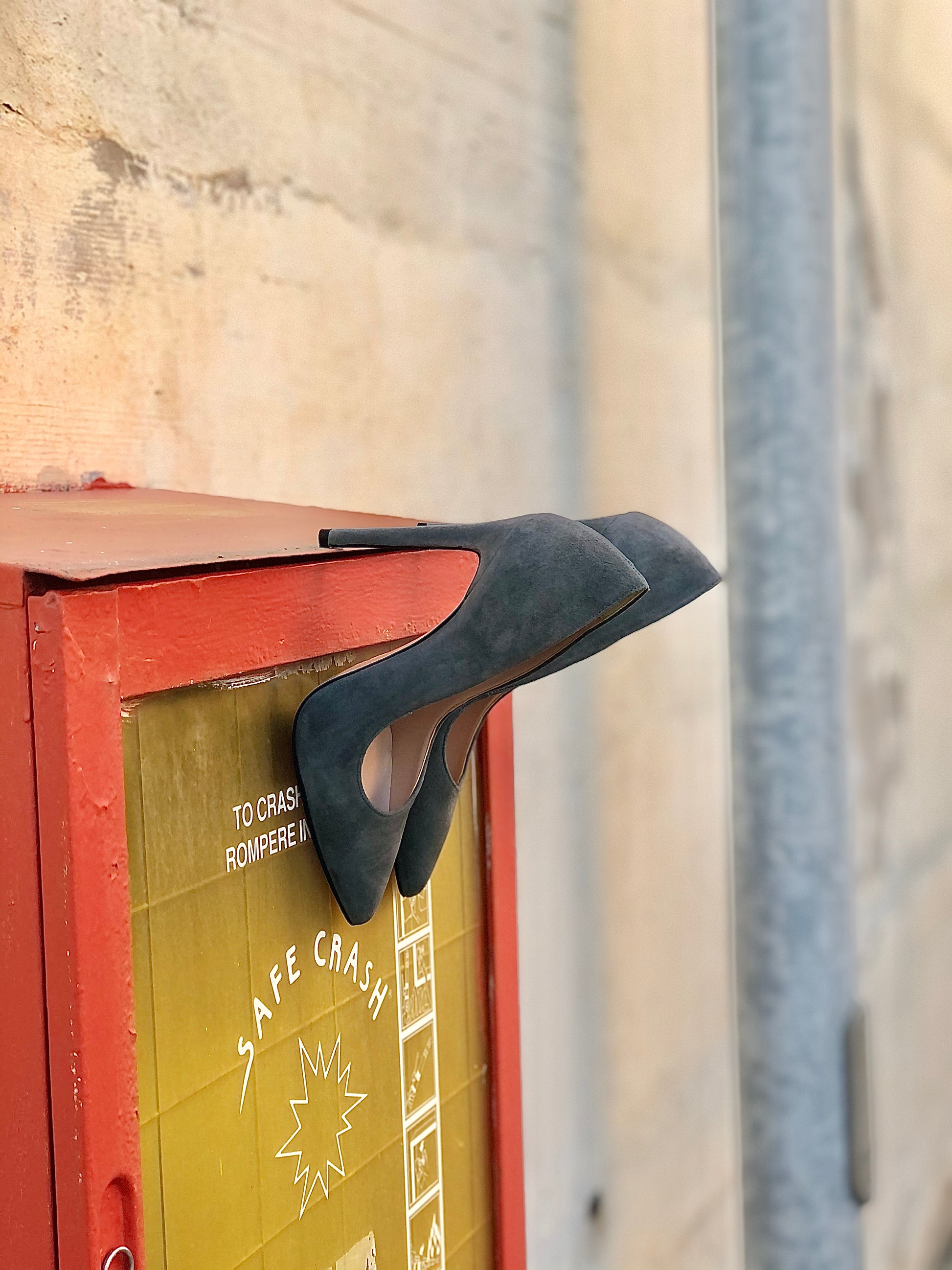 Σανδάλια με μυτερή μύτη από σουέτ και ψηλό τακούνι.