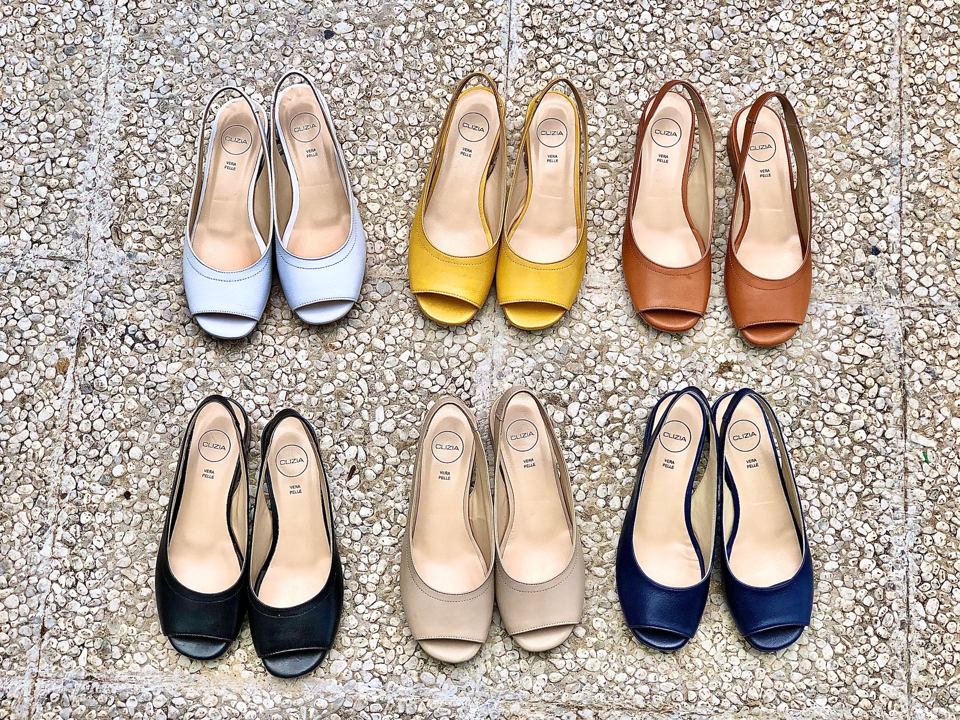 Χαμηλά γόβα slingback από δέρμα με φαρδύ τακούνι 2 cm.