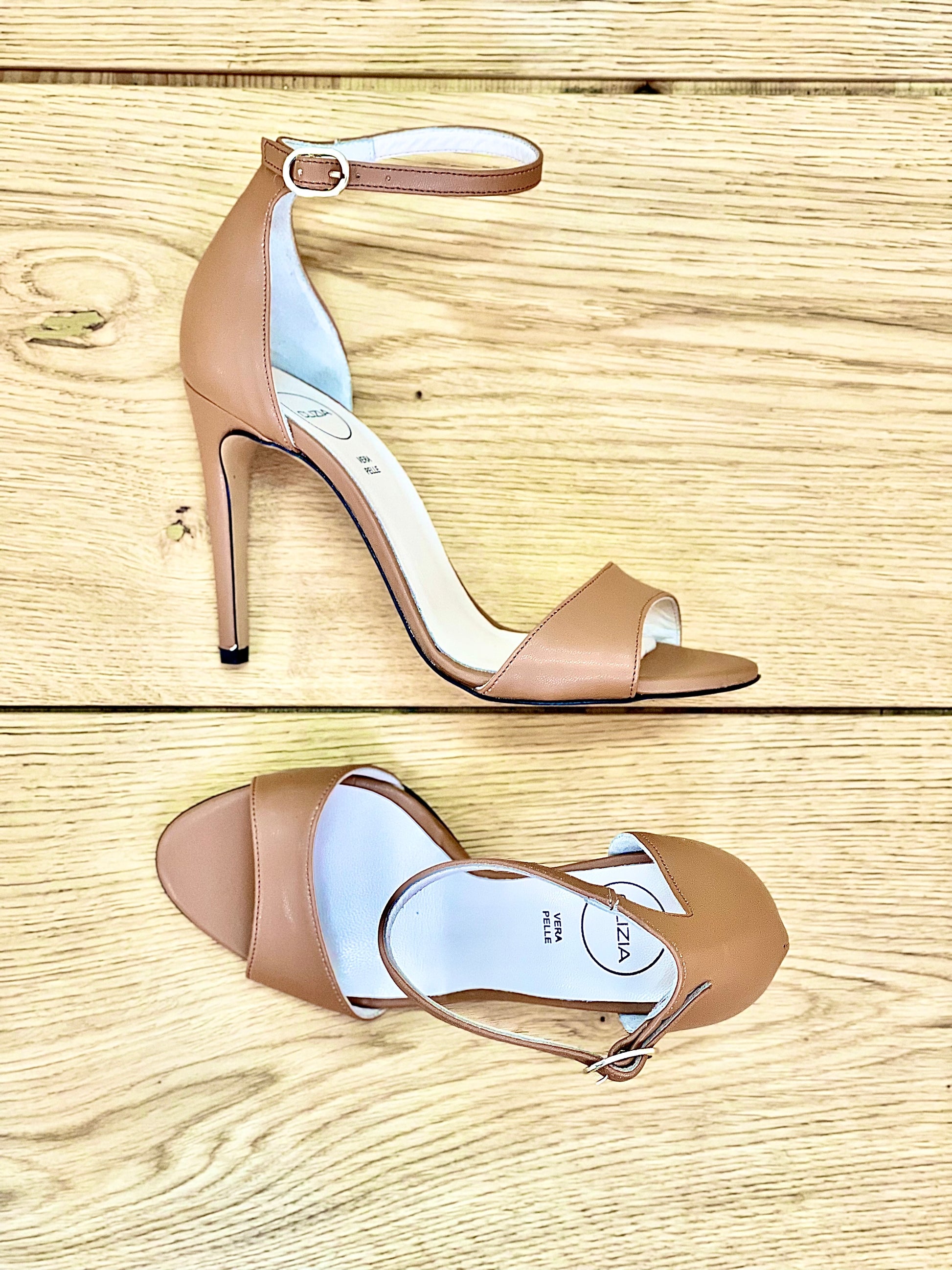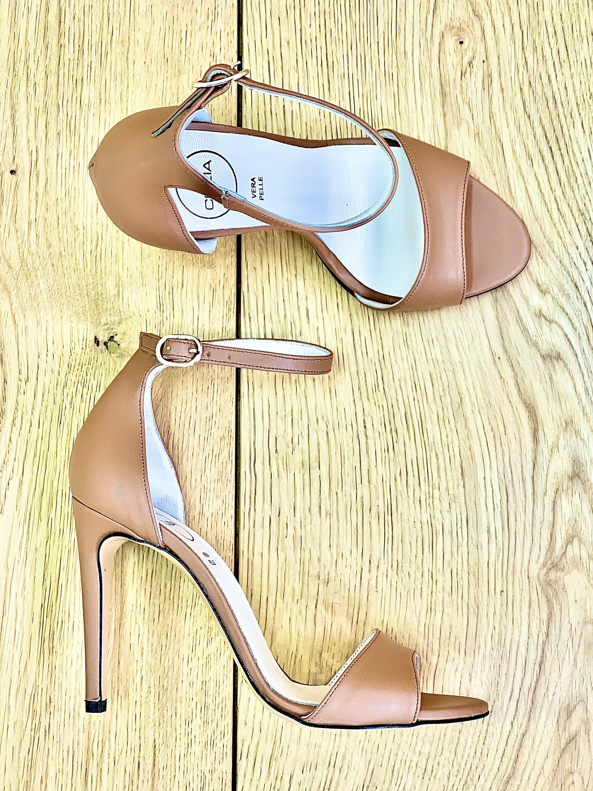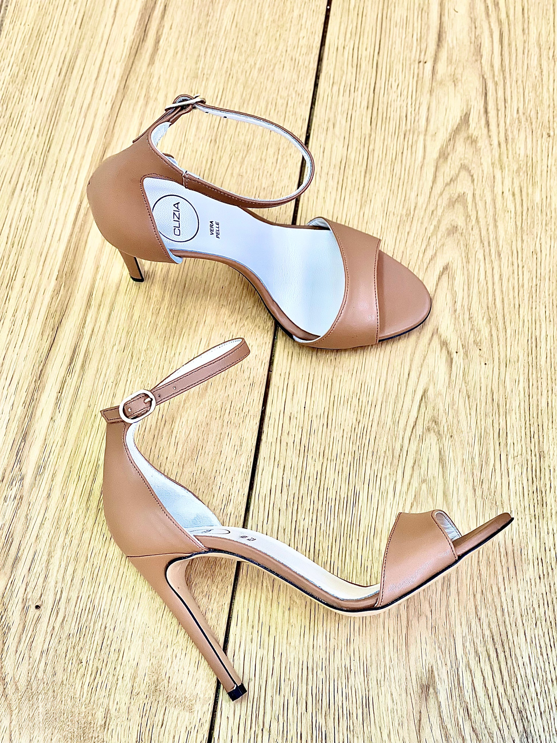 Ψηλά σανδάλια με λουράκι και τακούνι από δέρμα, τακούνι 10 εκ.
