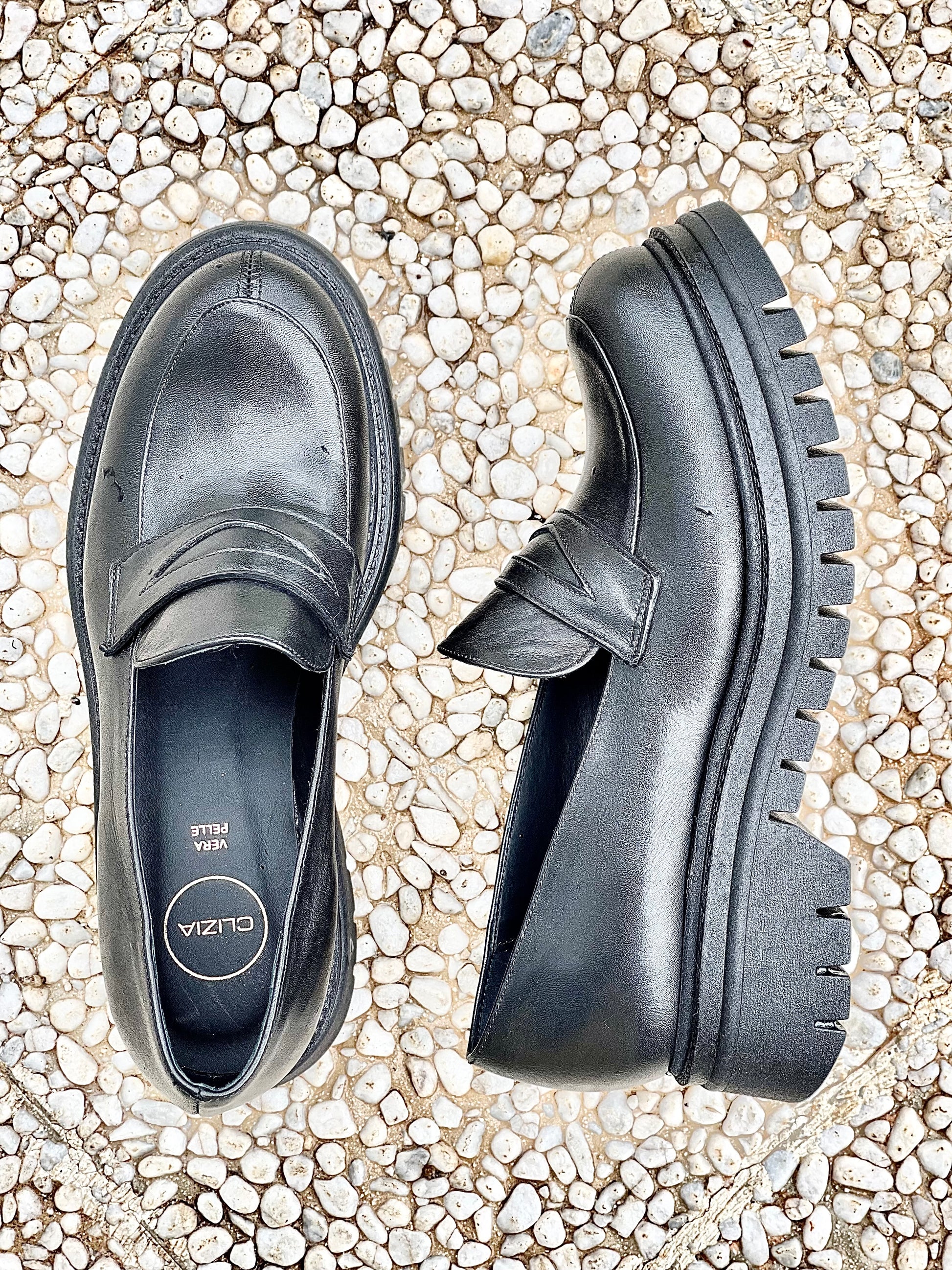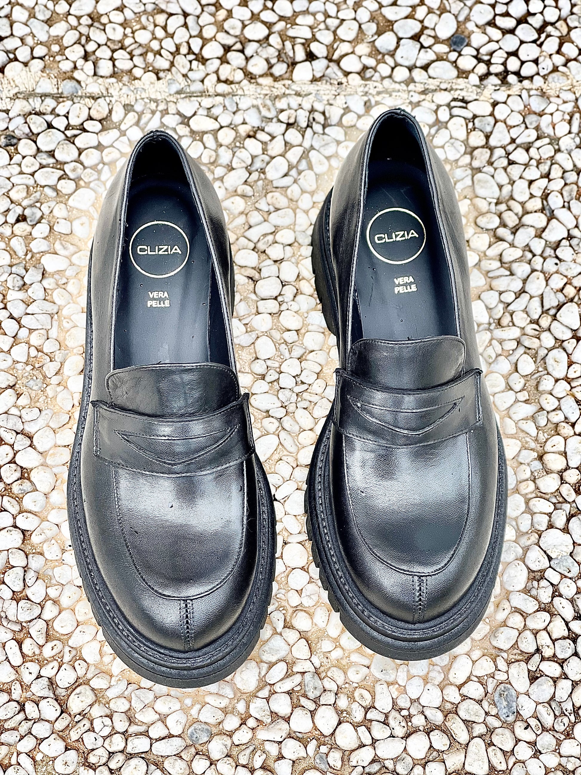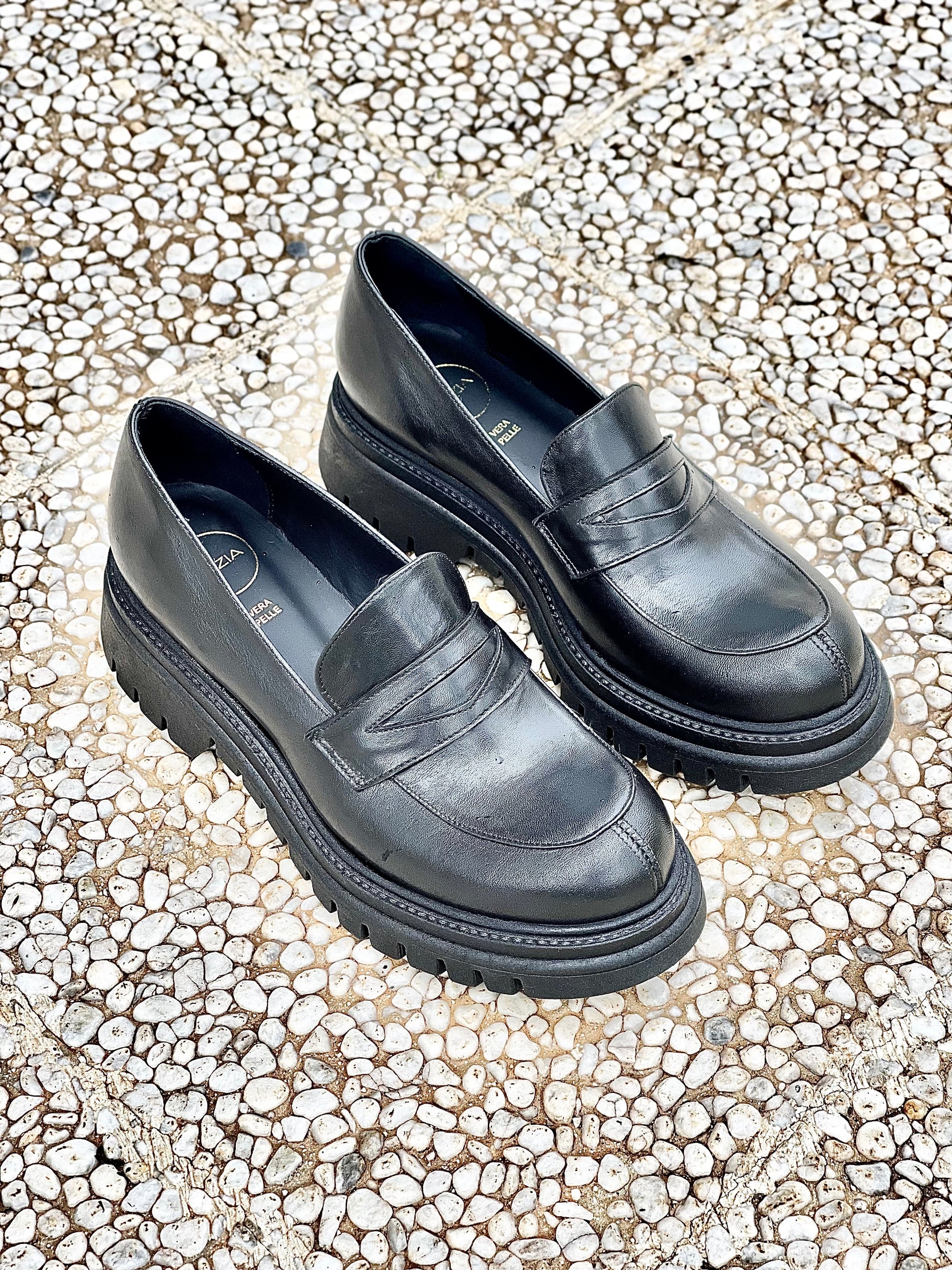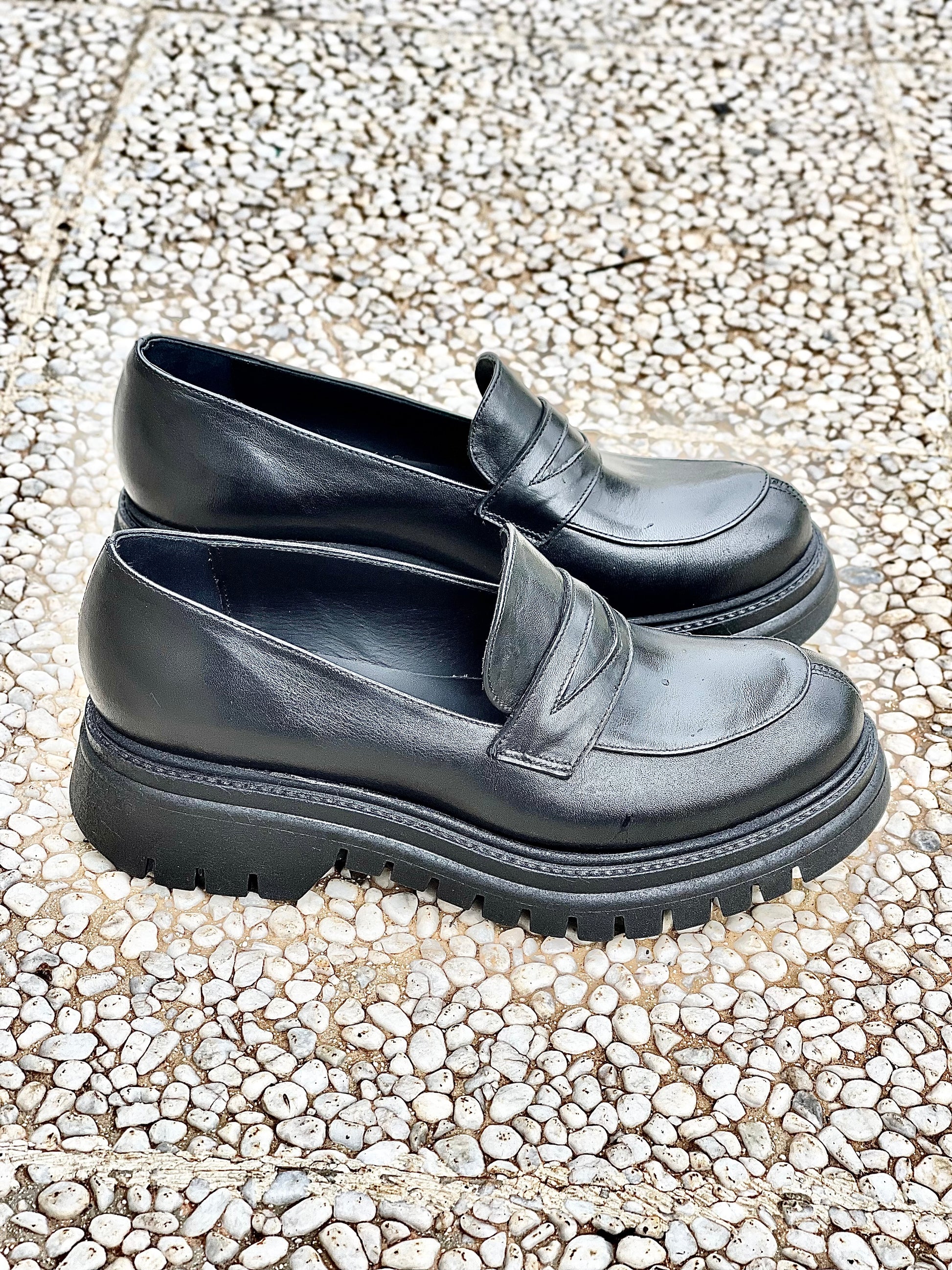 Μοκασίνια από μαύρο δέρμα με αντιολισθητική σόλα.