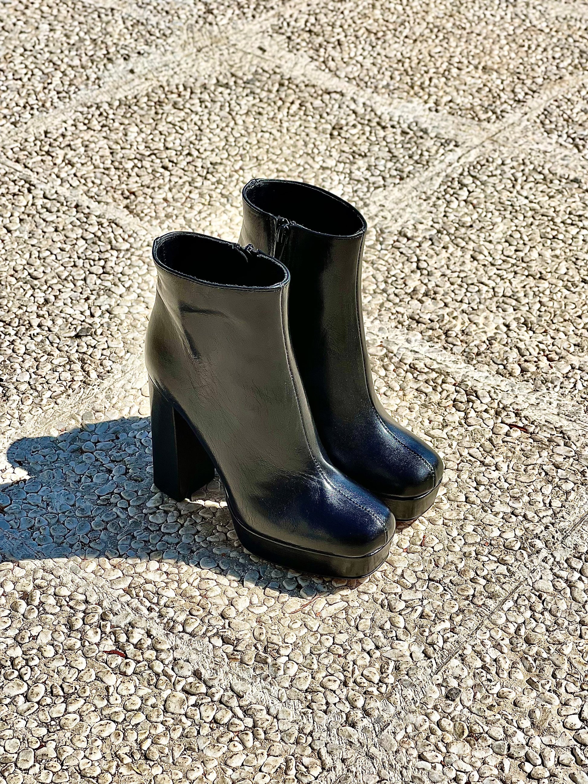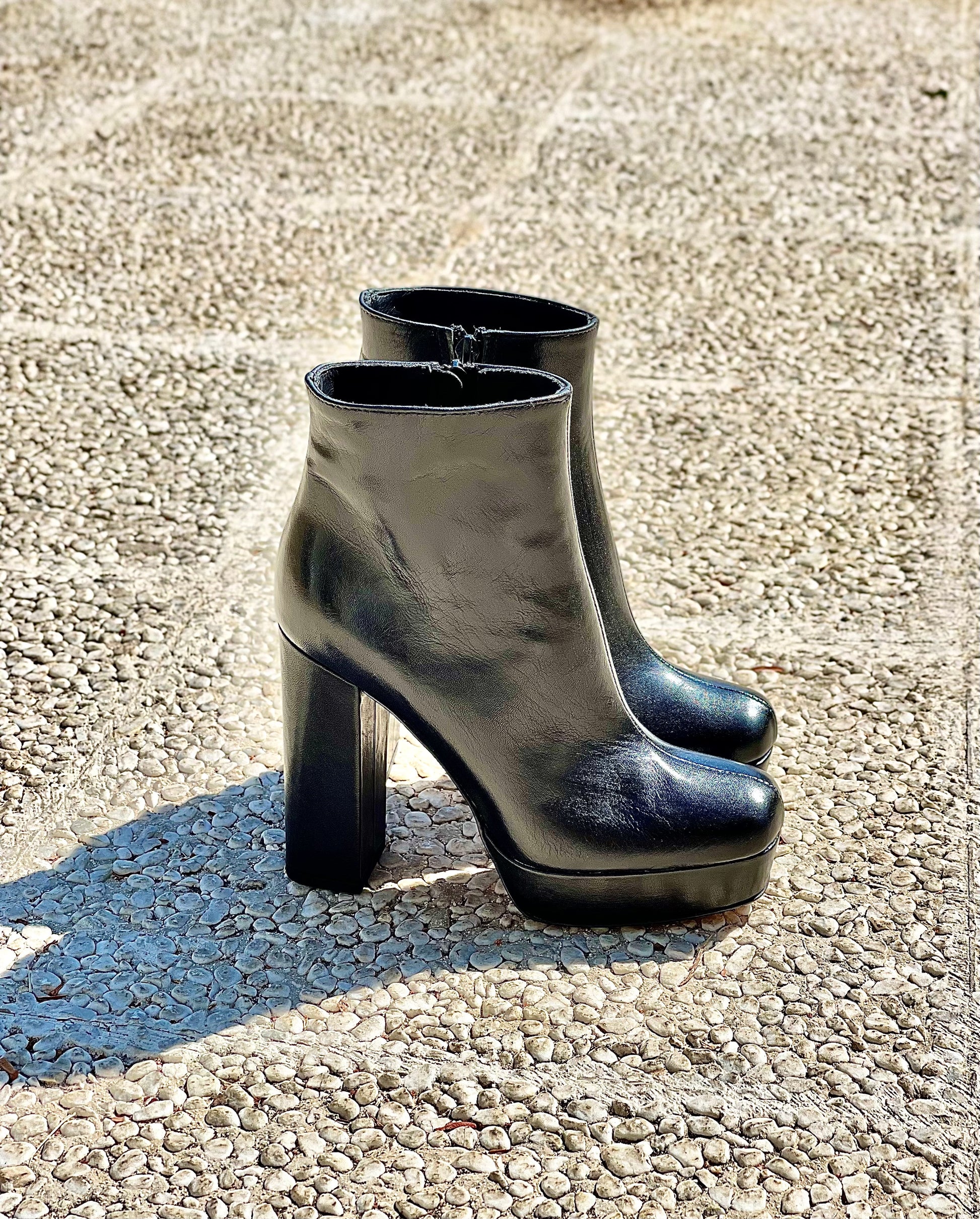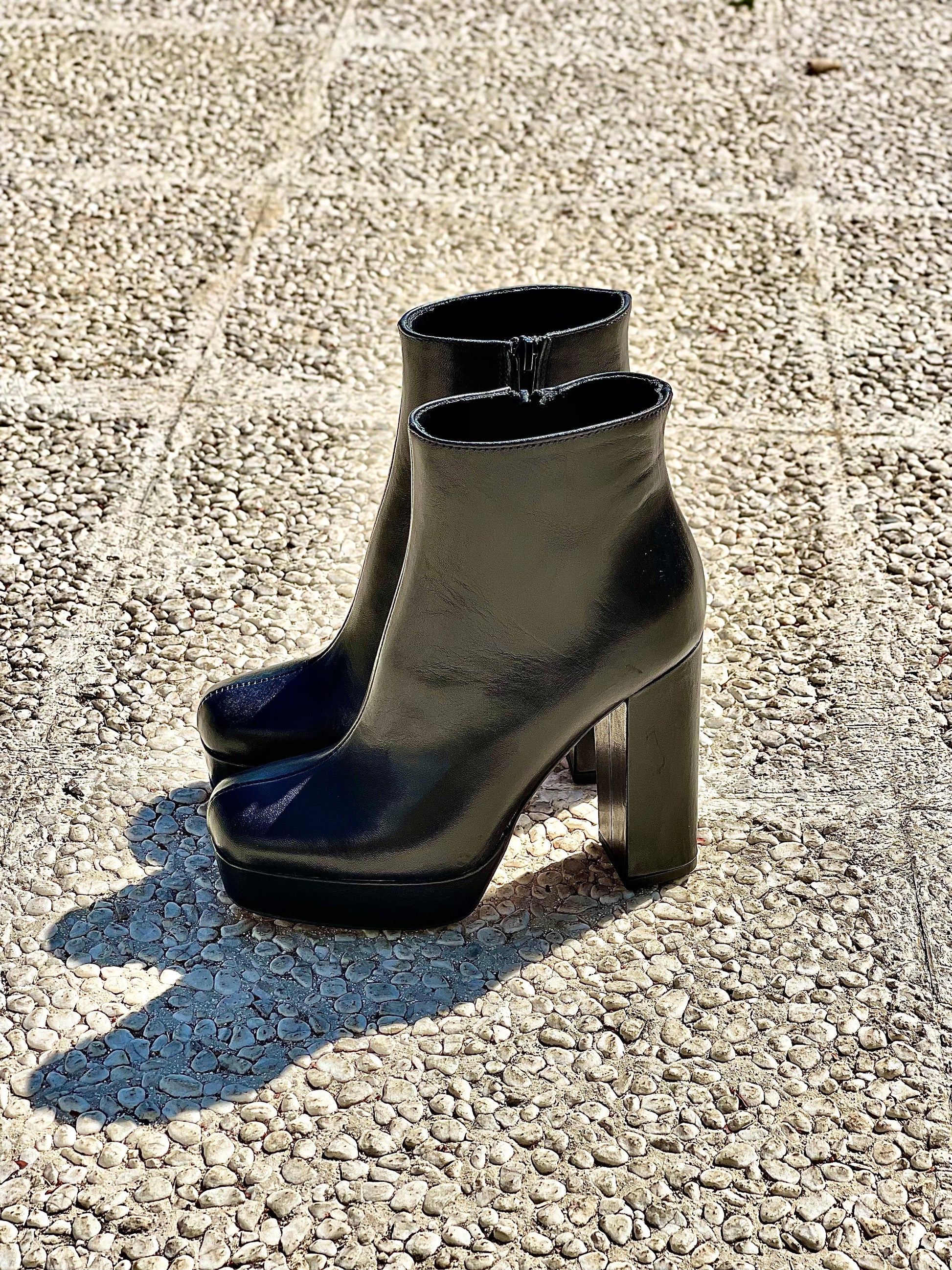 Μποτάκια με ημικυκλική μύτη, τακούνι 12 cm και πλατφόρμα 3 cm.