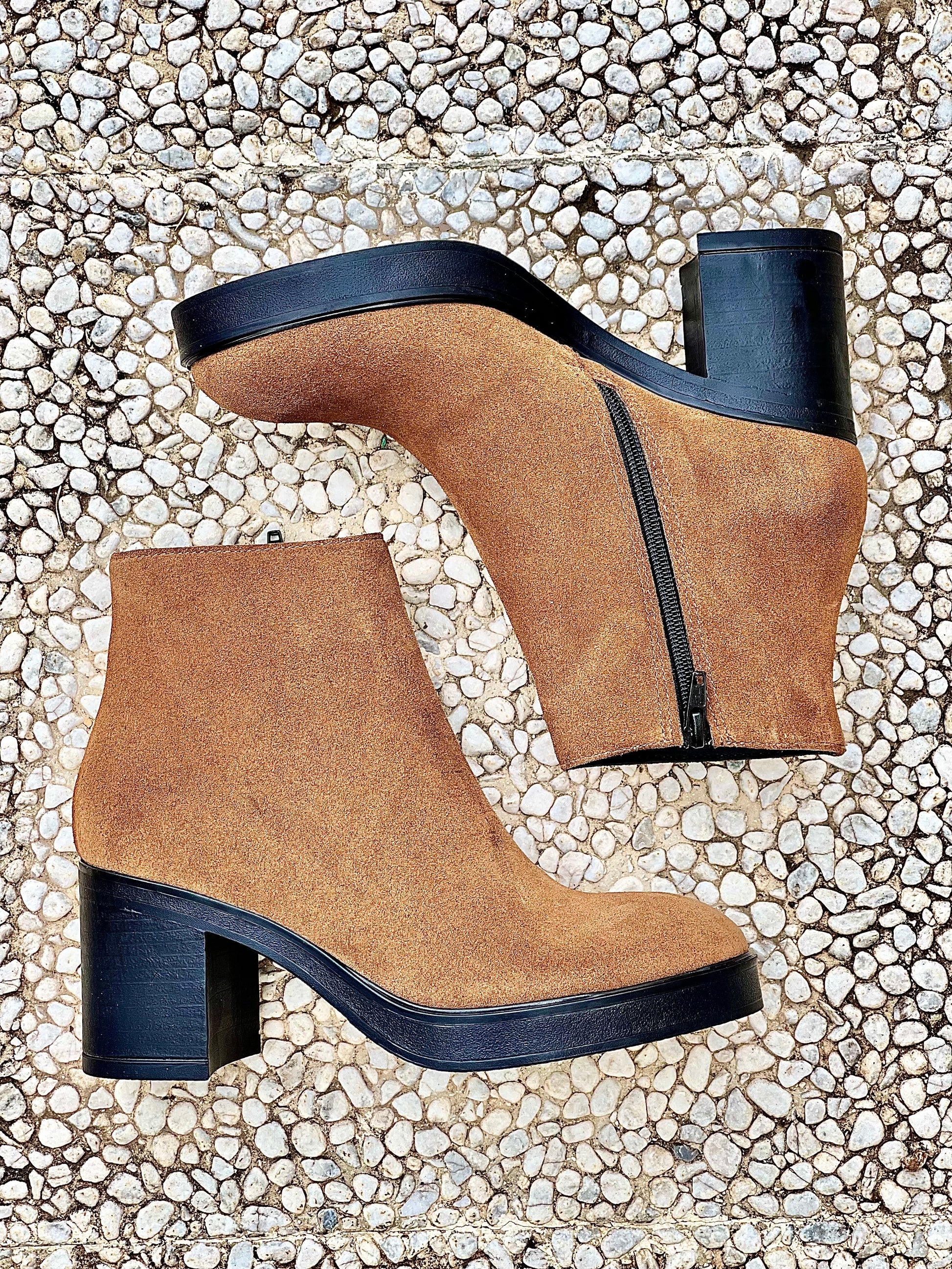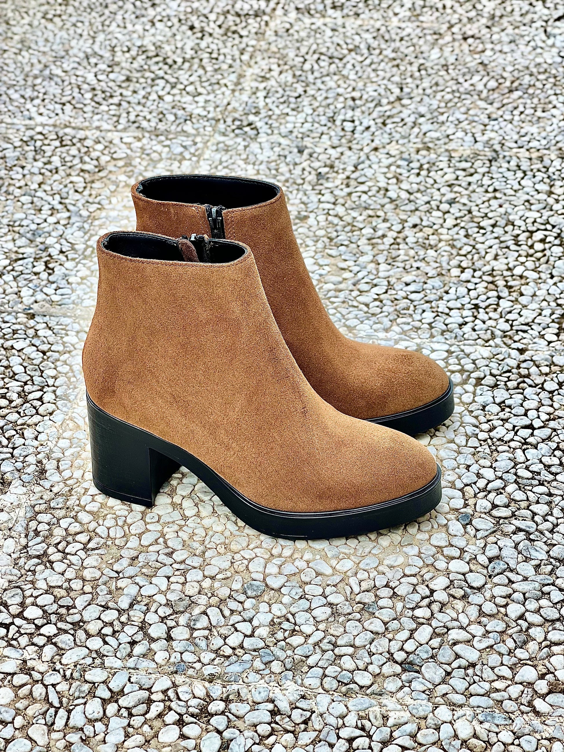 Μποτάκι από σουέτ δέρμα με τακούνι 7 εκ. και πλατφόρμα 2 εκ.