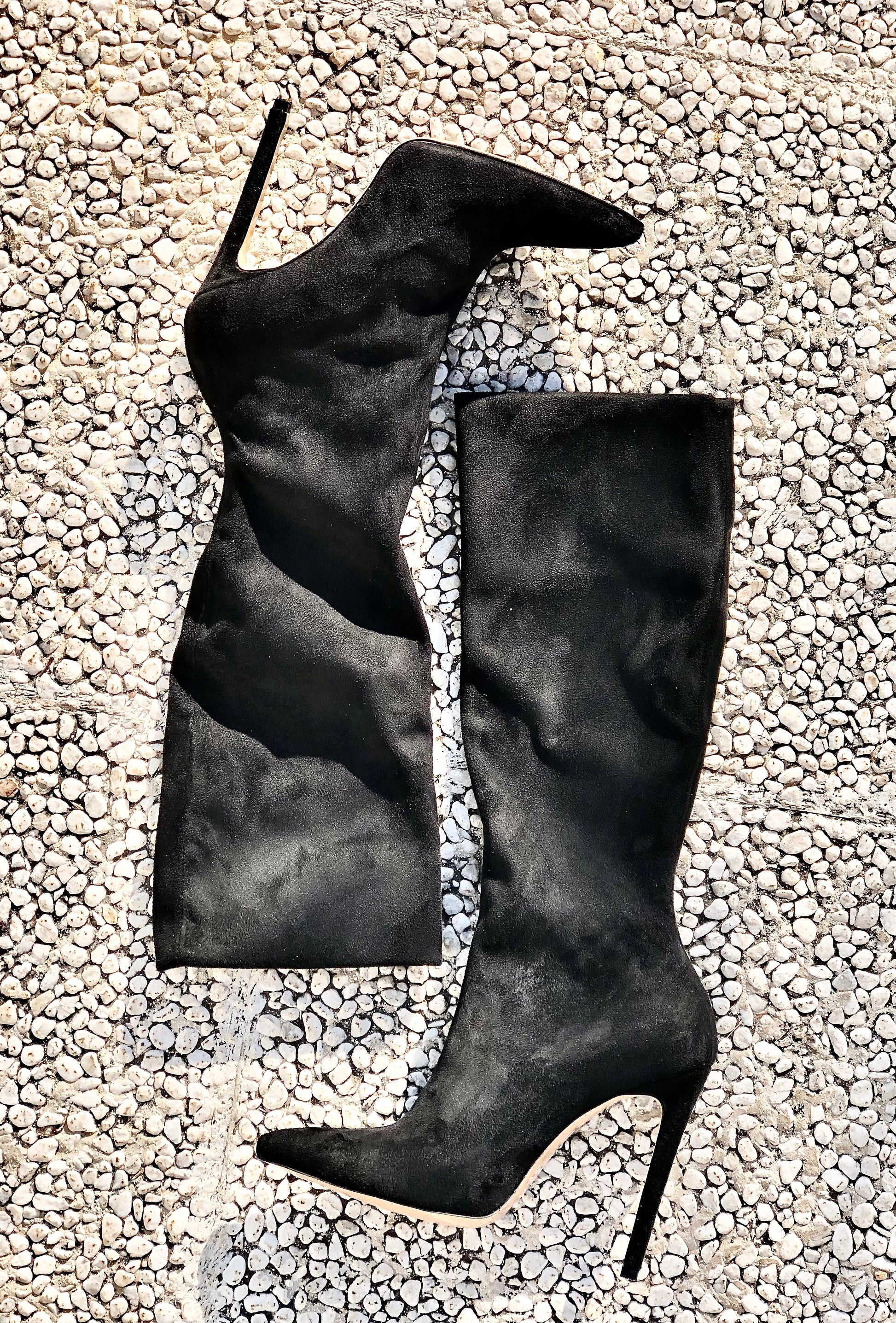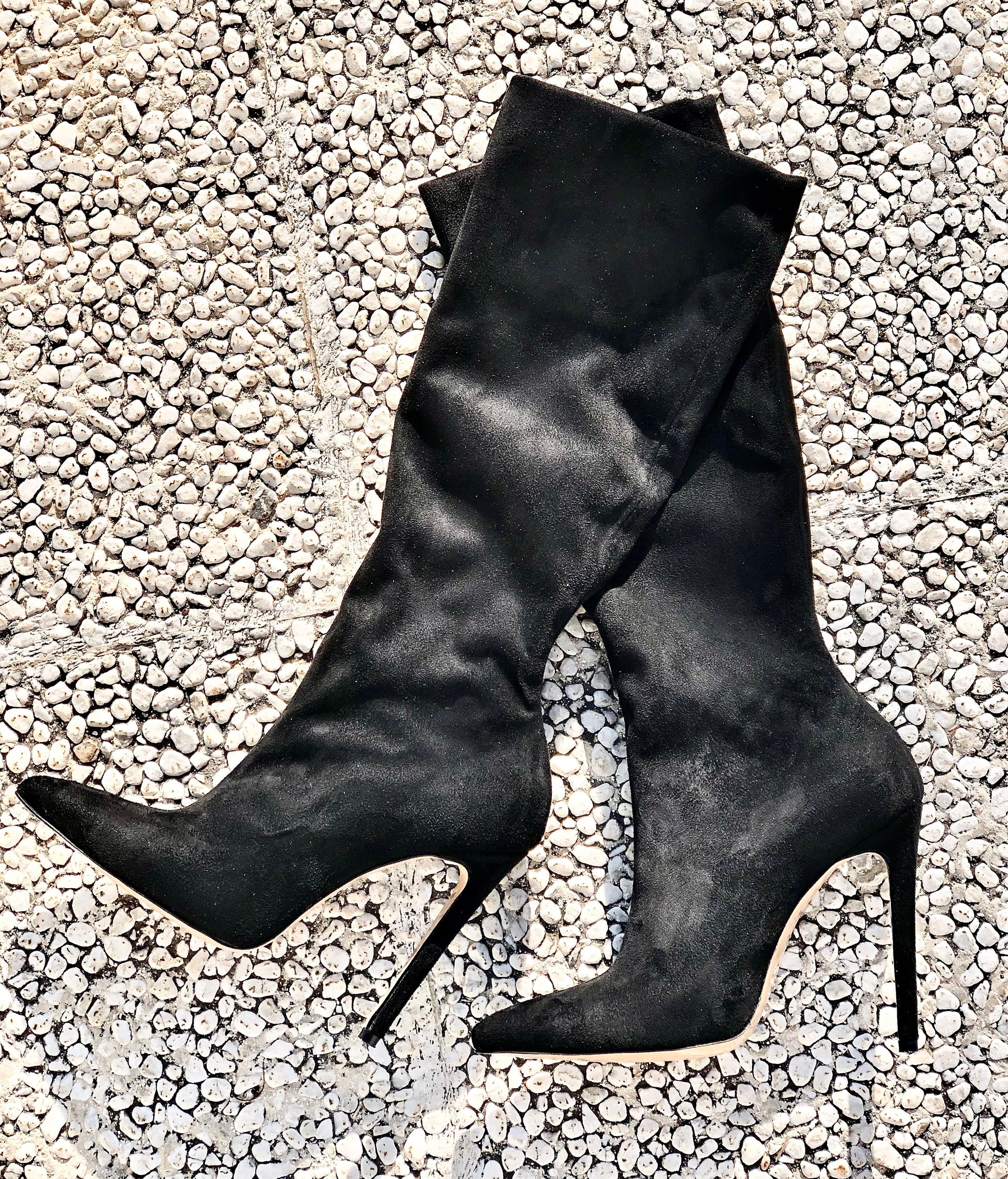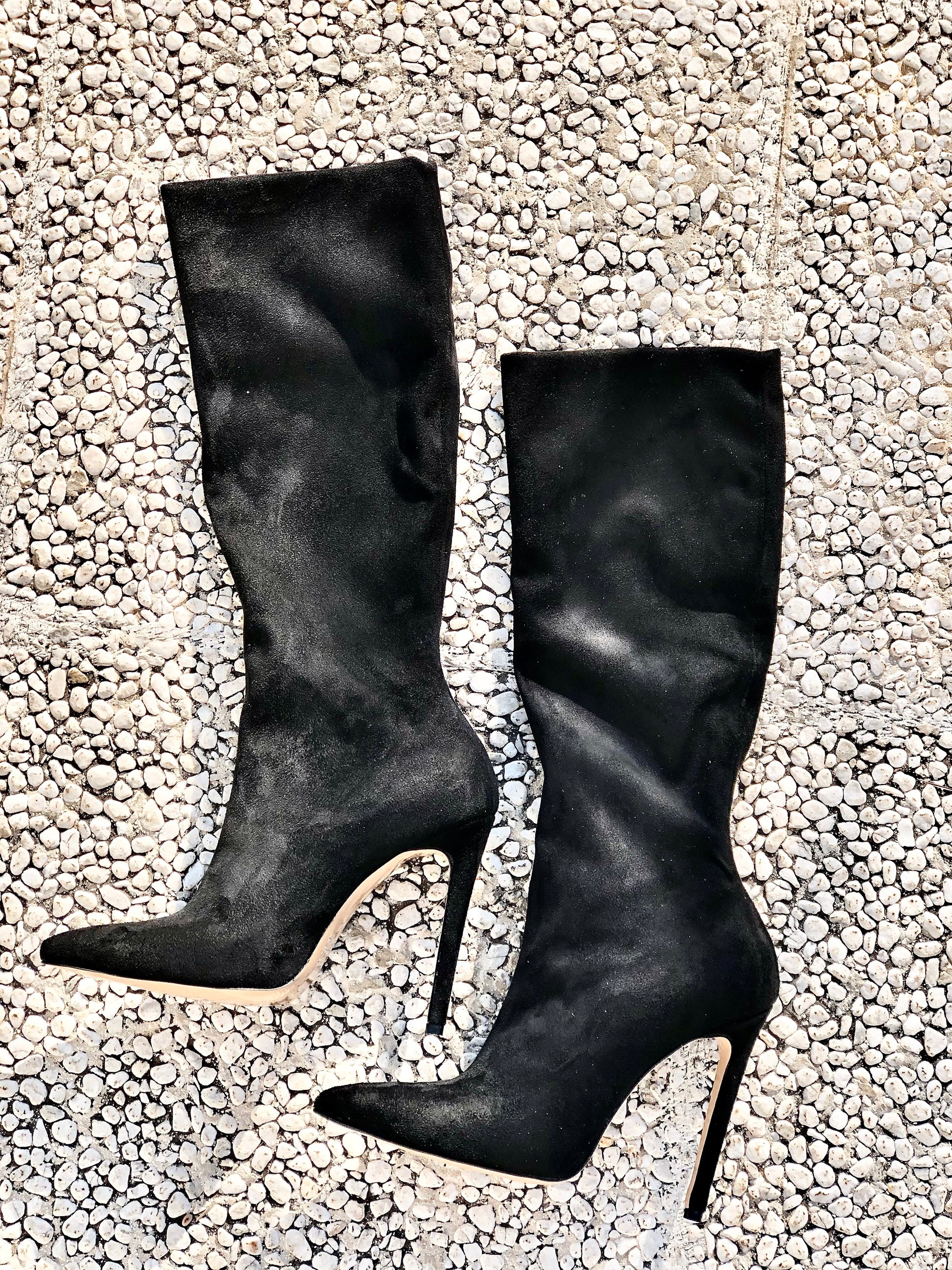Ελαστική μπότα με στρογγυλή μύτη από καμηλό δέρμα και ψηλό τακούνι.